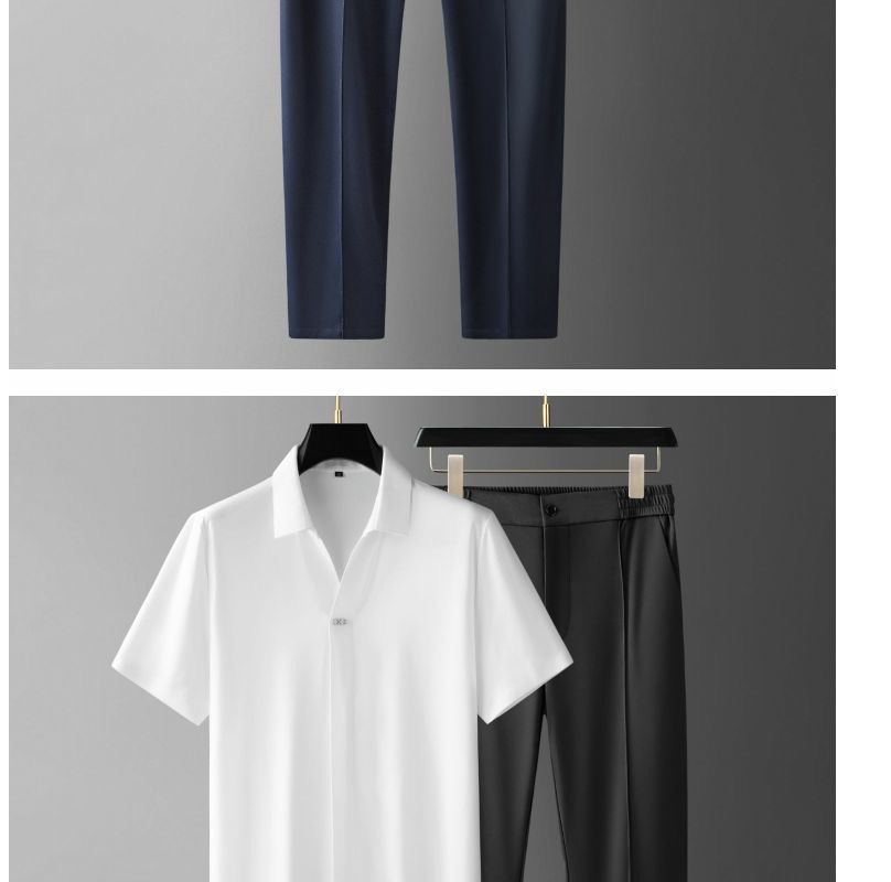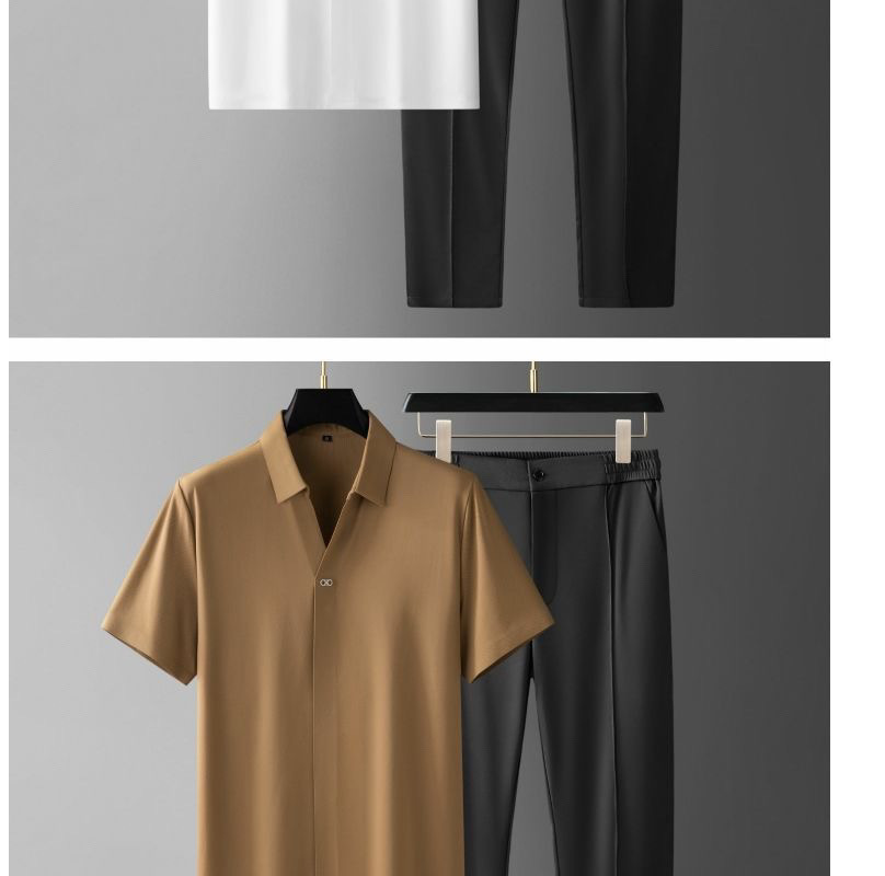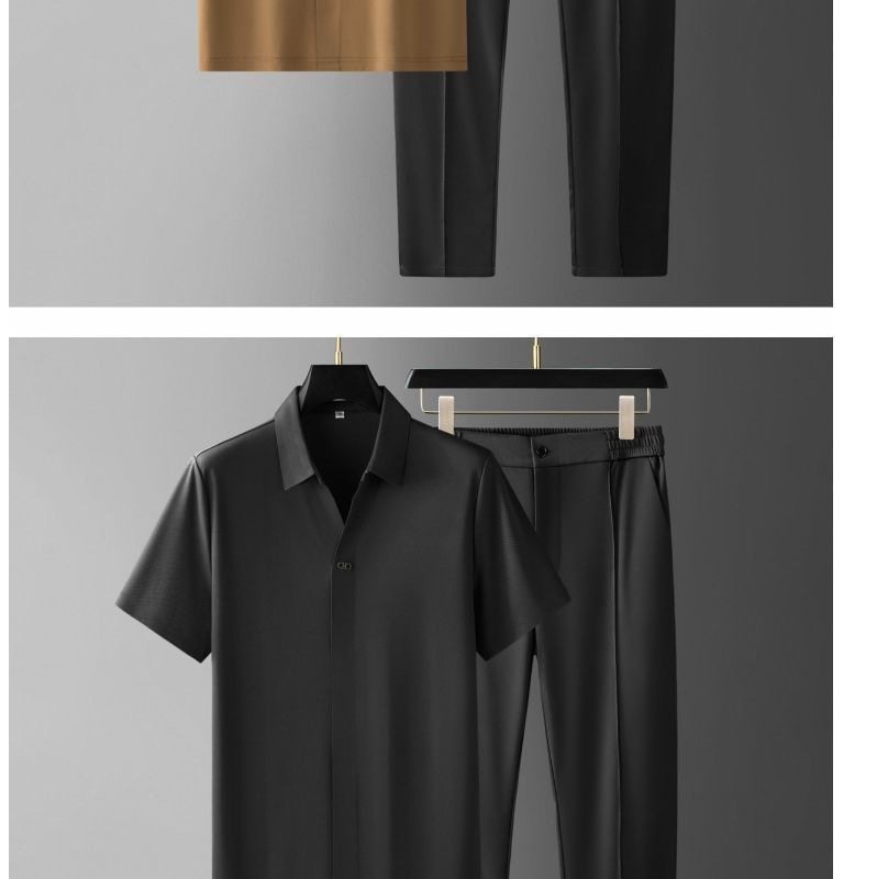 여름 초박형 스케이트 하이 엔드 접착 반팔 셔츠 세트 아이스 실크 비즈니스 캐주얼 남성 스포츠 투피스 세트