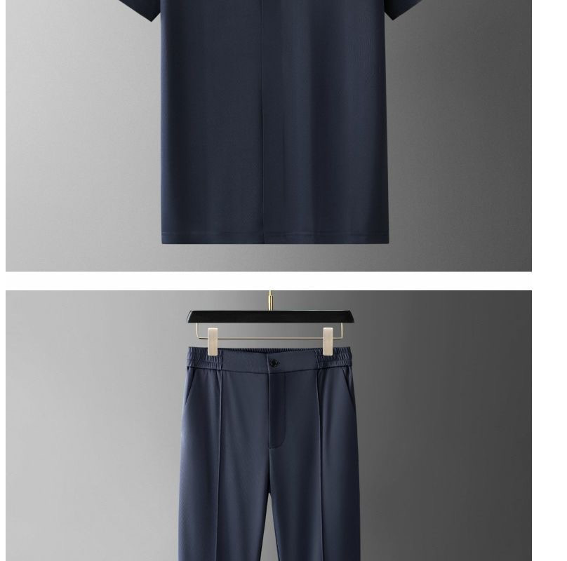 여름 초박형 스케이트 하이 엔드 접착 반팔 셔츠 세트 아이스 실크 비즈니스 캐주얼 남성 스포츠 투피스 세트스토어 가기