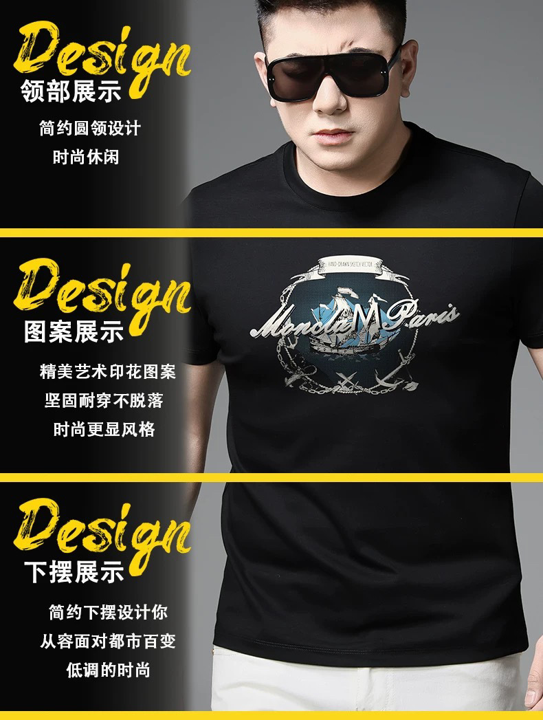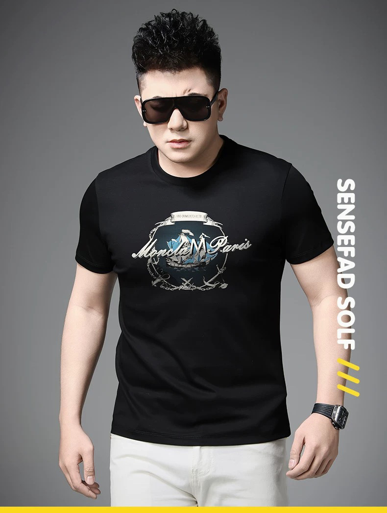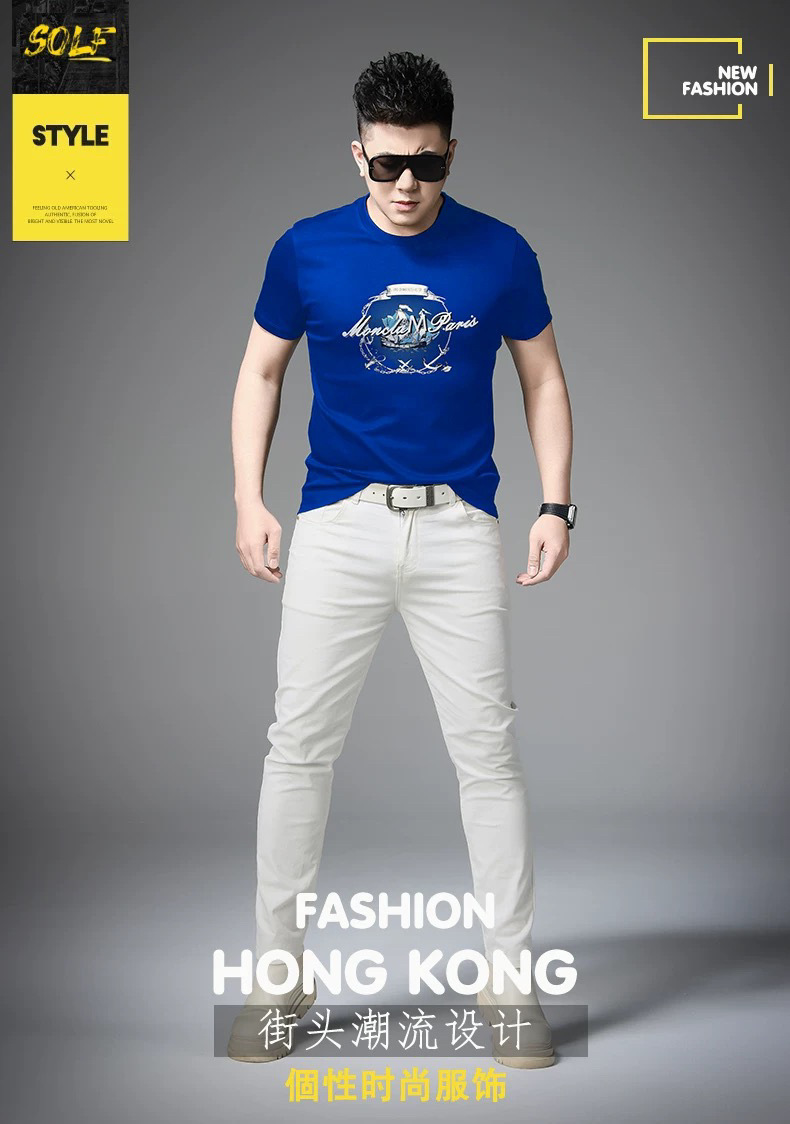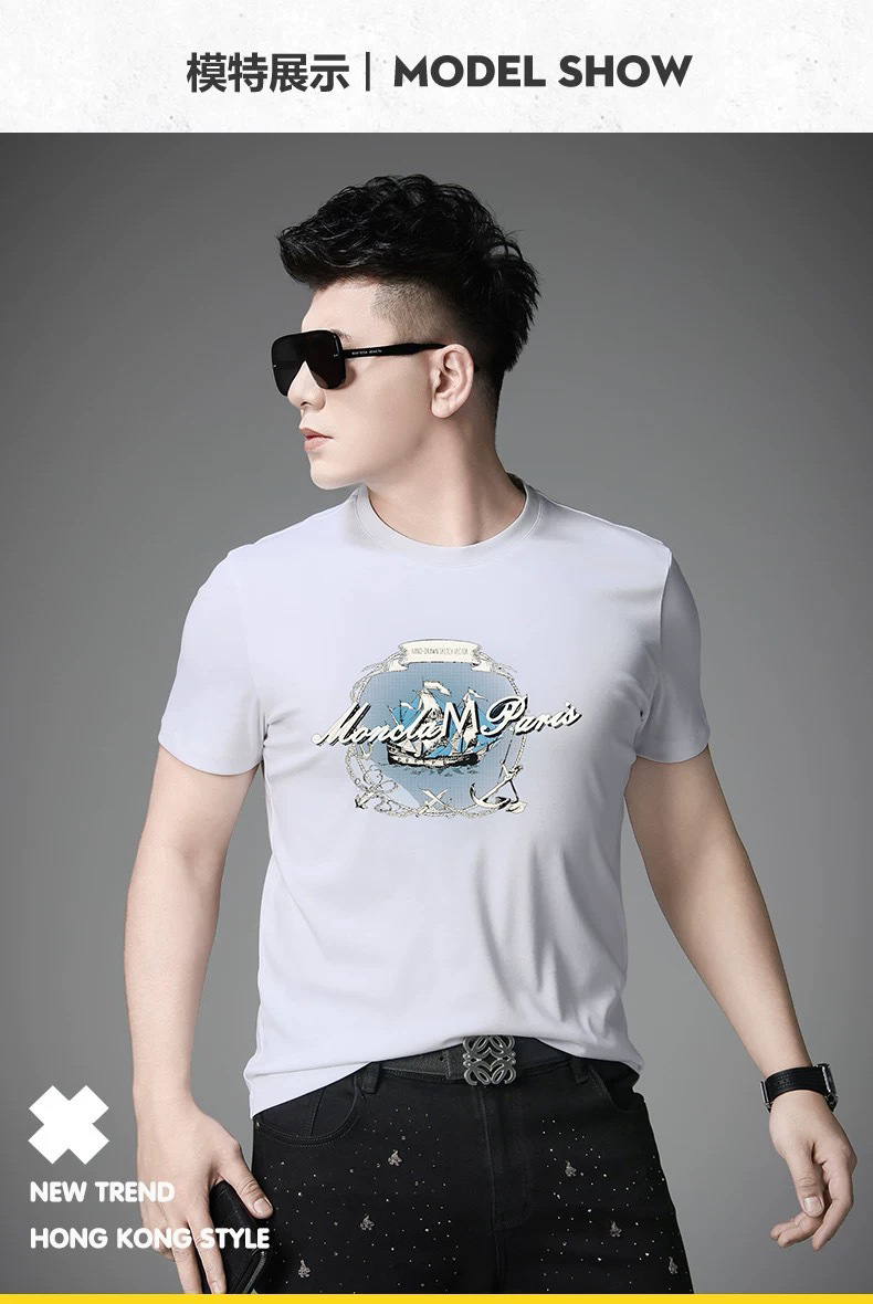 유럽 패션 고품질 캐주얼 남성 반팔 티셔츠 25 여름 신작 중공업 핫 프린트 다용도 슬림 T스토어 가기