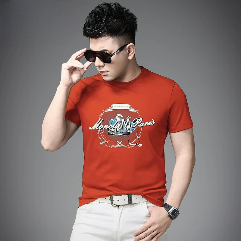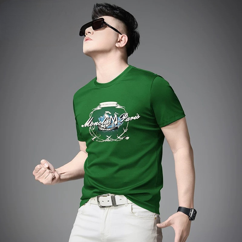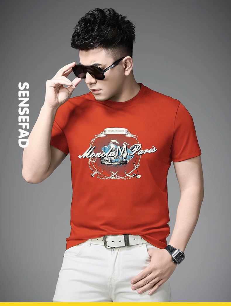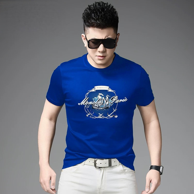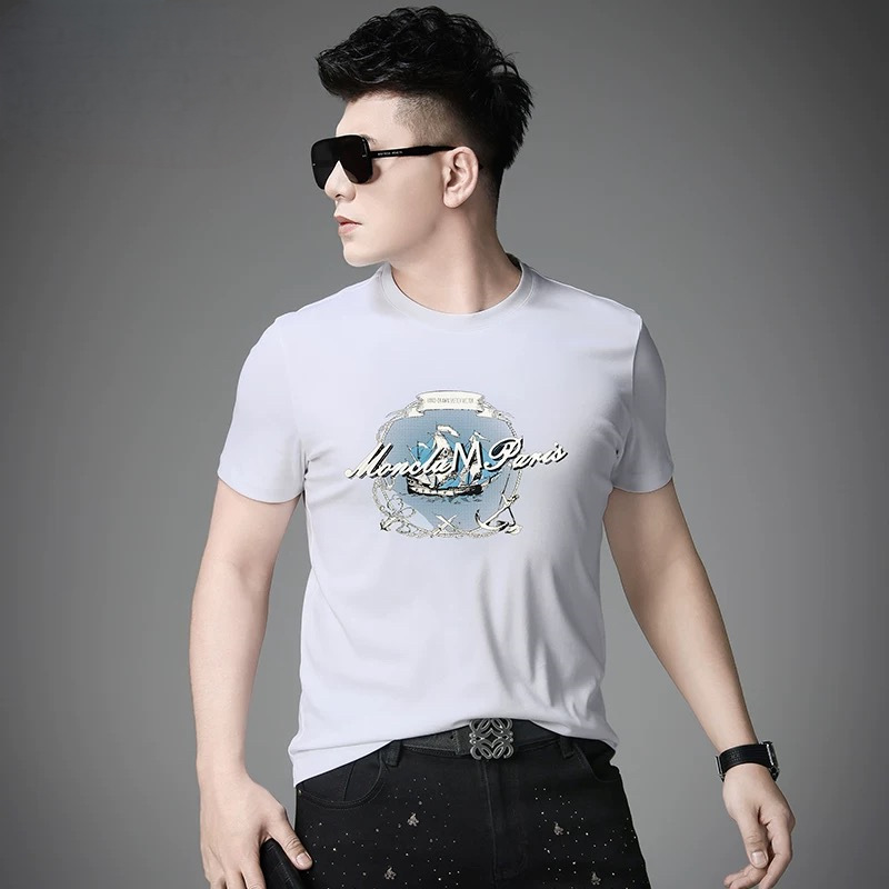유럽 패션 고품질 캐주얼 남성 반팔 티셔츠 25 여름 신작 중공업 핫 프린트 다용도 슬림 T스토어 가기