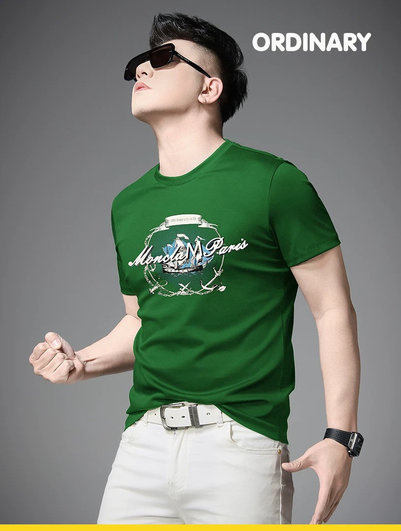 유럽 패션 고품질 캐주얼 남성 반팔 티셔츠 25 여름 신작 중공업 핫 프린트 다용도 슬림 T