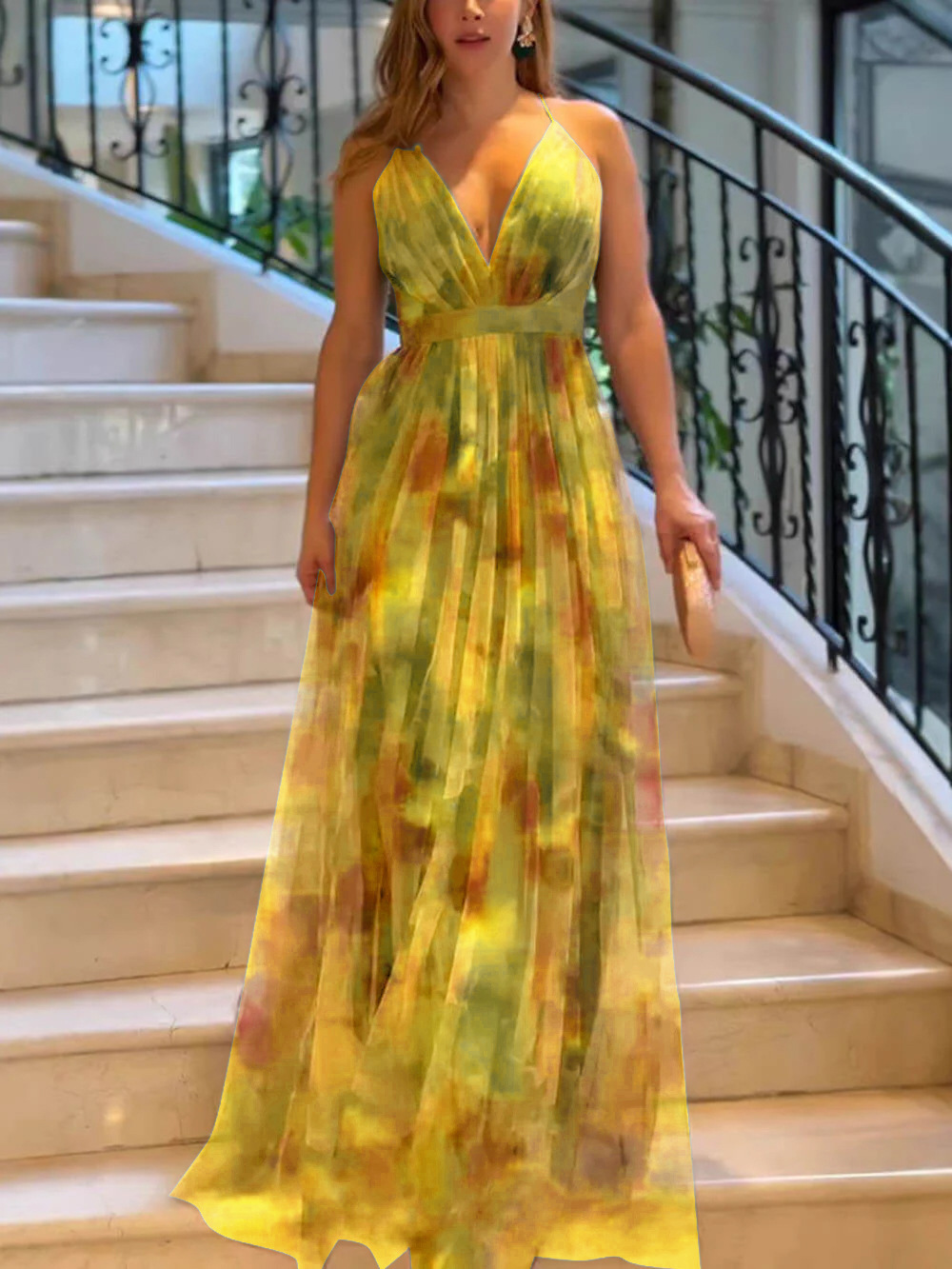 크로스보더 2026 유럽 및 미국 봄 여름 신상 메쉬 프린트 슬립 드레스 INS 휴가 캐주얼 파티 드레스