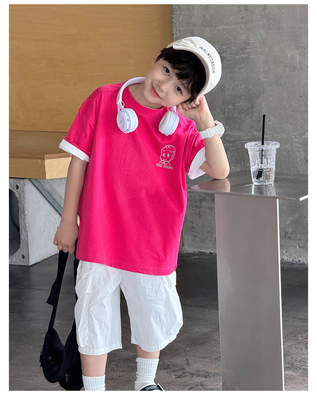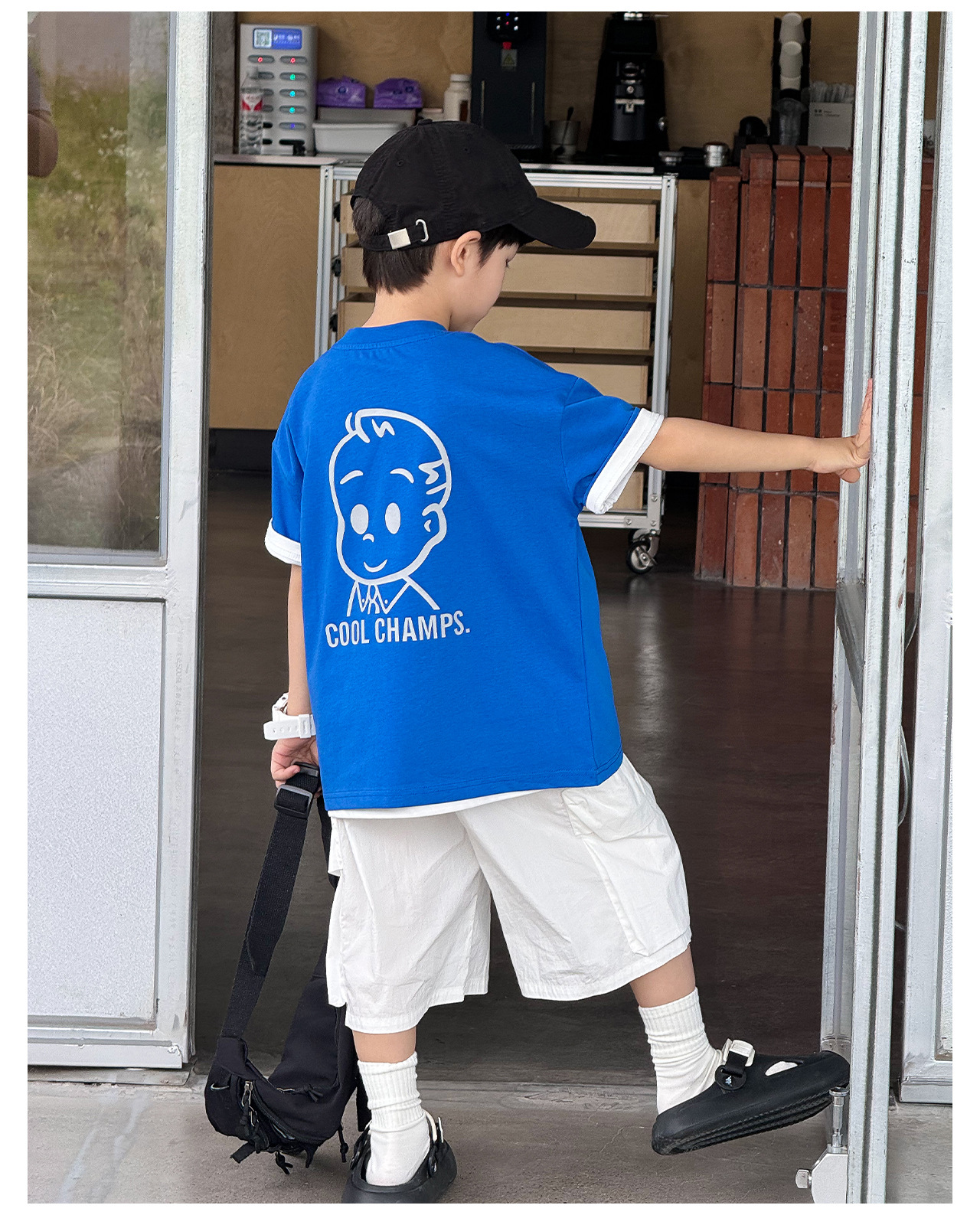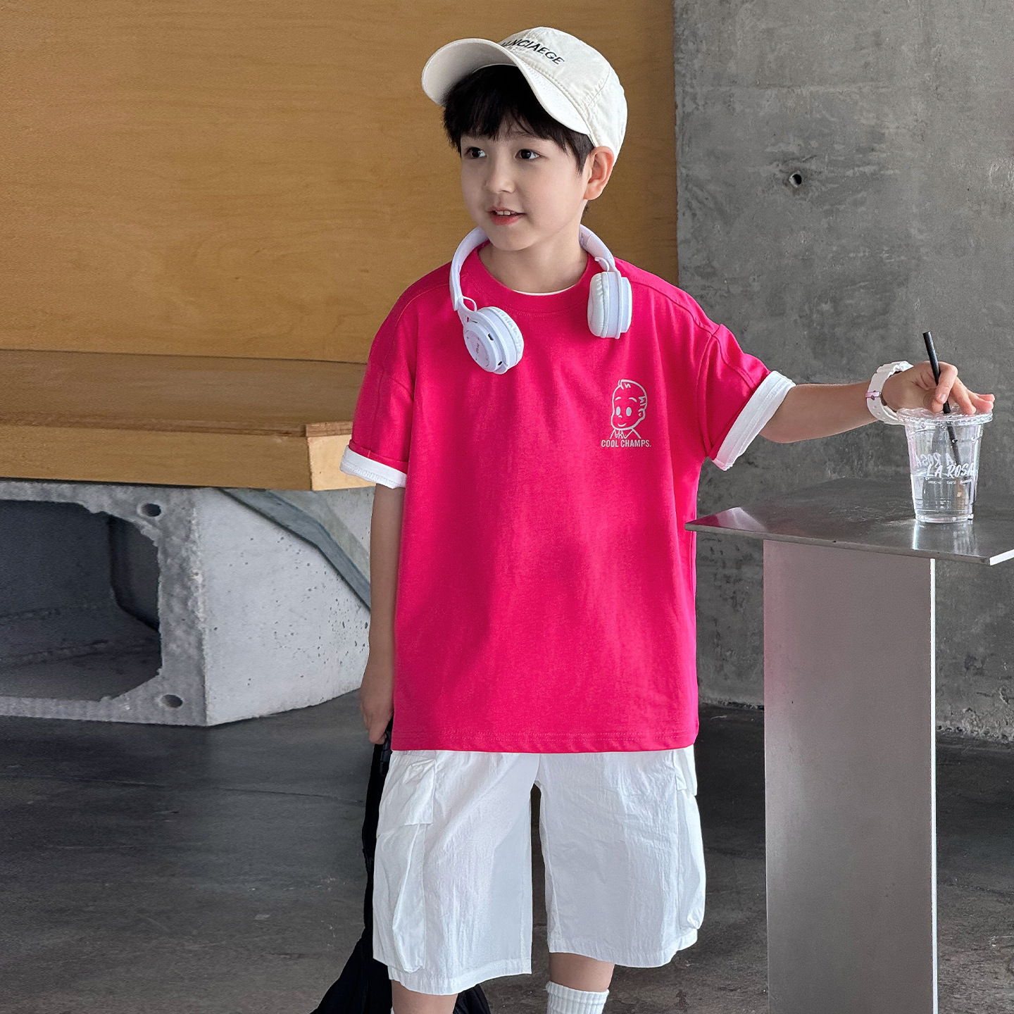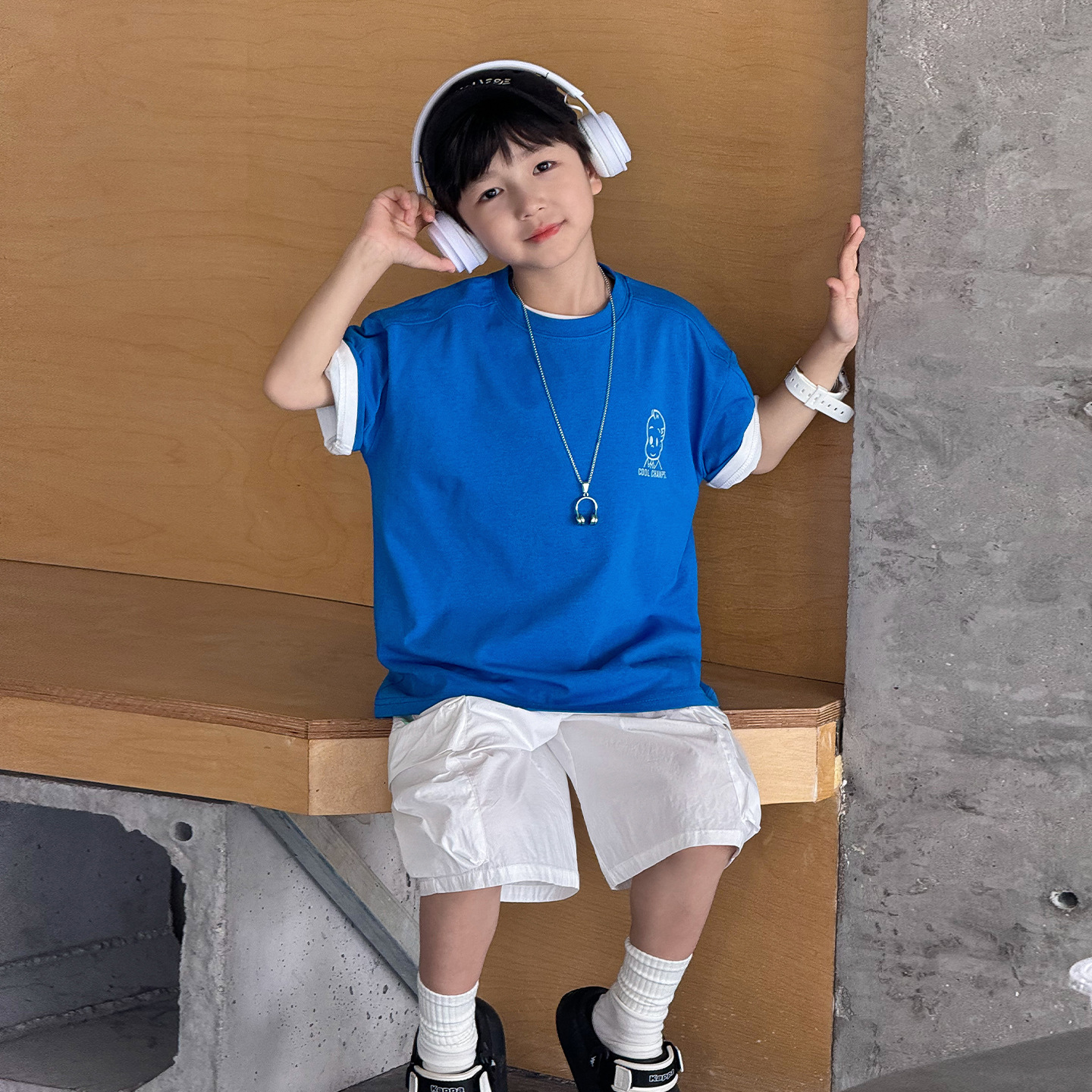 어린이 멋진 2025 소년 여름 새로운 Huzhou Zhili 아동복 빛나는 아기 인쇄 서양식 어린이 짧은 소매 티셔츠스토어 가기