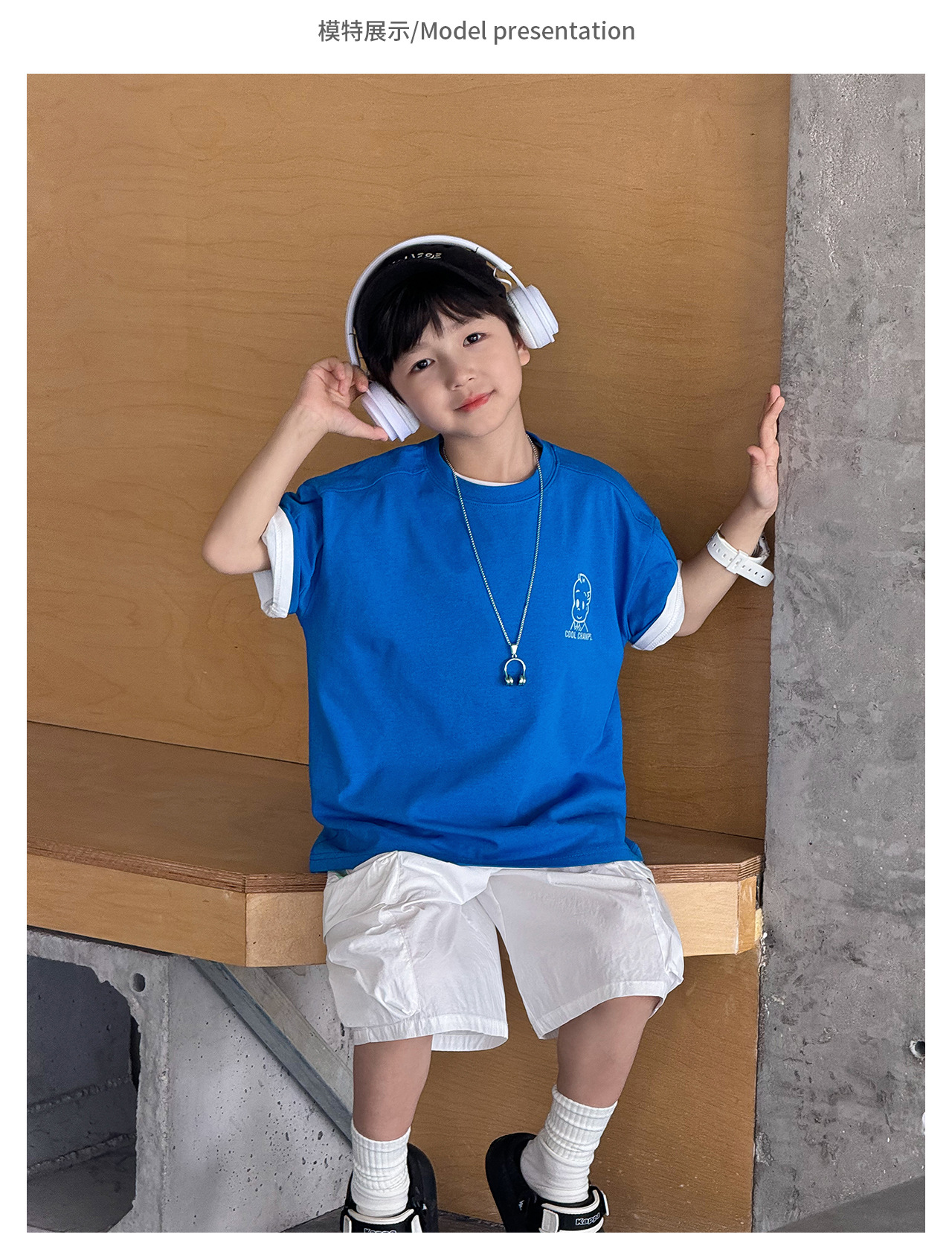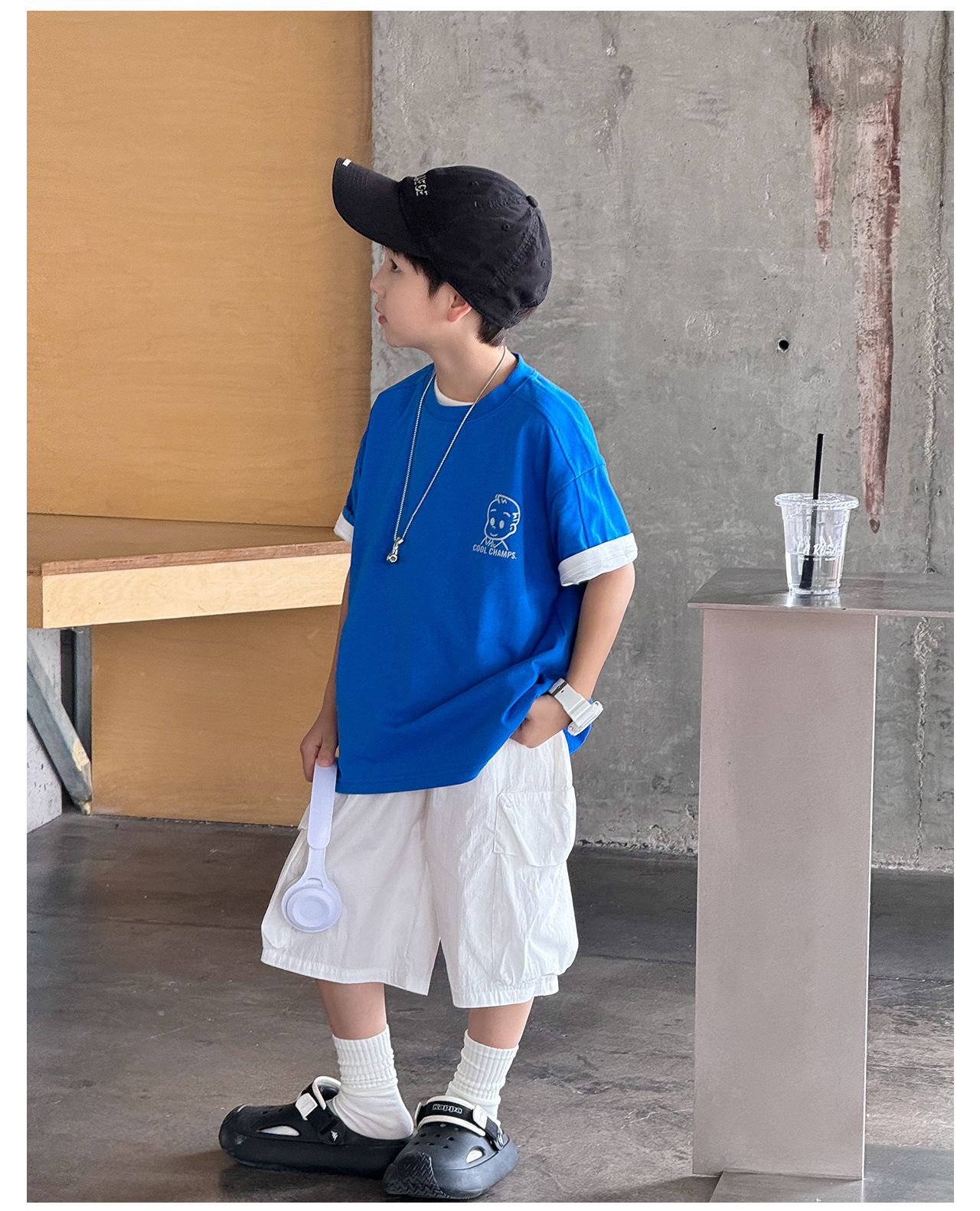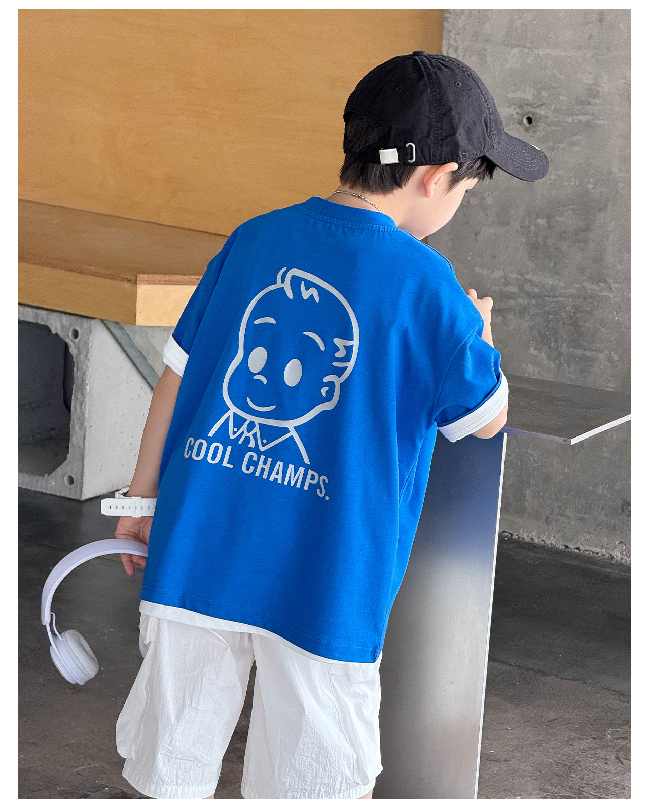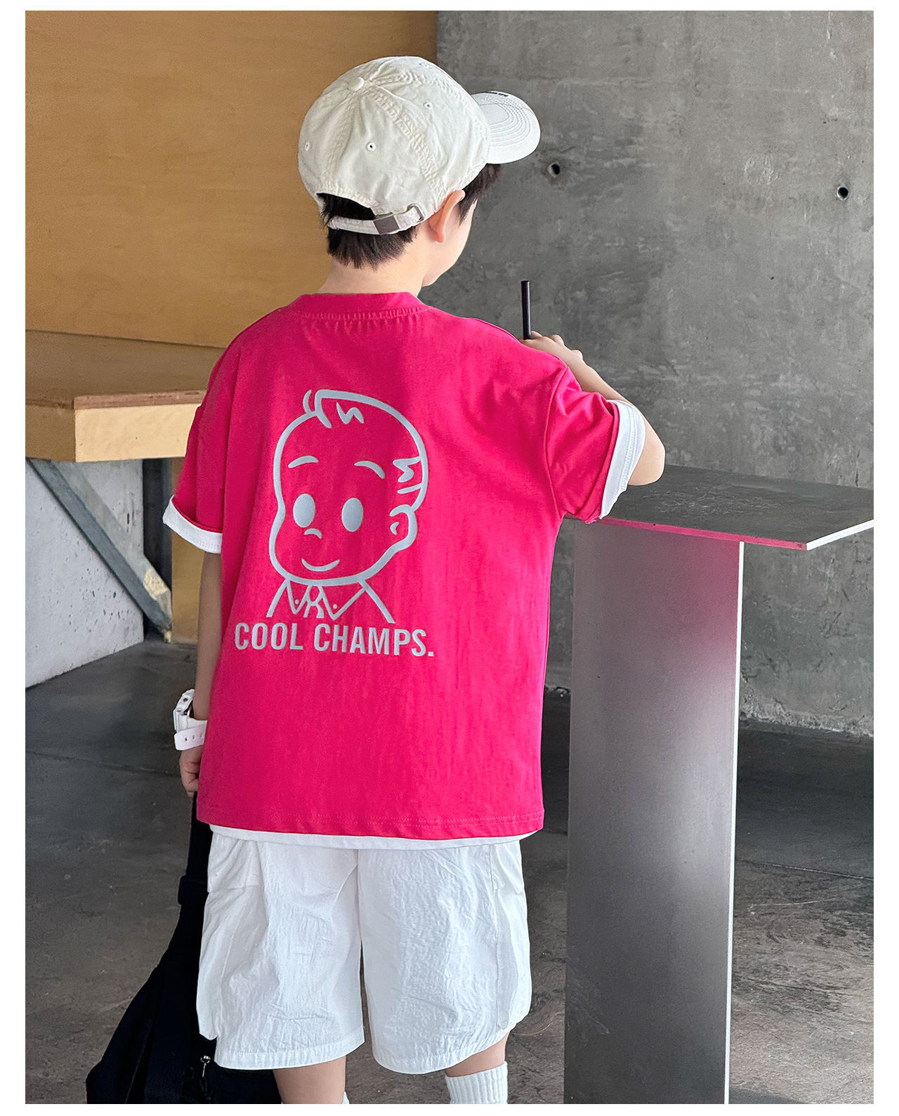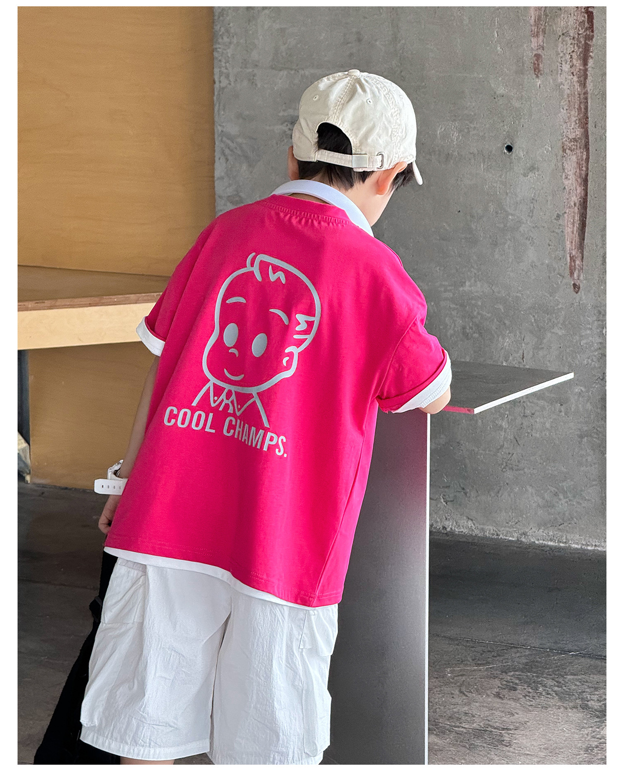 어린이 멋진 2025 소년 여름 새로운 Huzhou Zhili 아동복 빛나는 아기 인쇄 서양식 어린이 짧은 소매 티셔츠스토어 가기