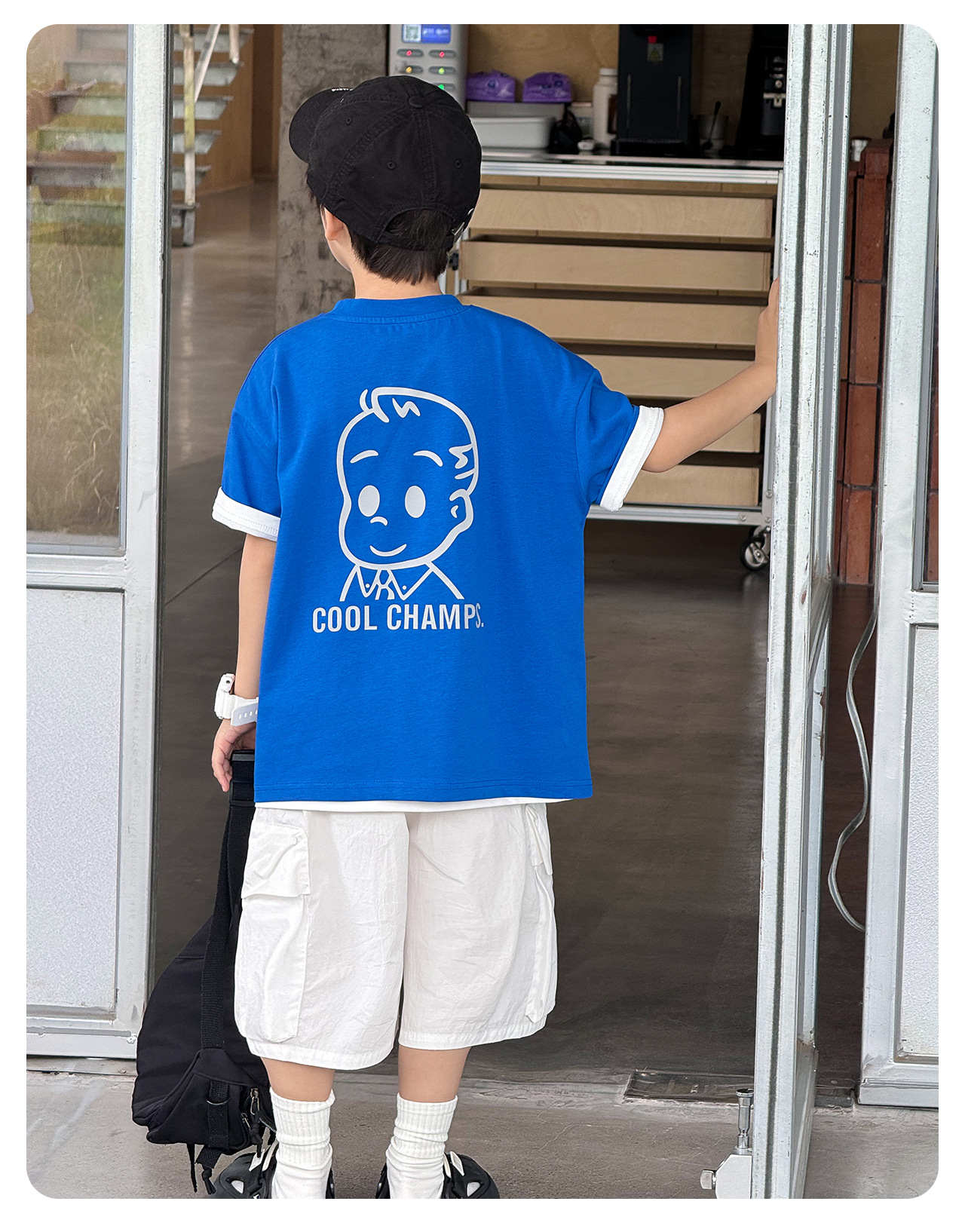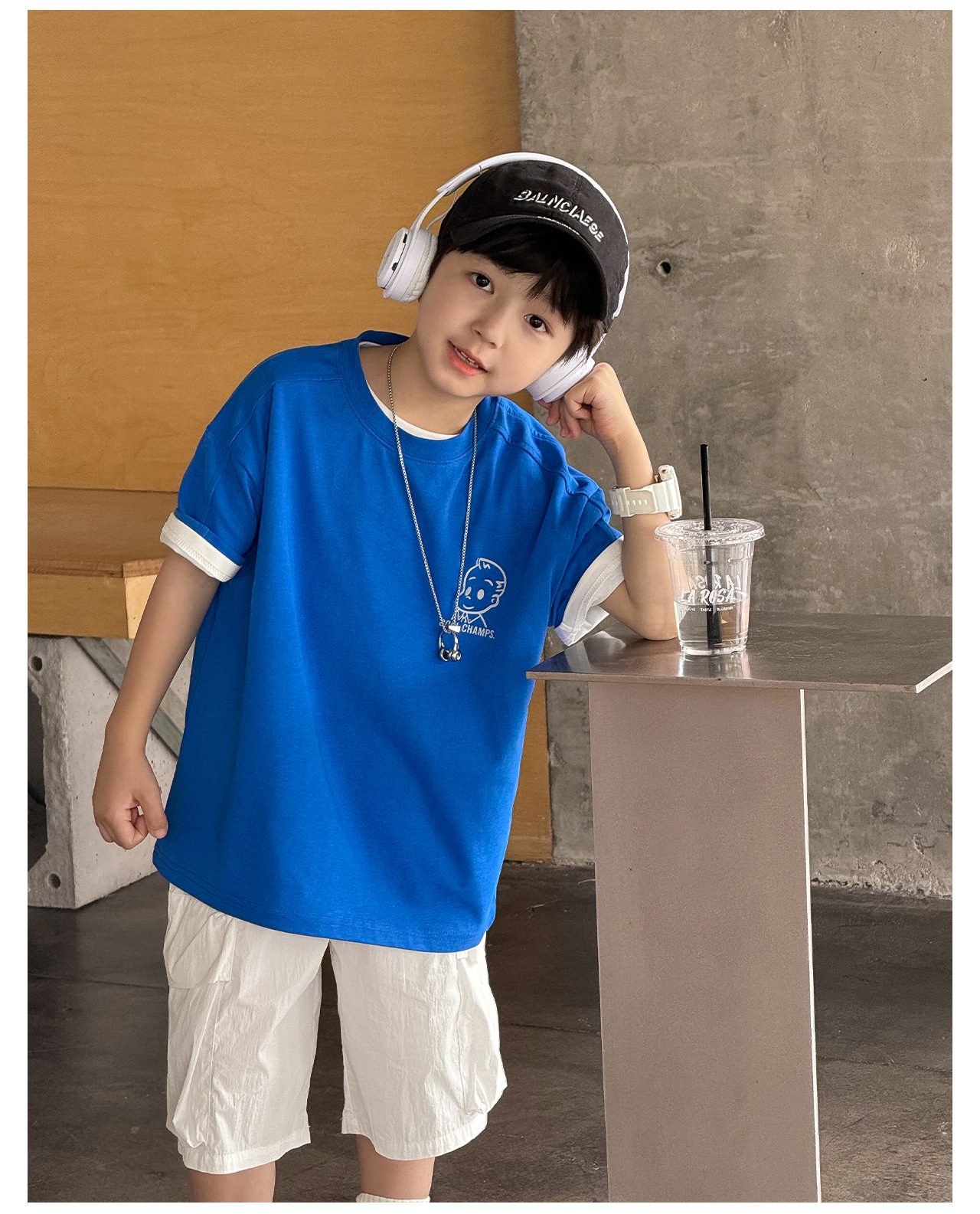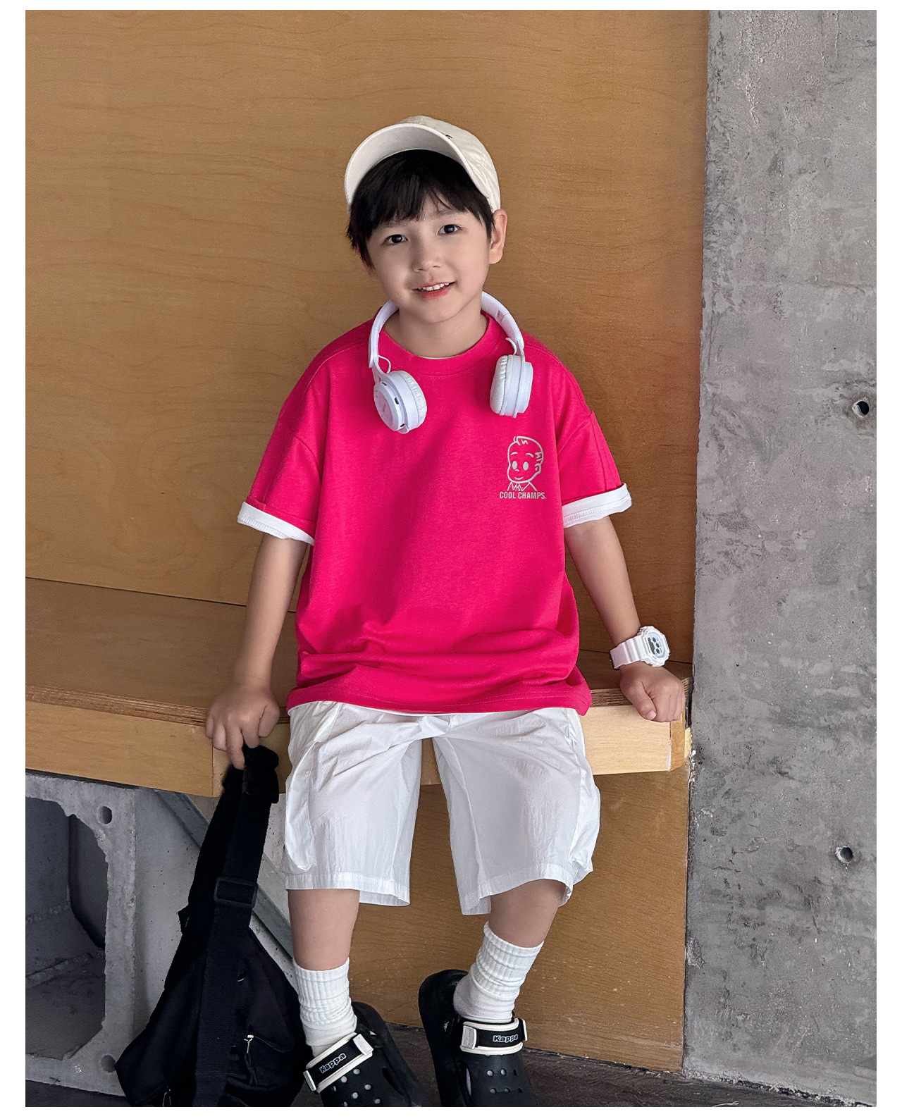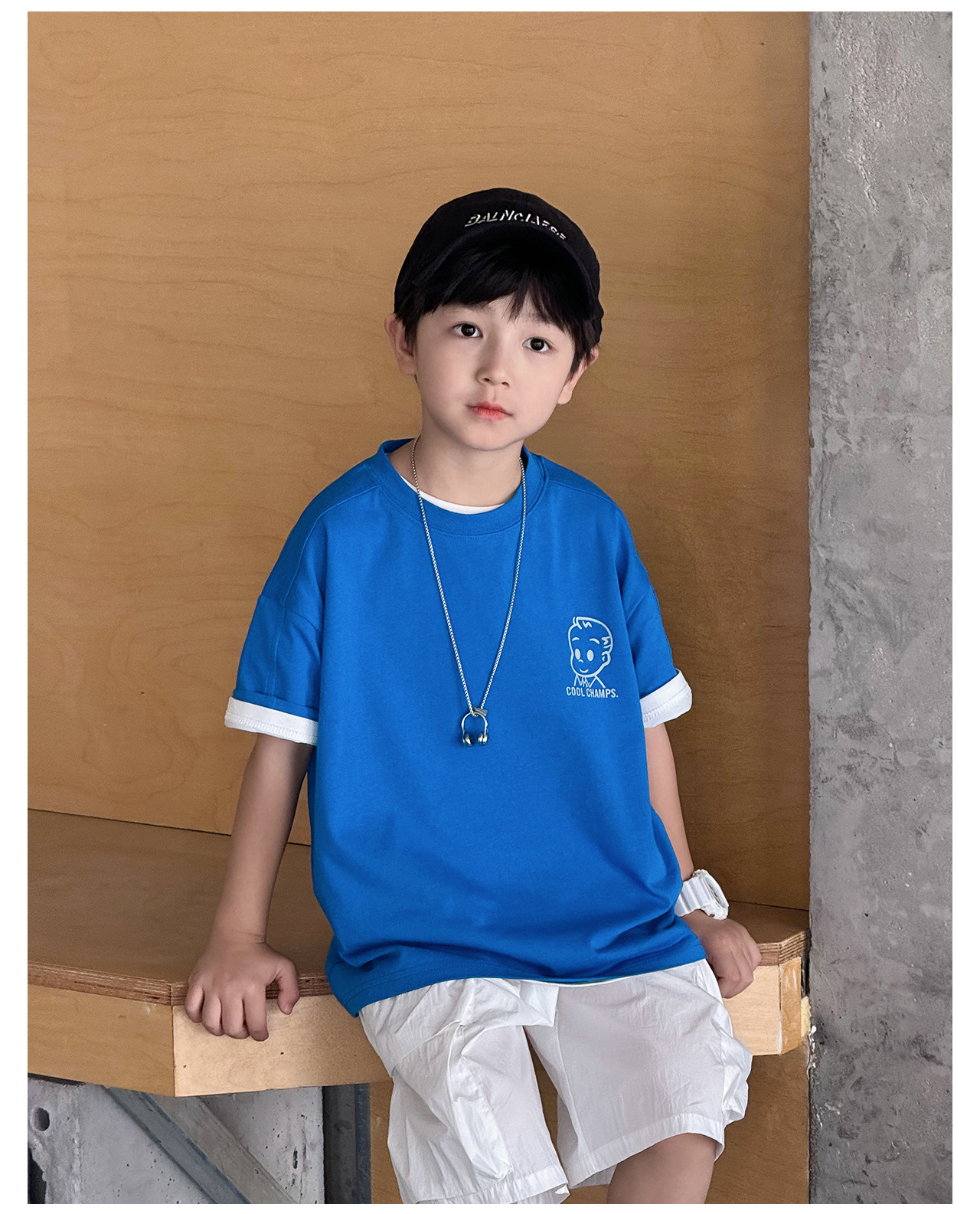 어린이 멋진 2025 소년 여름 새로운 Huzhou Zhili 아동복 빛나는 아기 인쇄 서양식 어린이 짧은 소매 티셔츠스토어 가기