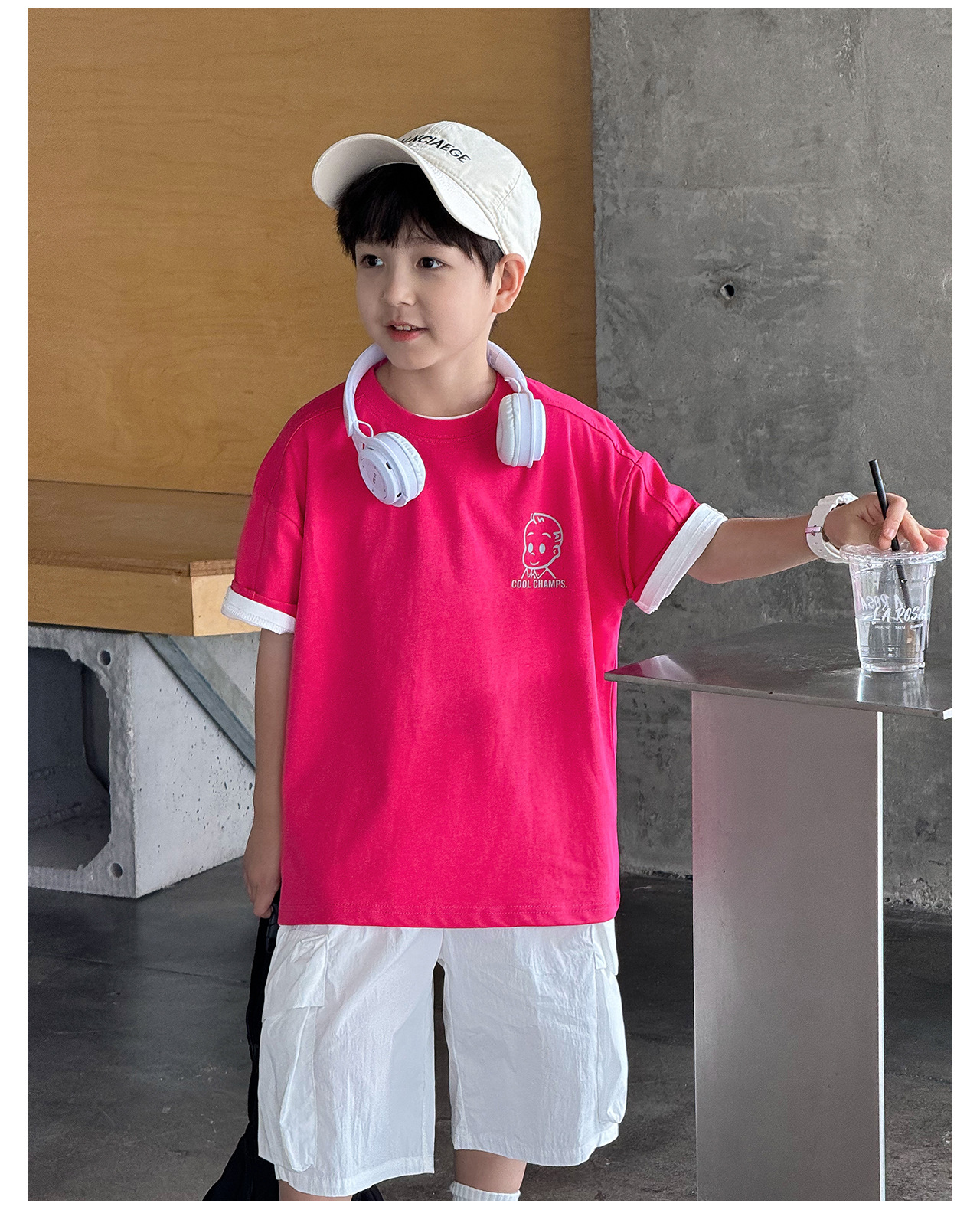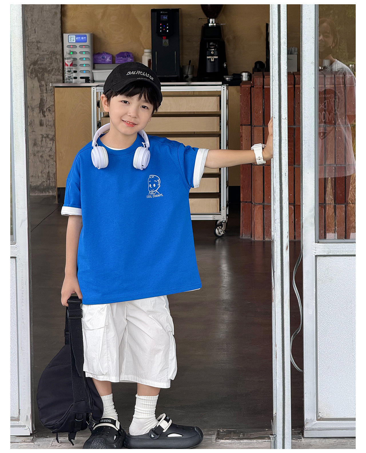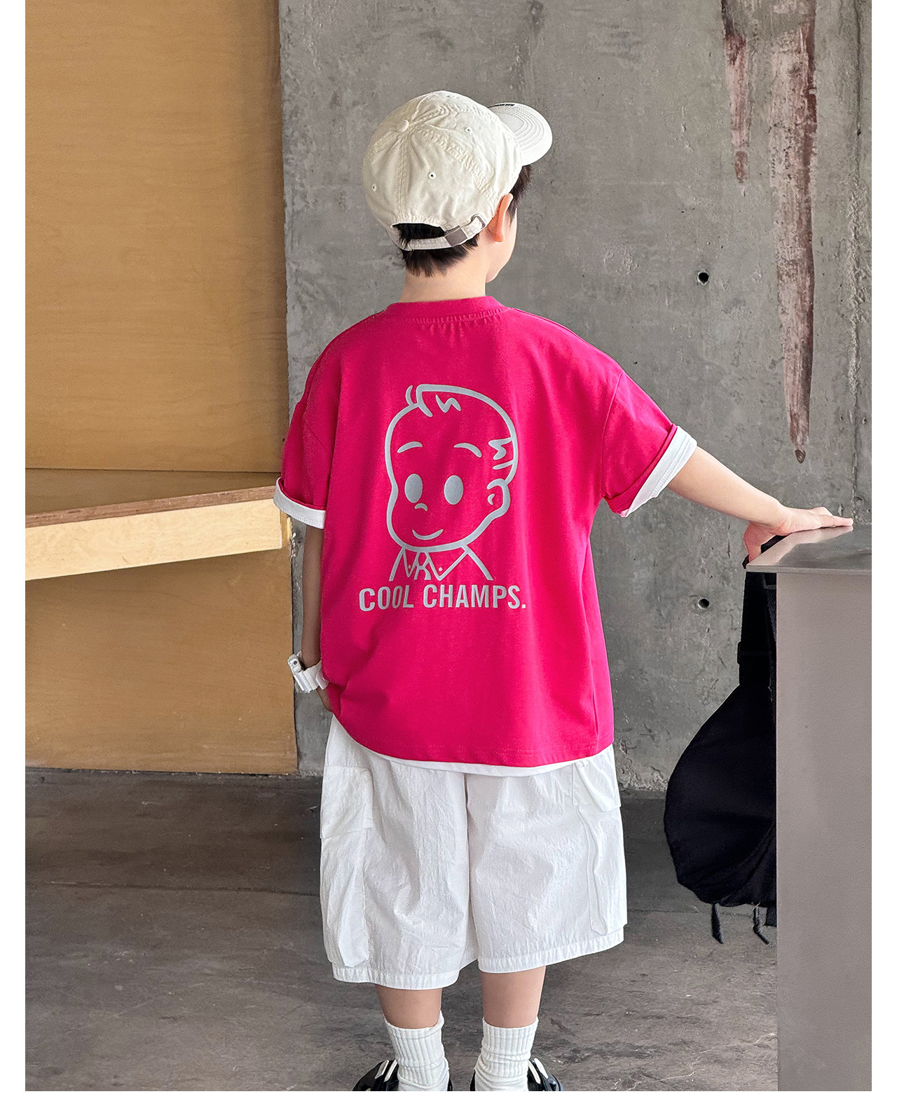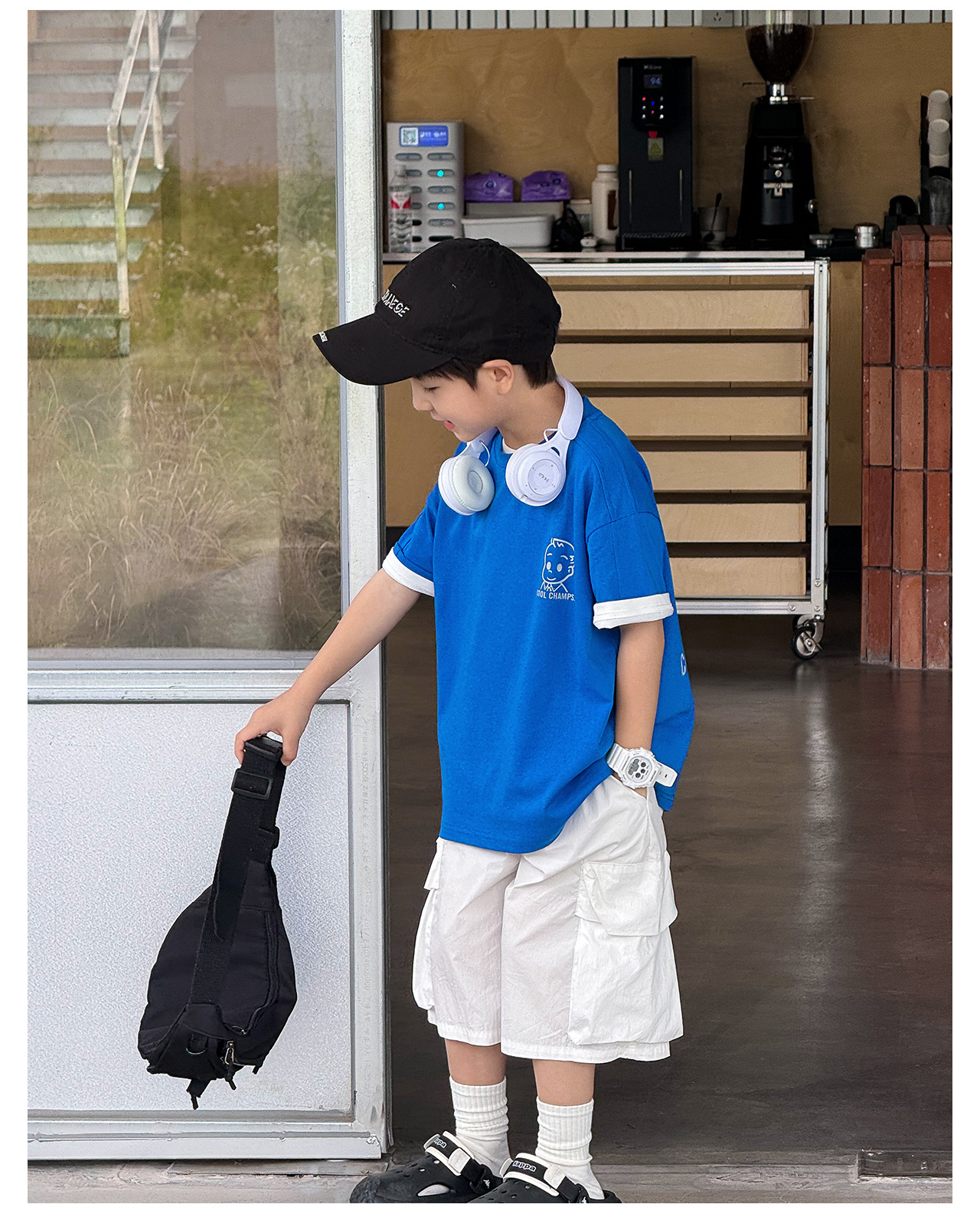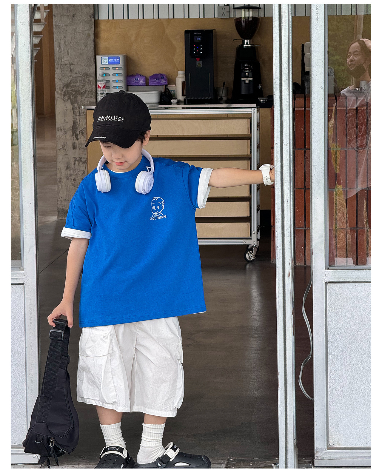 어린이 멋진 2025 소년 여름 새로운 Huzhou Zhili 아동복 빛나는 아기 인쇄 서양식 어린이 짧은 소매 티셔츠스토어 가기