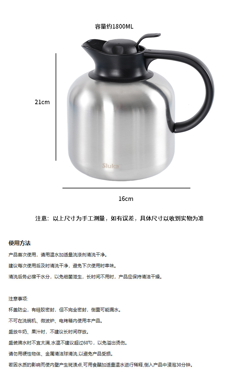 Sluka 보온병 주전자 316 스테인레스 스틸 찻주전자 이벤트 선물 가정용 대용량 복고풍 찻주전자스토어 가기