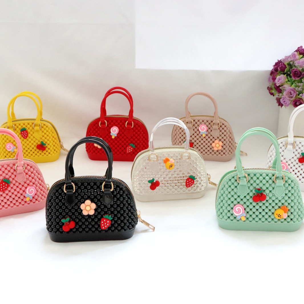 새로운 어린이 젤리 가방 중공 패션 화장품 가방 소녀 미니 작은 어깨 가방 소녀 꽃 무작위 PVC스토어 가기