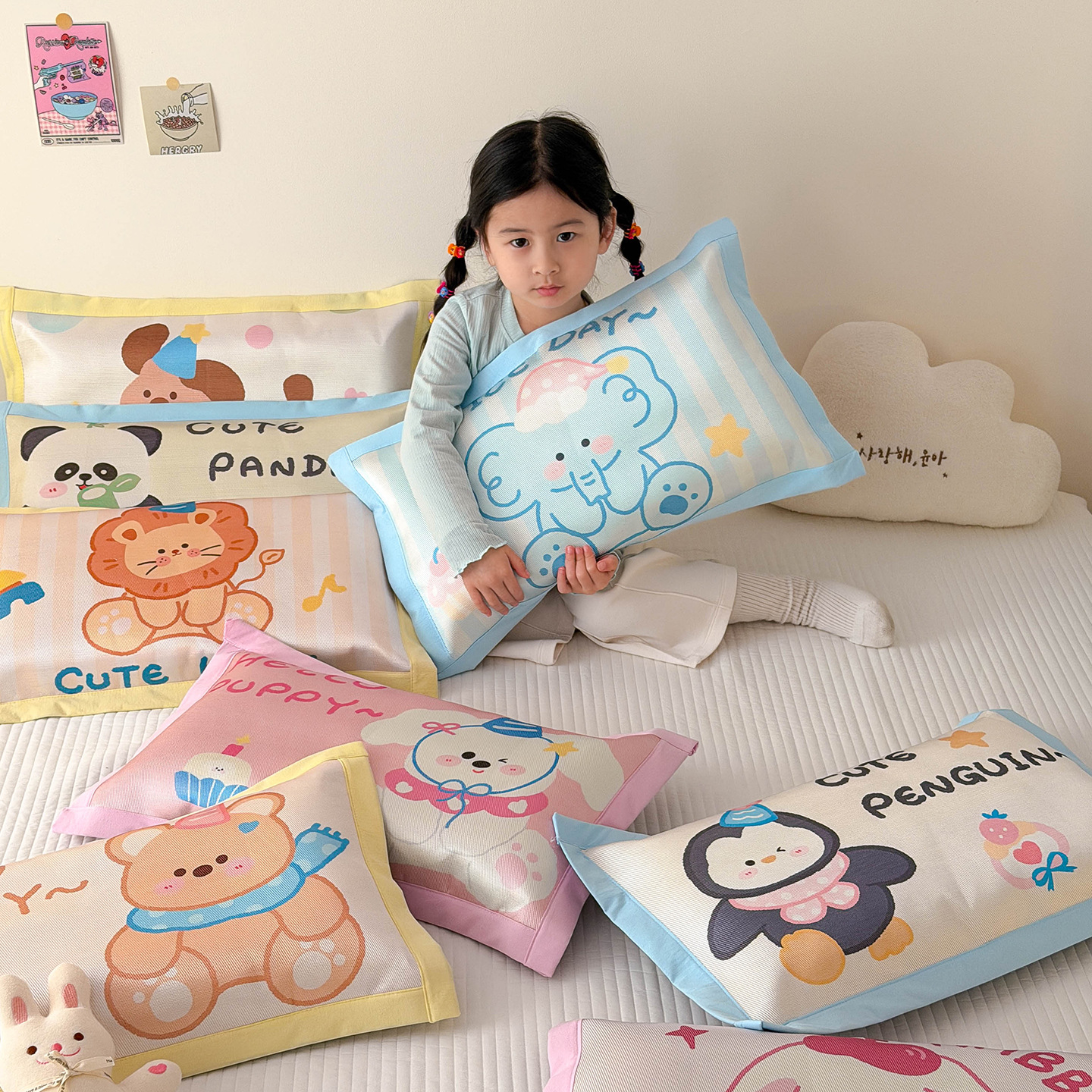 어린이용 대형 얼음 실크 베개 커버 베개 코어 아기 유치원 베개 커버 베개 어린이 및 큰 어린이 베개 코어 얼음 실크 베개 시원한 느낌 베개스토어 가기