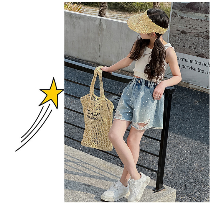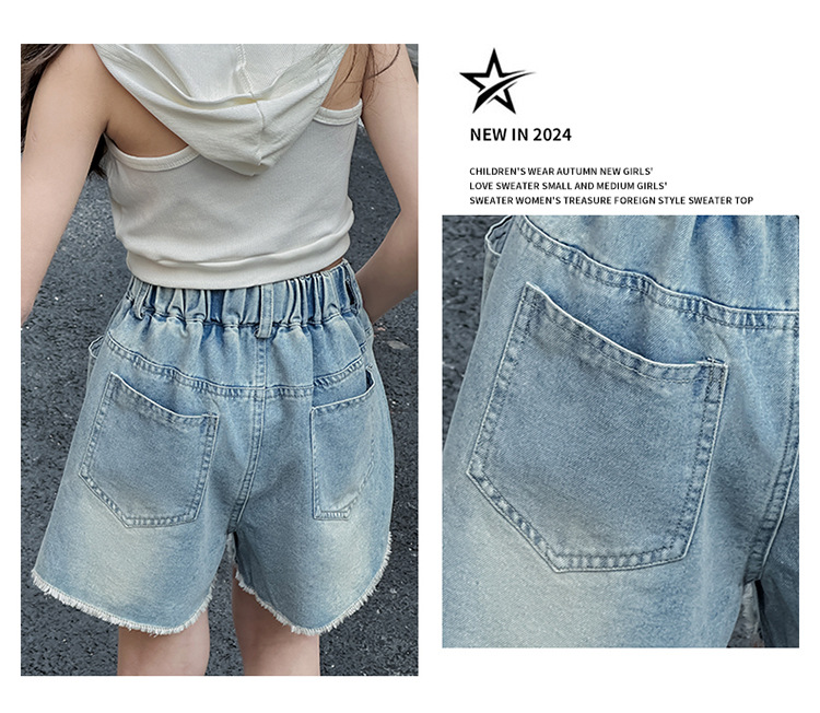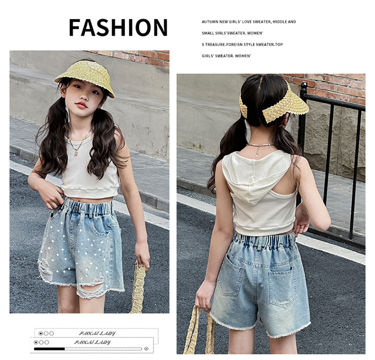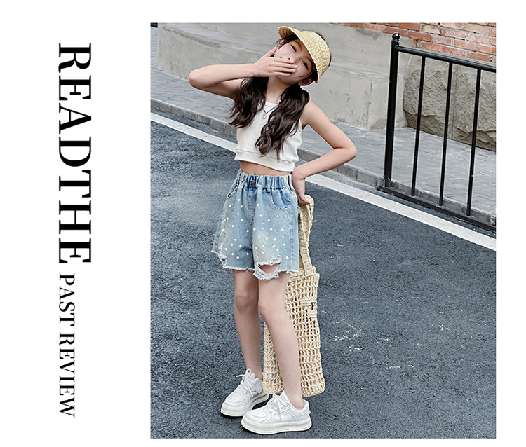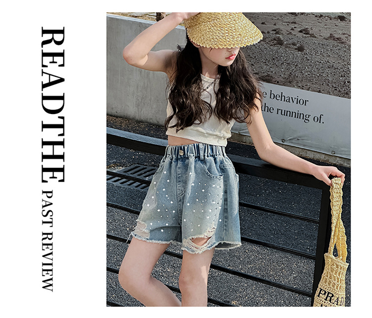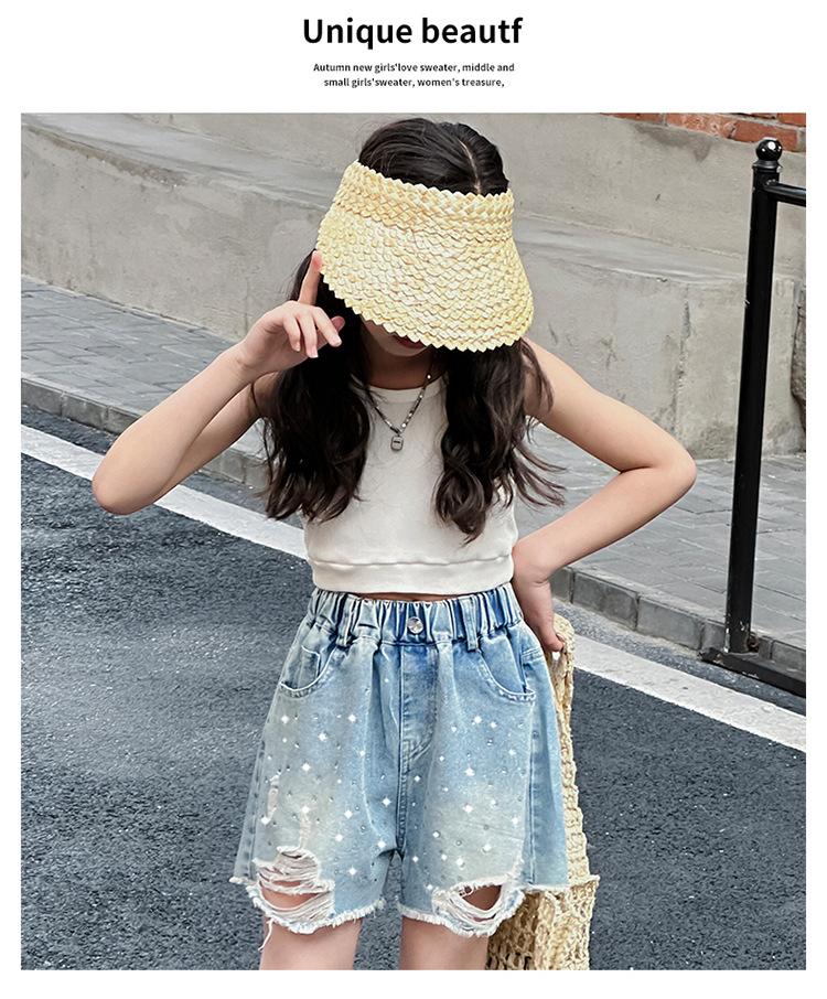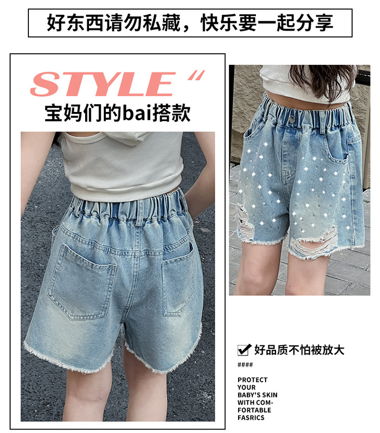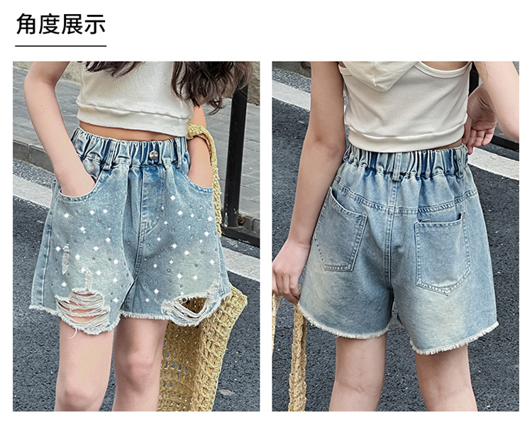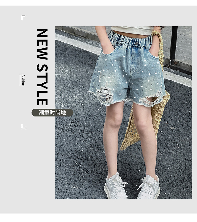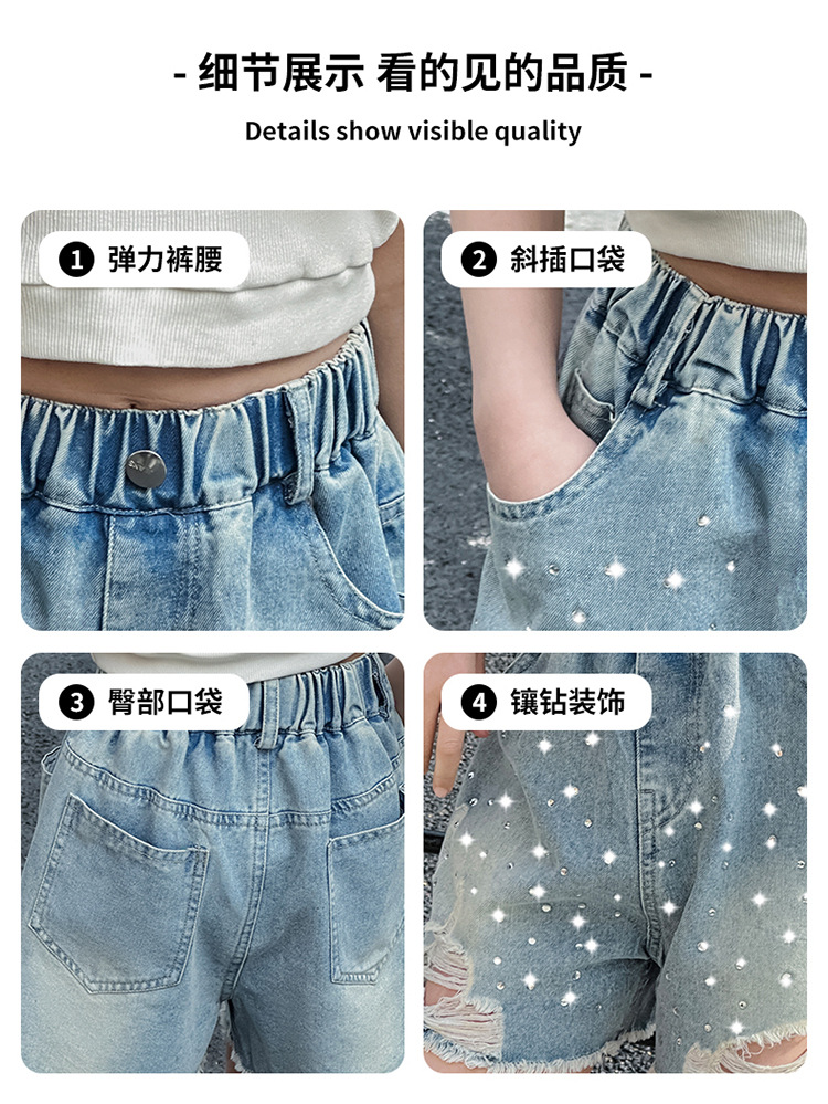 여아 반바지, 큰 아동용 아우터, 2025년 여름 신상 데님 반바지, 패셔너블한 아동 패션 핫 다이아몬드 찢어진 바지스토어 가기