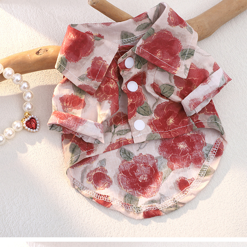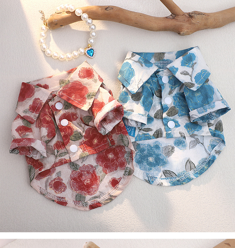 2025 여름 새 개 옷 한국 스타일 휴일 스타일 여름 셔츠 작은 개 머리 증거 셔츠 두 다리 옷