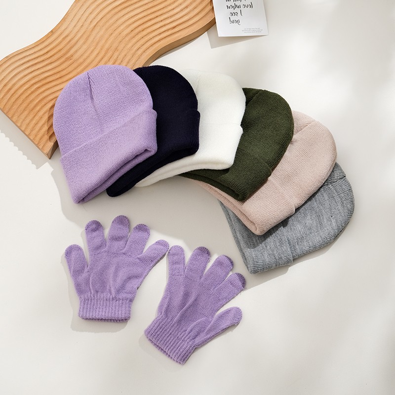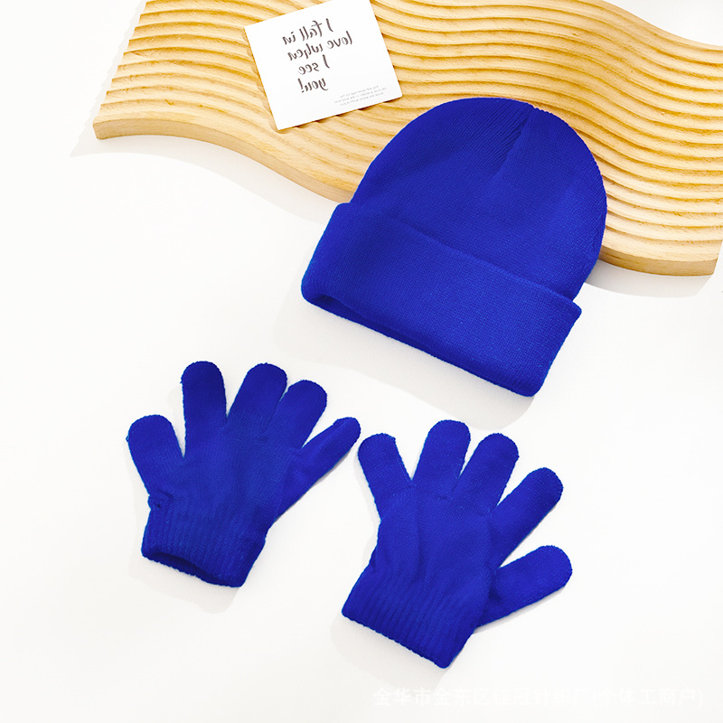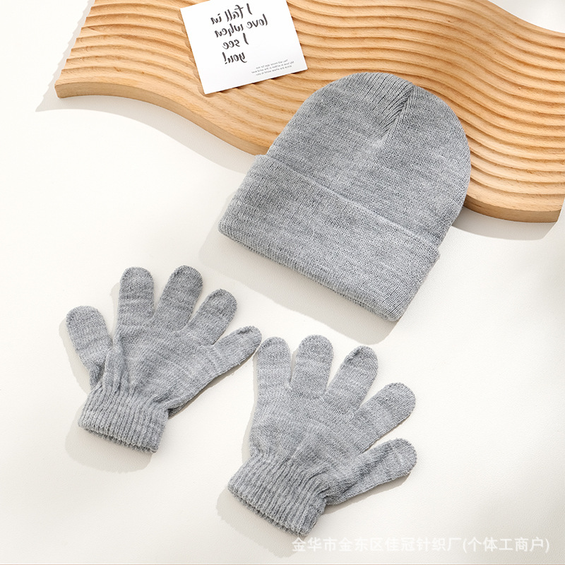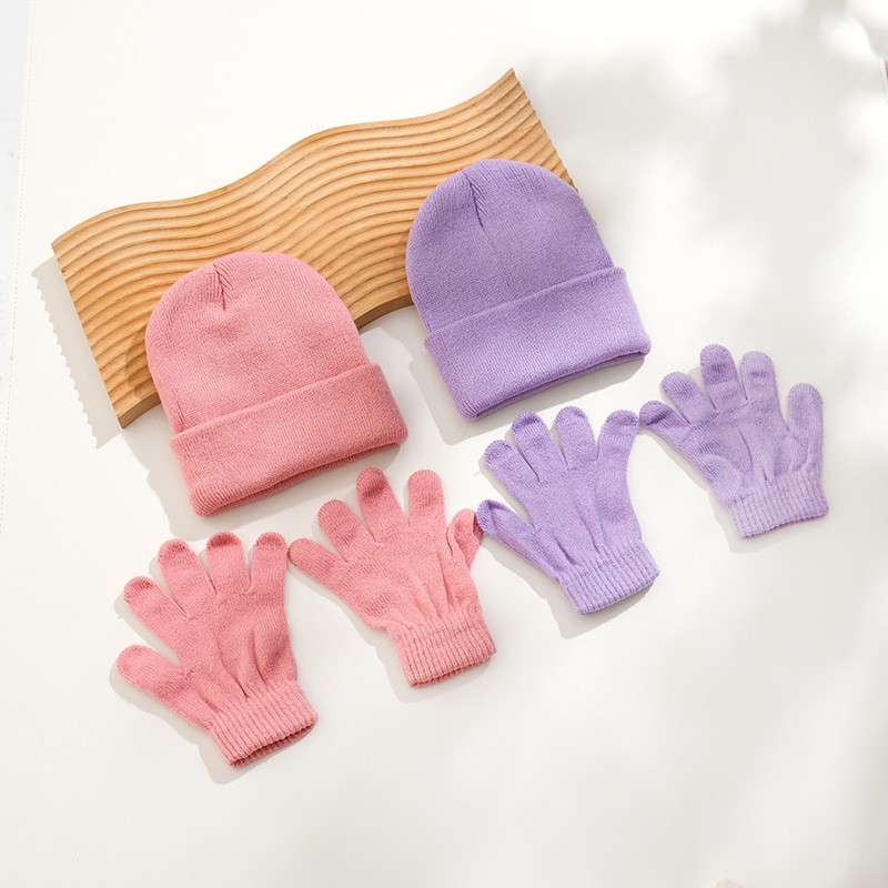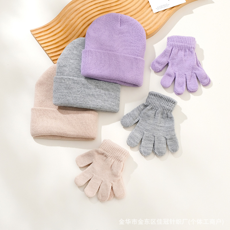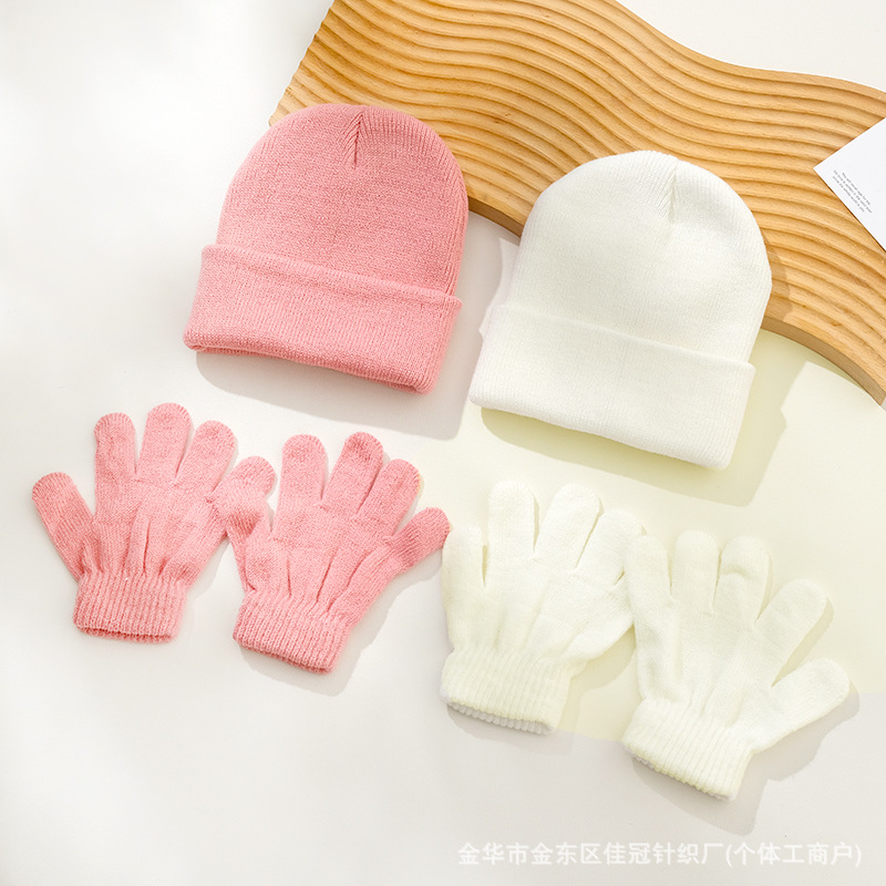 아동용 아크릴 니트 장갑과 모자 2종 세트, 가을 겨울용, 따뜻하고 방한 기능이 있는 어린이용 니트 모자스토어 가기