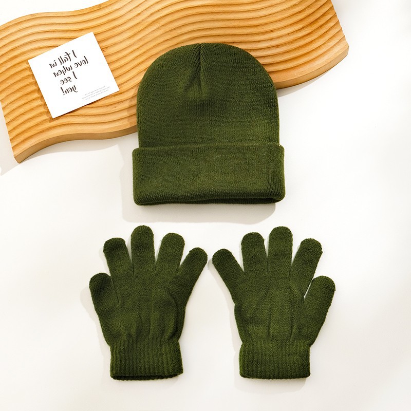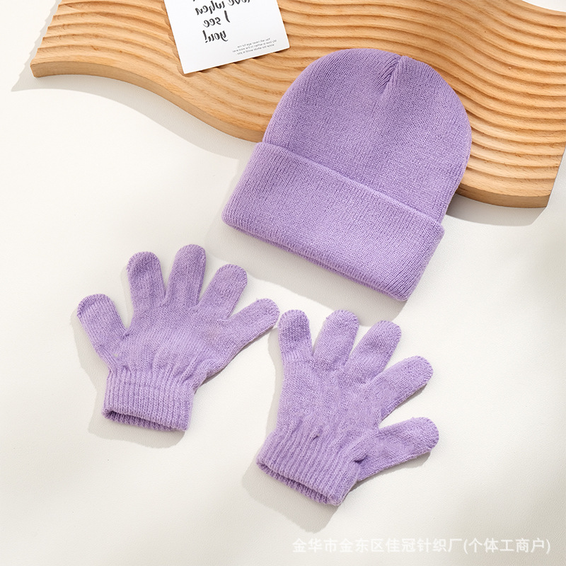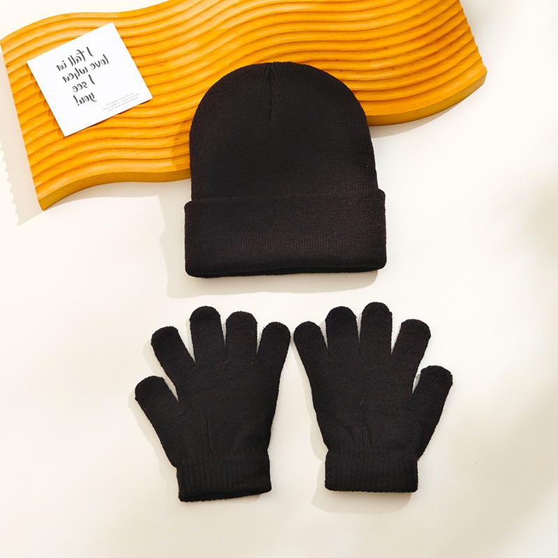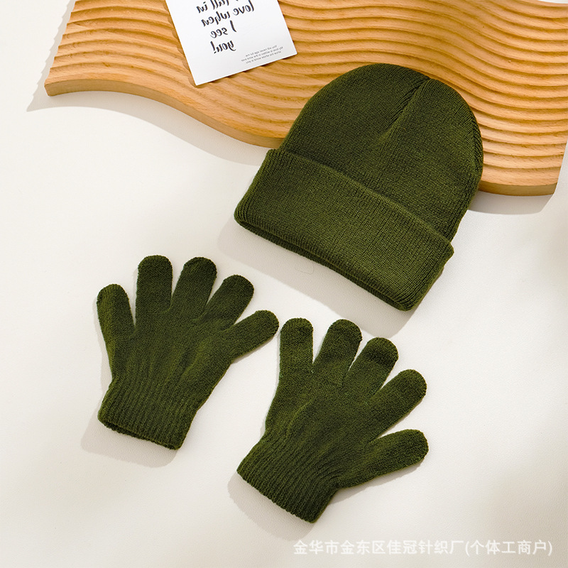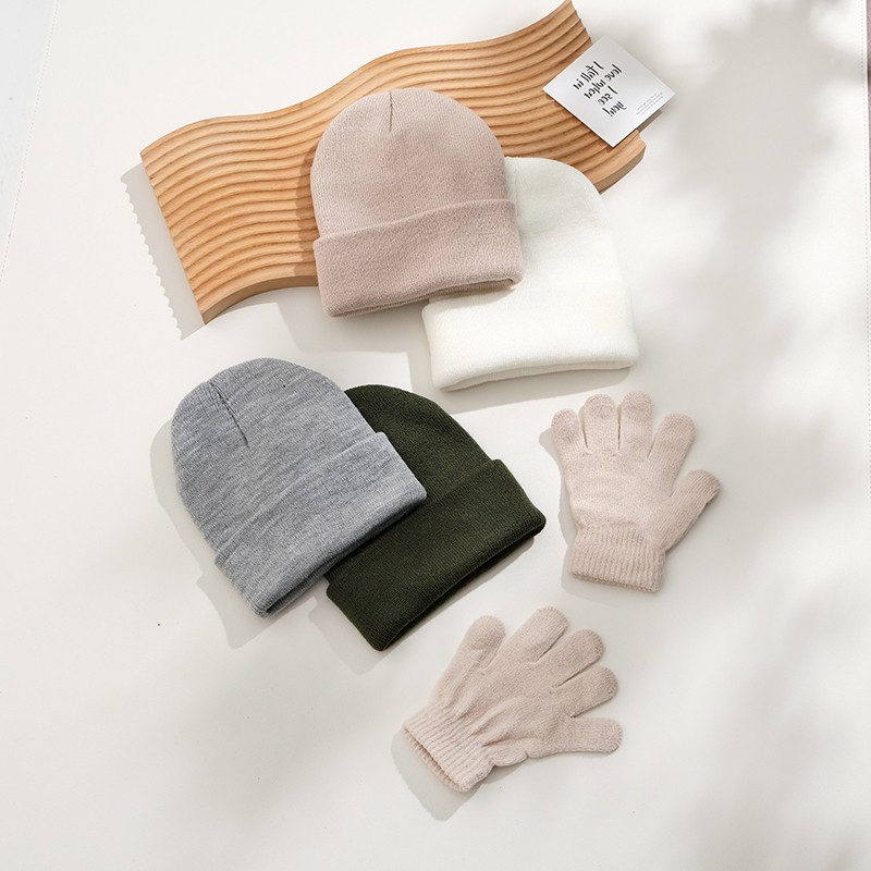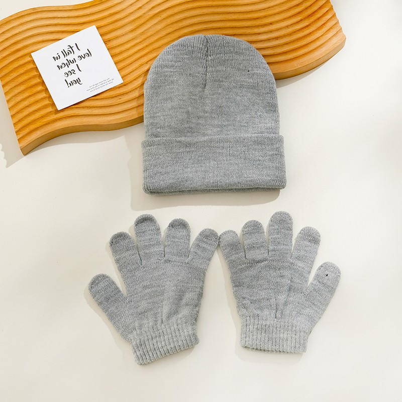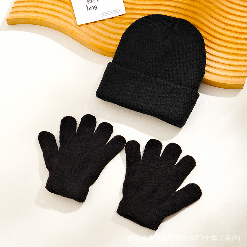 아동용 아크릴 니트 장갑과 모자 2종 세트, 가을 겨울용, 따뜻하고 방한 기능이 있는 어린이용 니트 모자스토어 가기
