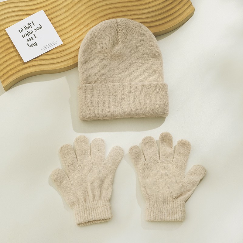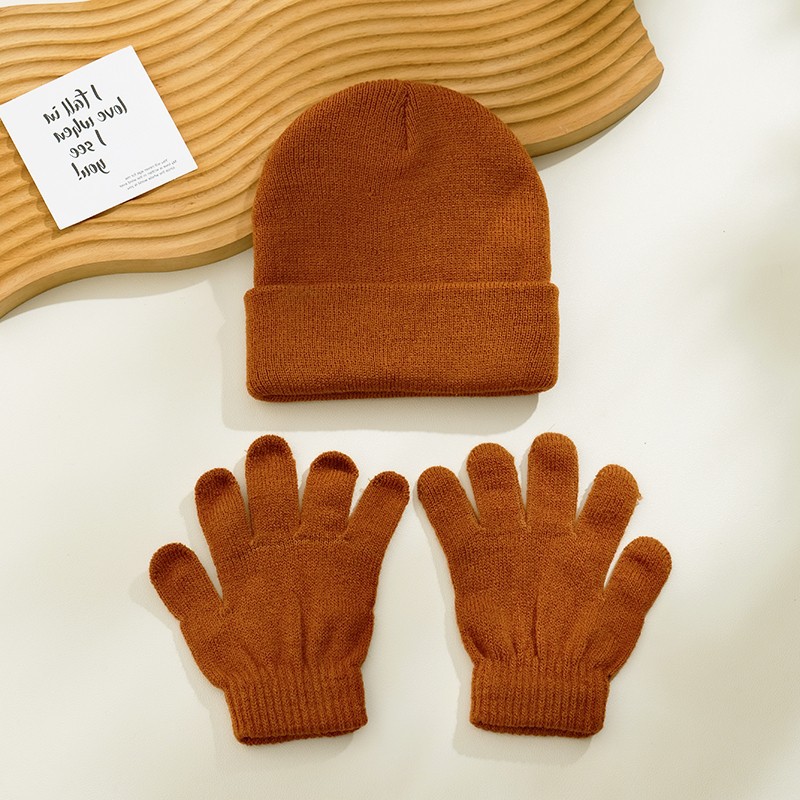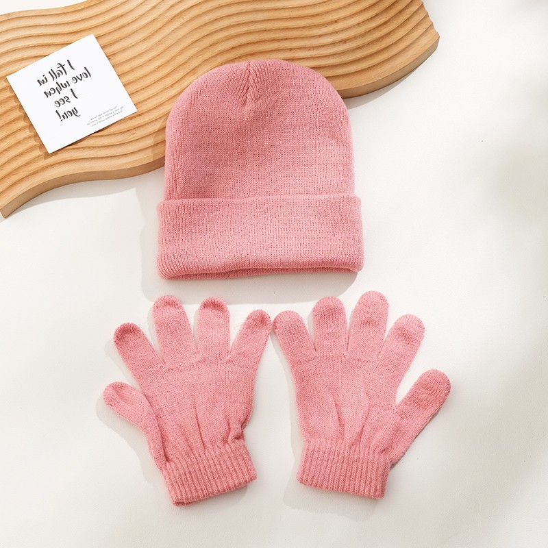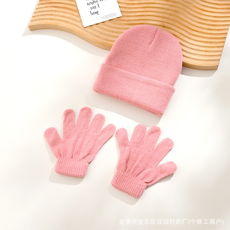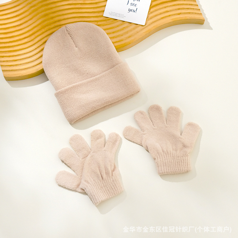 아동용 아크릴 니트 장갑과 모자 2종 세트, 가을 겨울용, 따뜻하고 방한 기능이 있는 어린이용 니트 모자