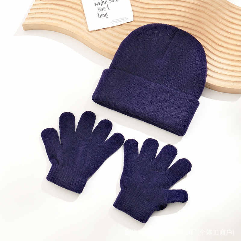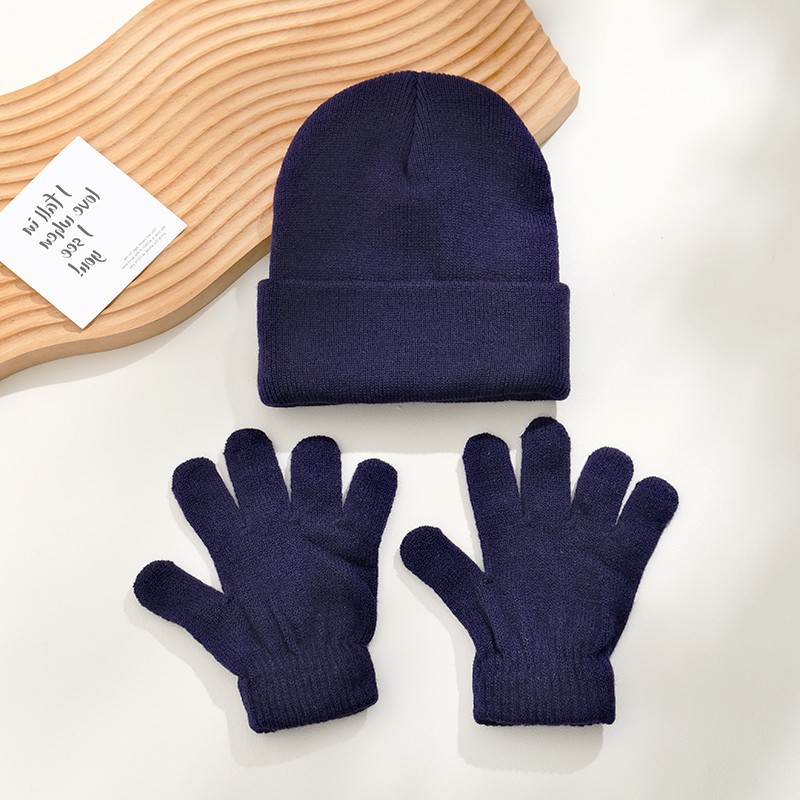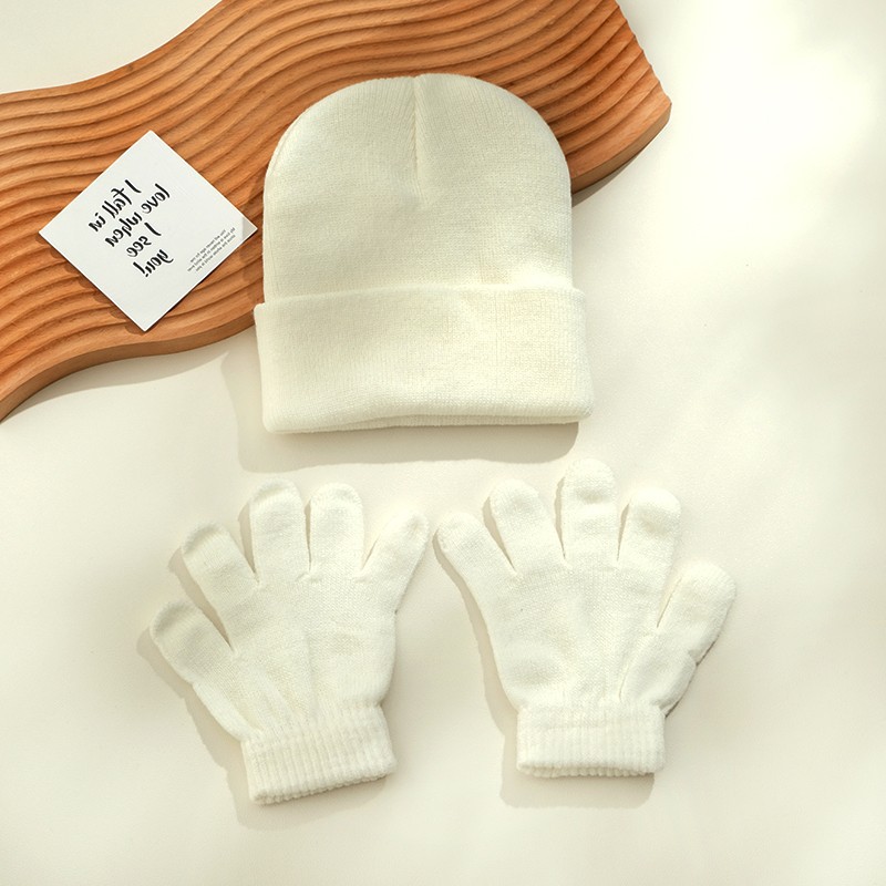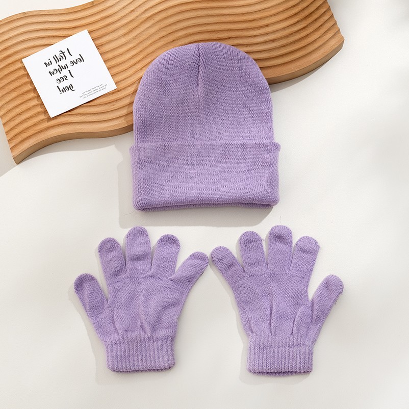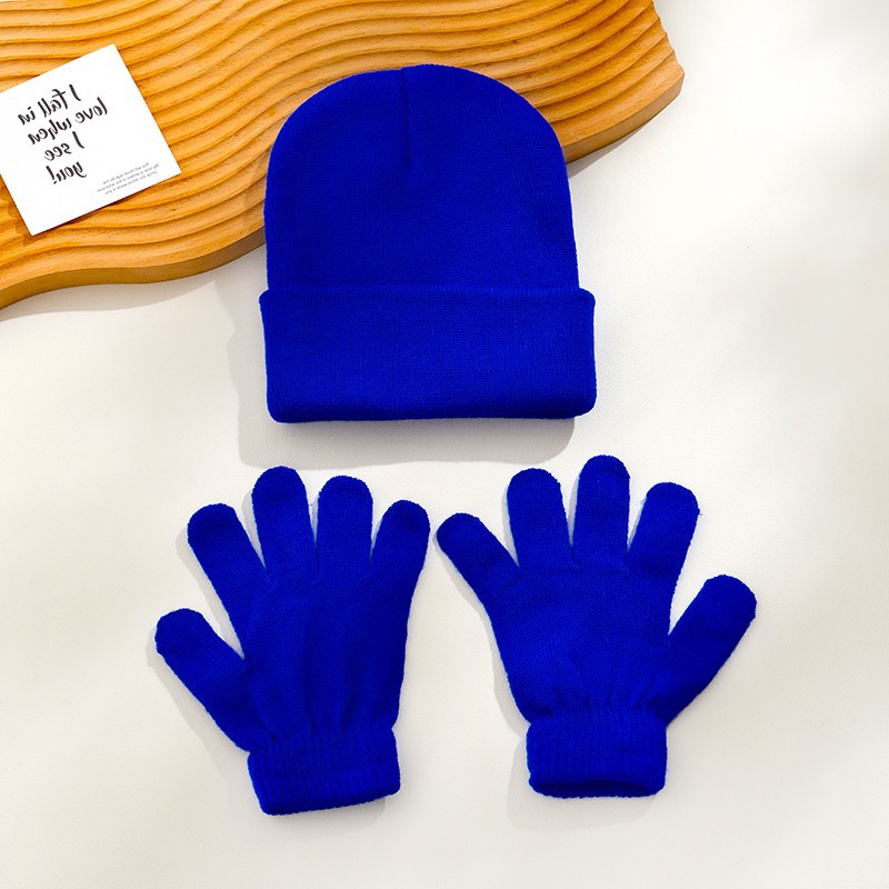 아동용 아크릴 니트 장갑과 모자 2종 세트, 가을 겨울용, 따뜻하고 방한 기능이 있는 어린이용 니트 모자