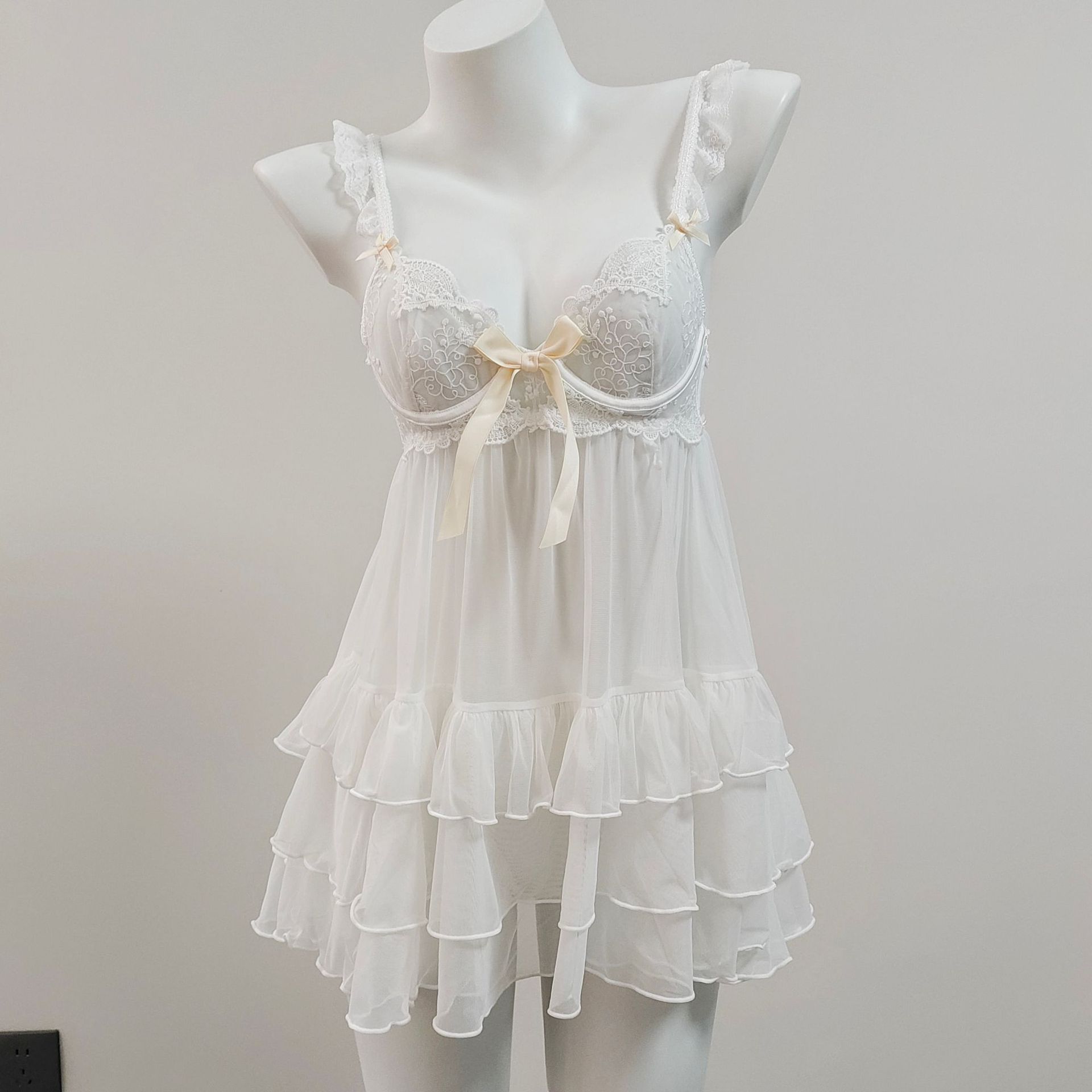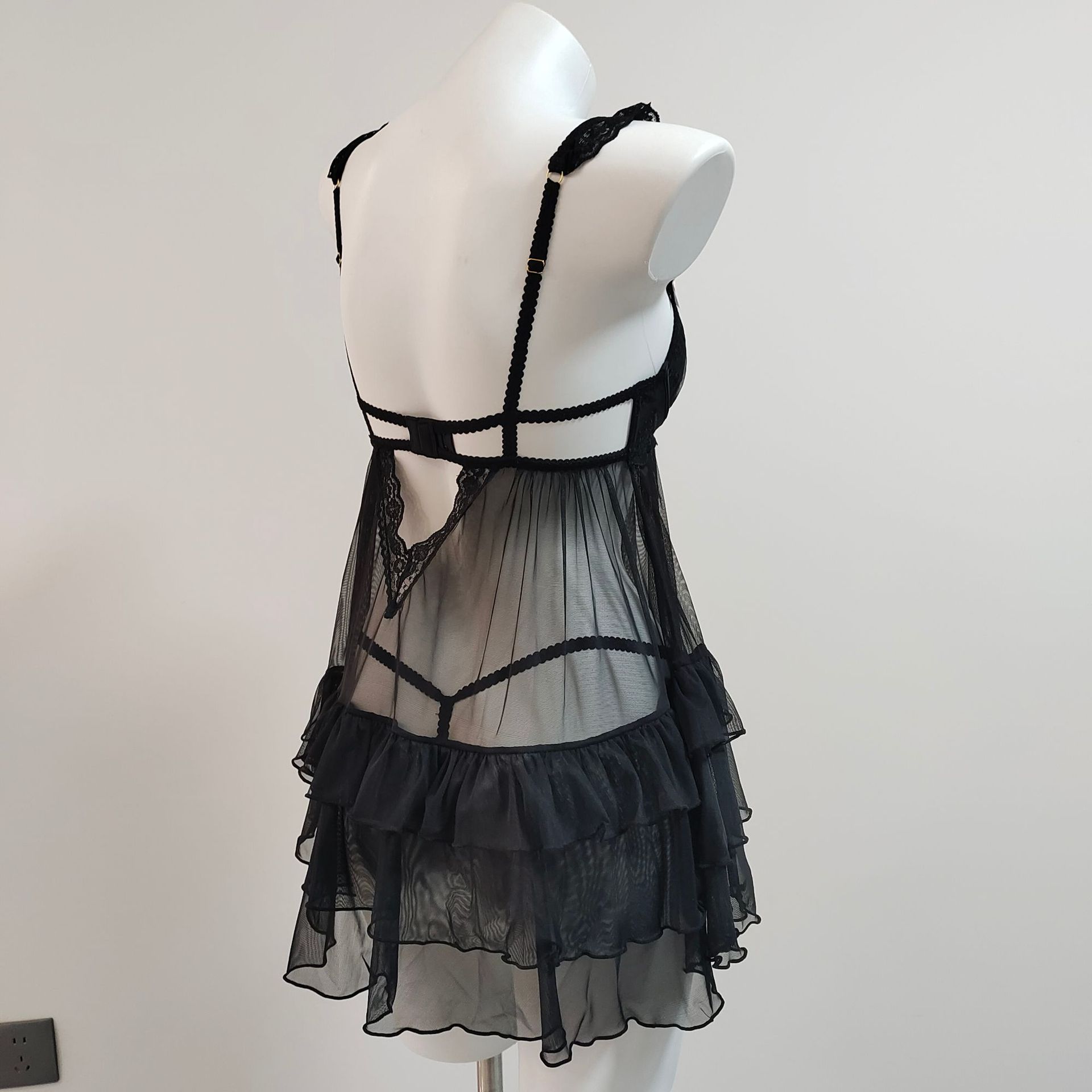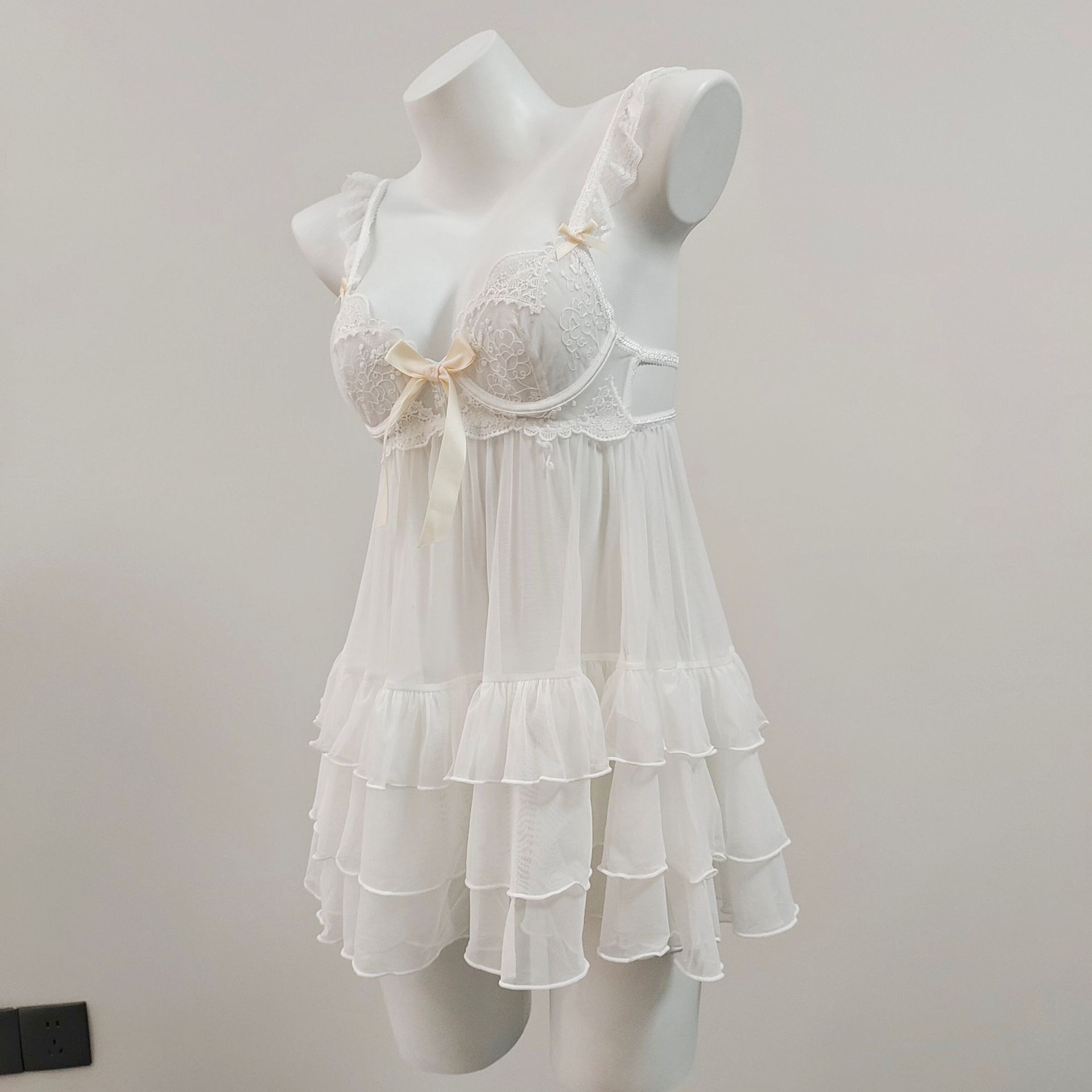 2025 여성을위한 새로운 섹시한 잠옷 여름 작은 유방 레이스 메쉬 중공 유혹 강철 링 얼음 실크 서스펜더 잠옷스토어 가기