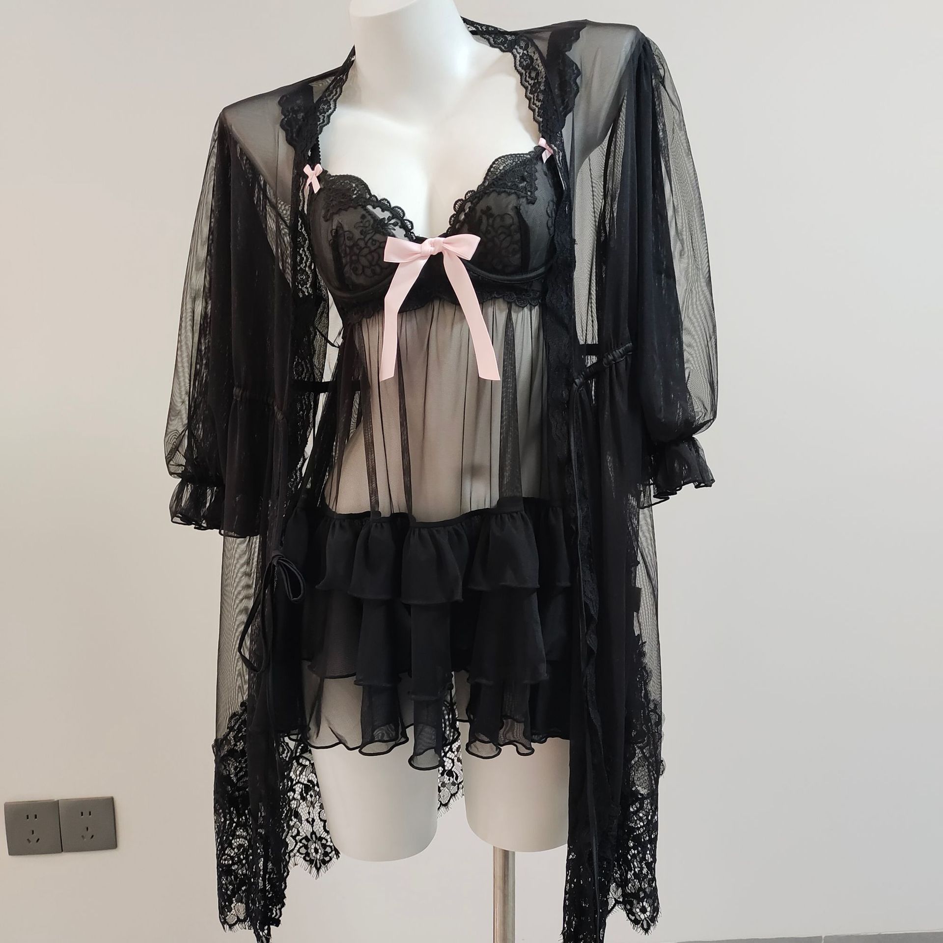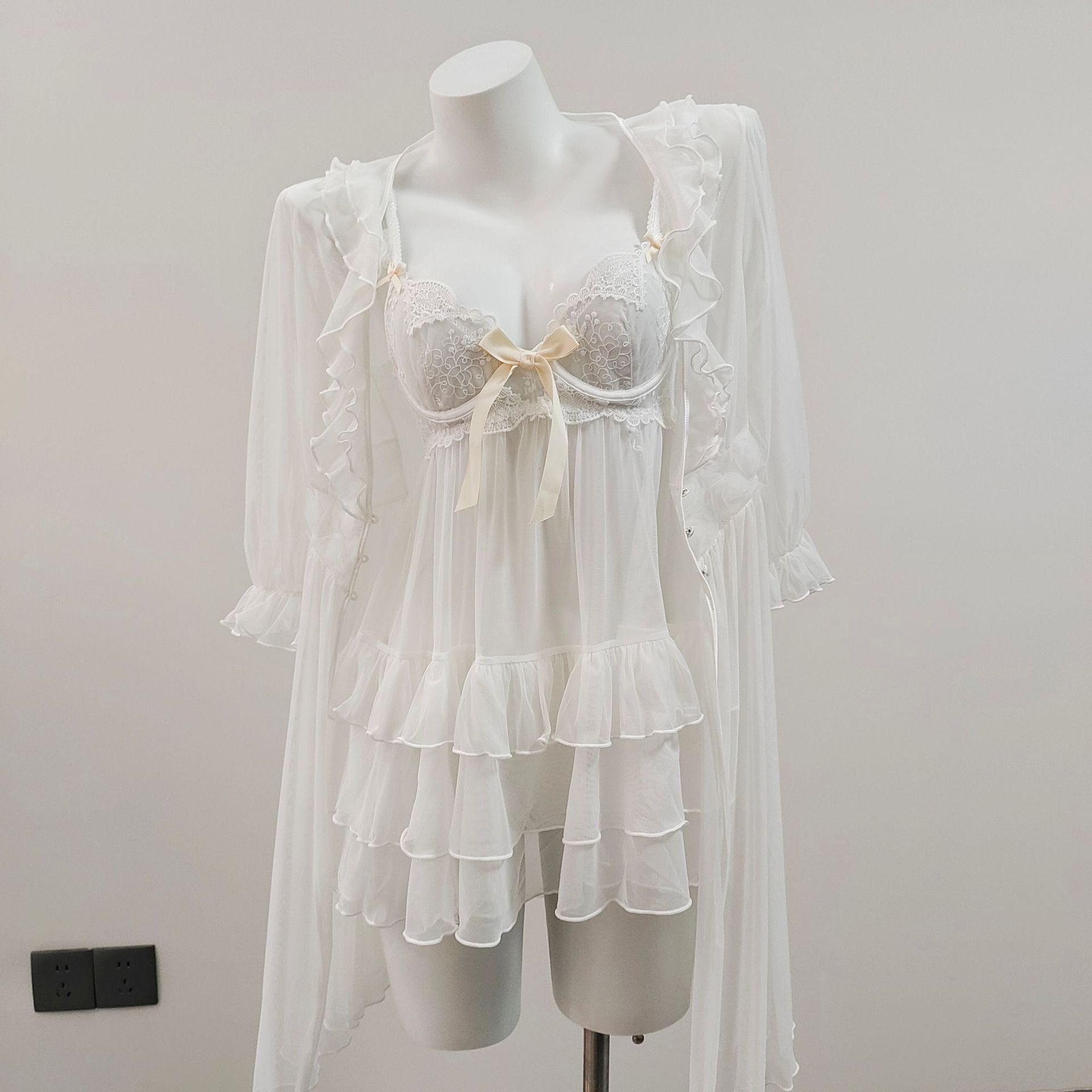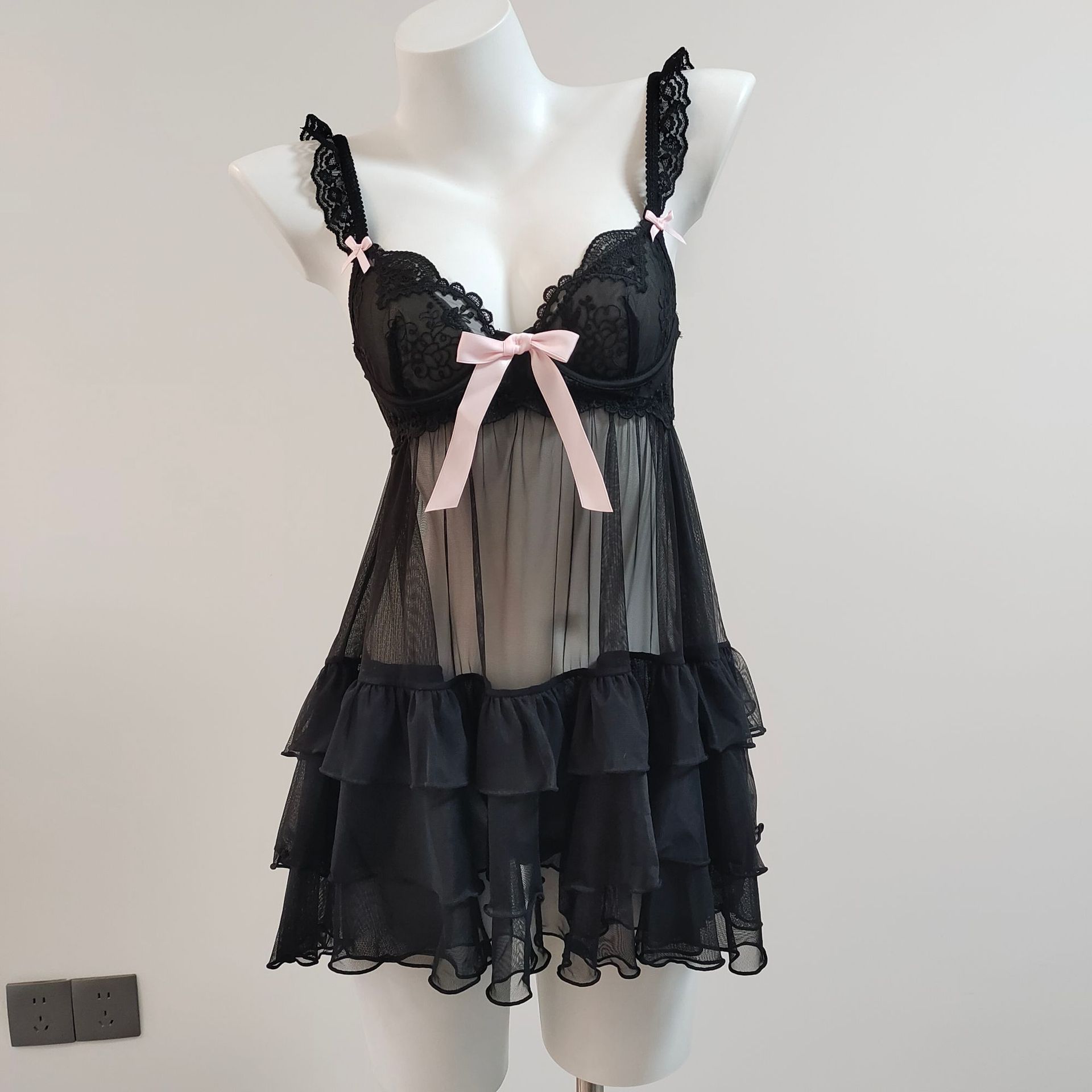 2025 여성을위한 새로운 섹시한 잠옷 여름 작은 유방 레이스 메쉬 중공 유혹 강철 링 얼음 실크 서스펜더 잠옷스토어 가기