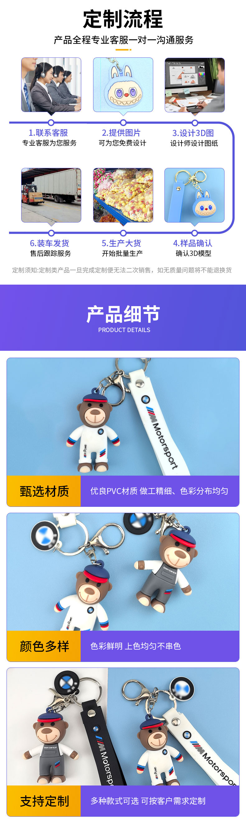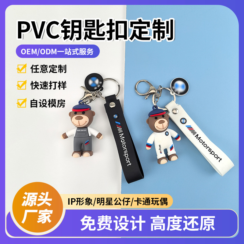 만화 귀여운 BMW 곰 키 체인 PVC 인형 키 체인 펜던트 자동차 키 장식 선물 사용자 정의