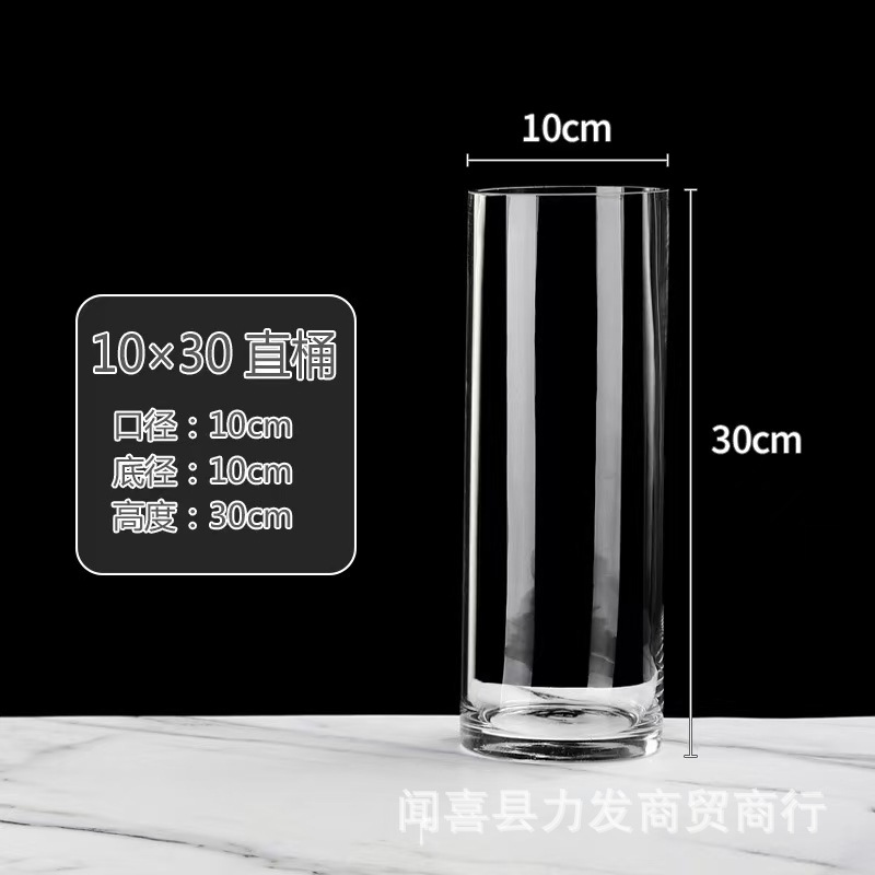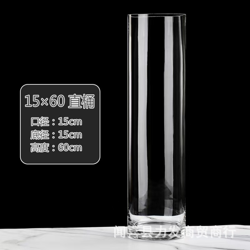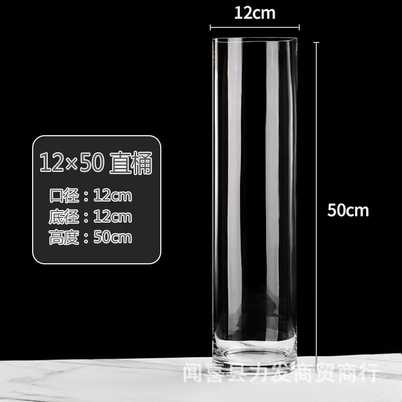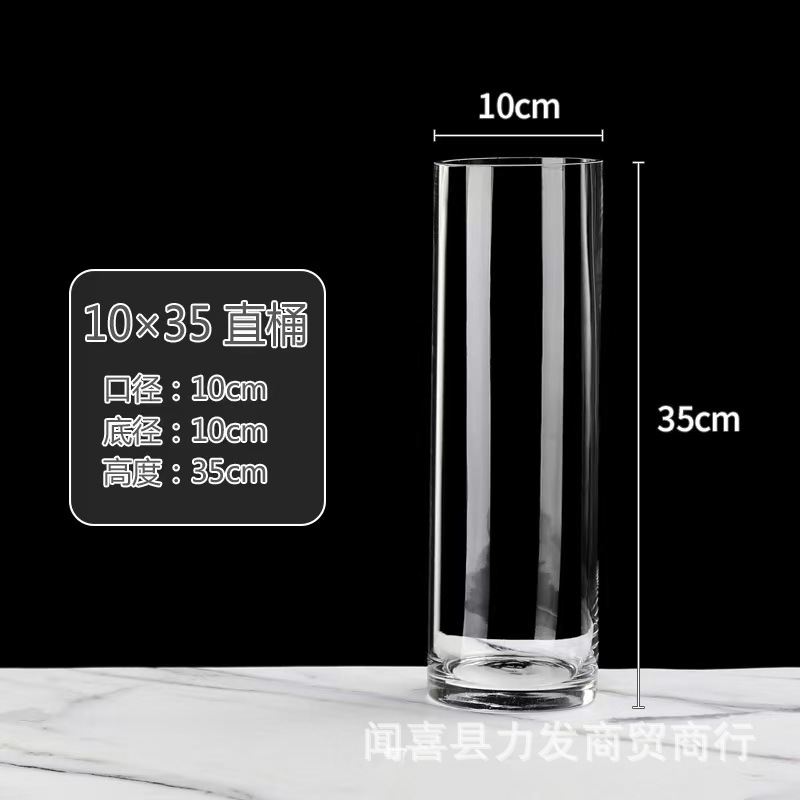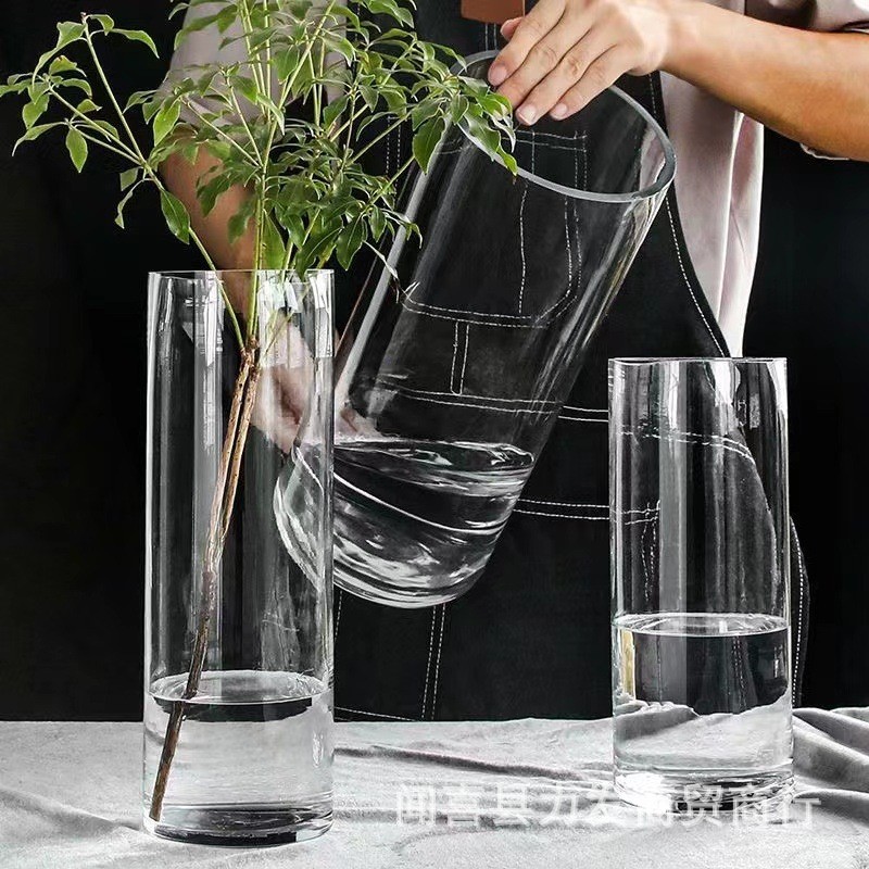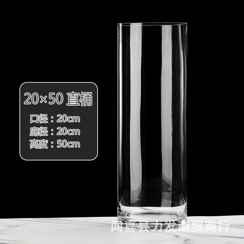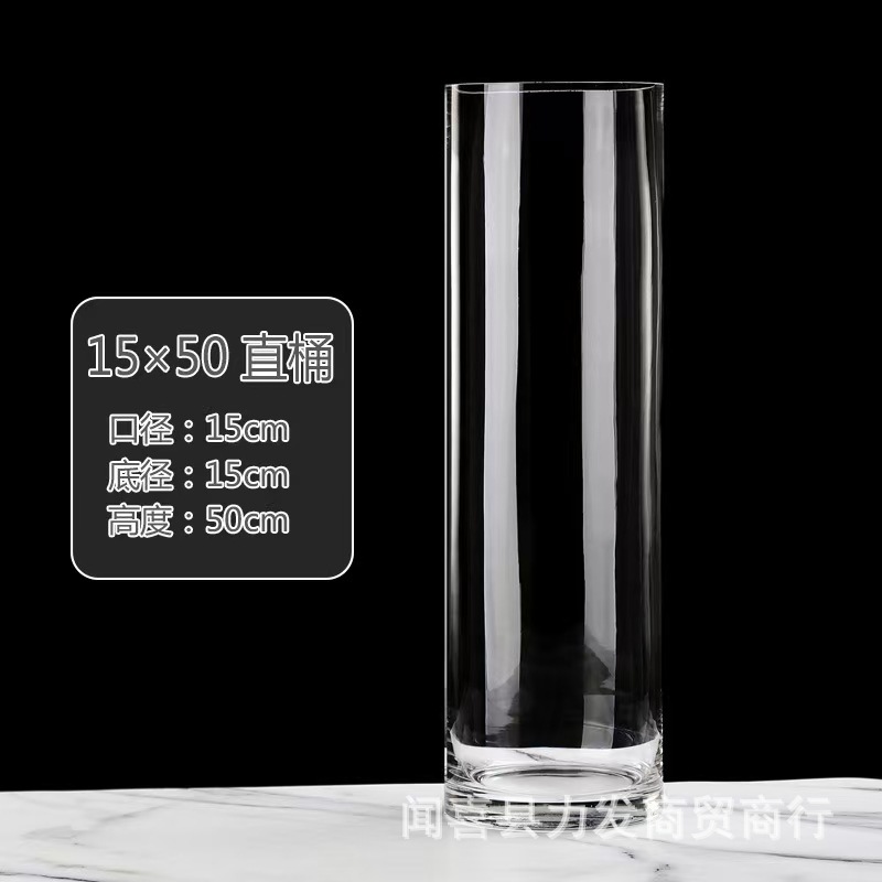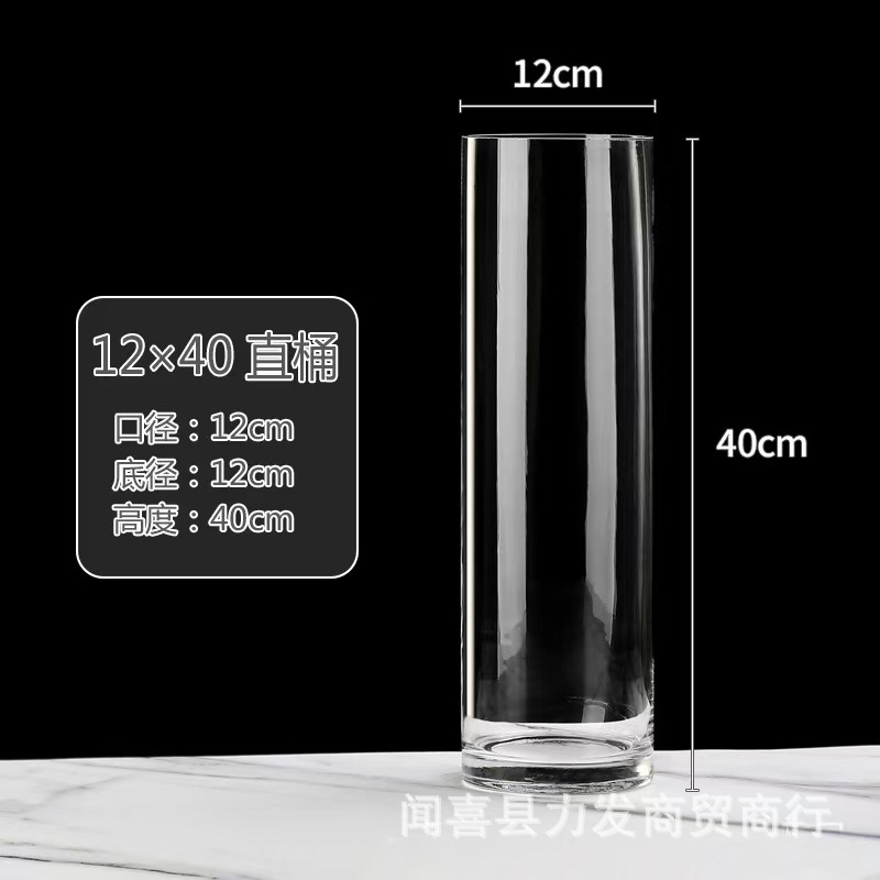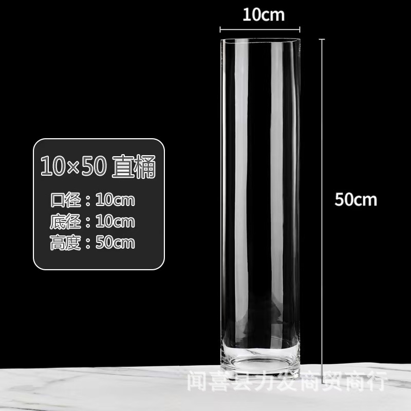 공장 직배송 대형 고급 백색 소재 직선 유리 꽃병 바닥 두꺼운 말마초 꽃꽂이 수경 식물 장식품스토어 가기