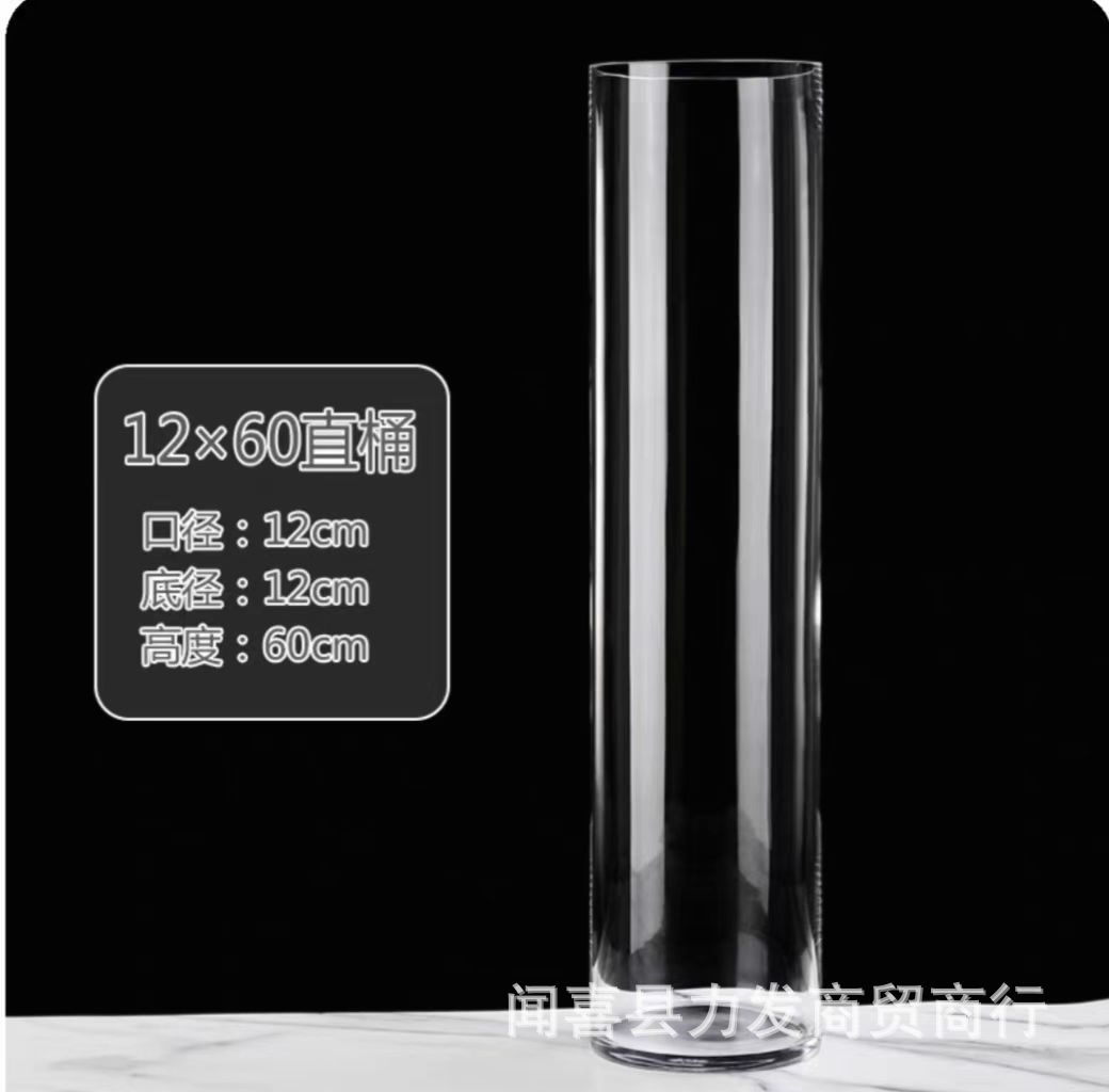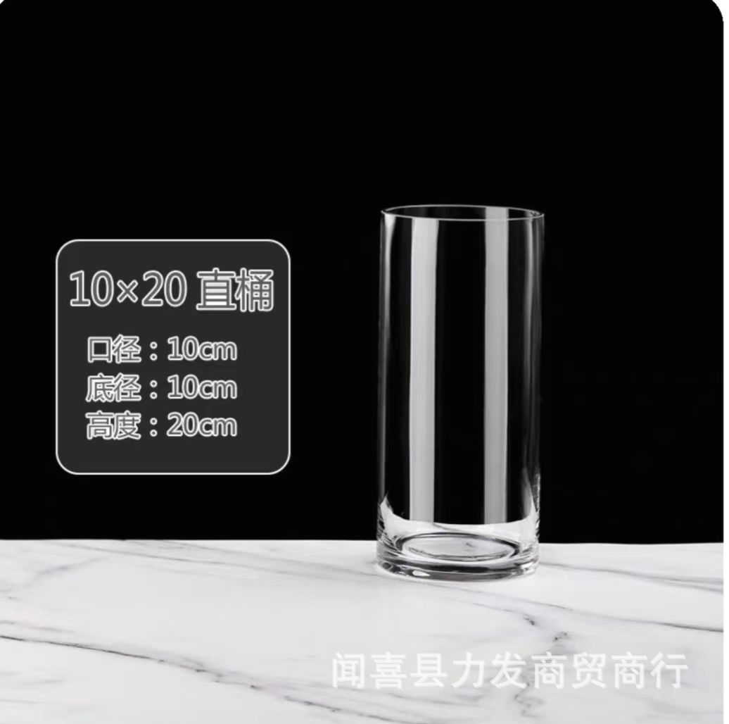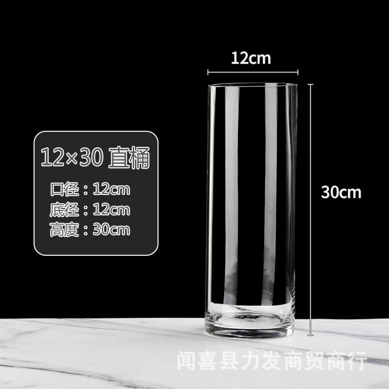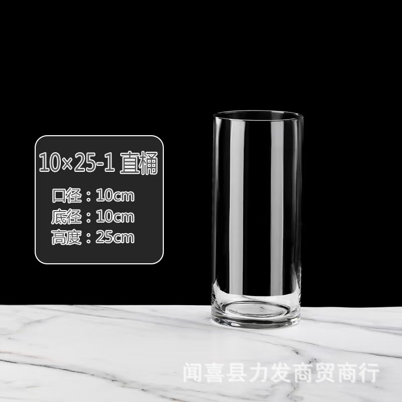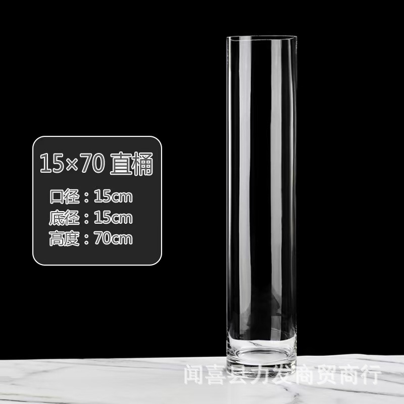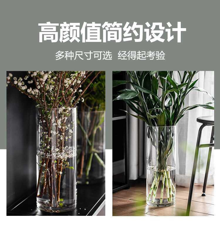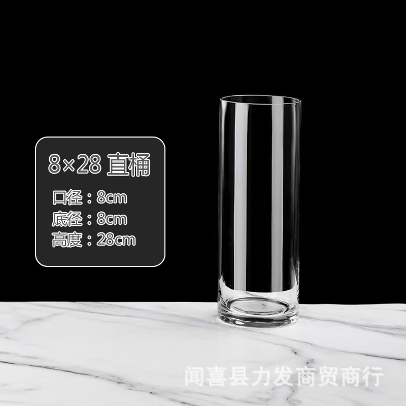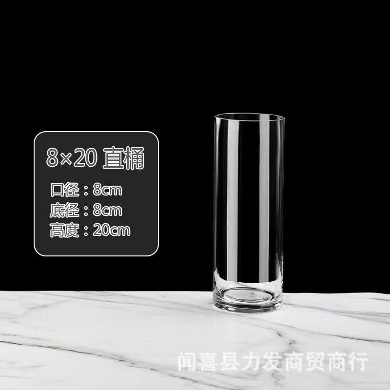 공장 직배송 대형 고급 백색 소재 직선 유리 꽃병 바닥 두꺼운 말마초 꽃꽂이 수경 식물 장식품스토어 가기