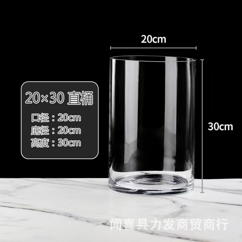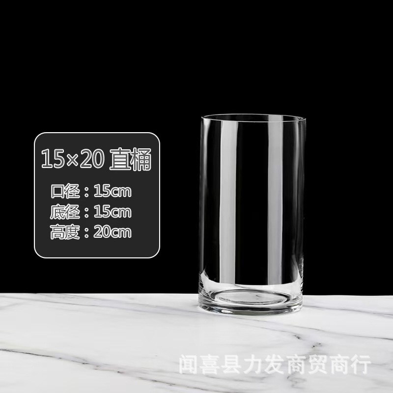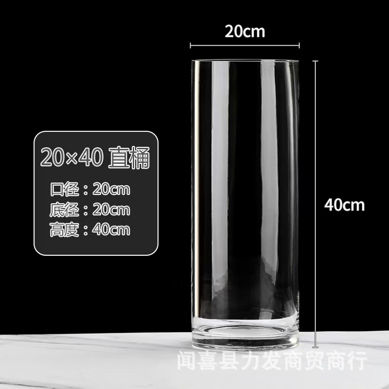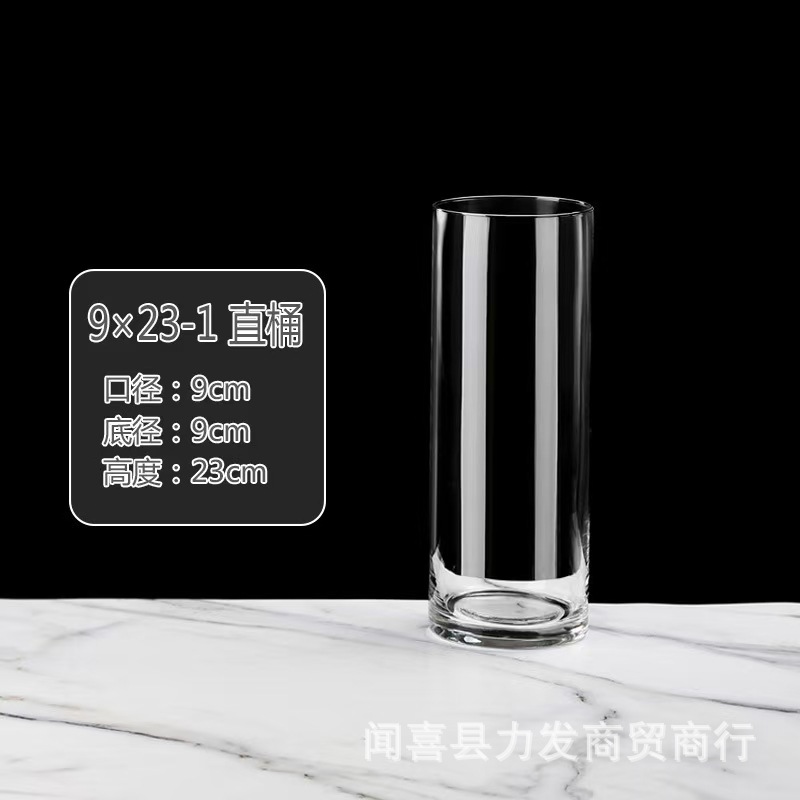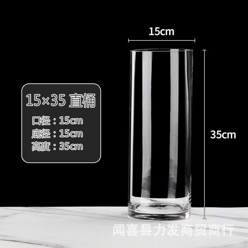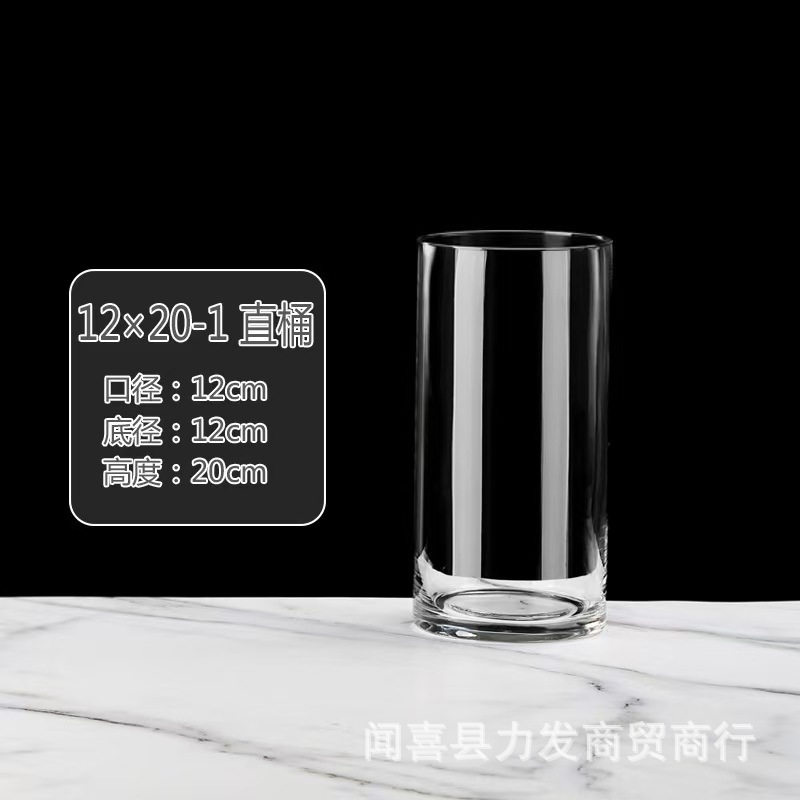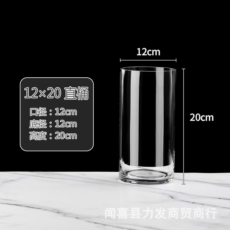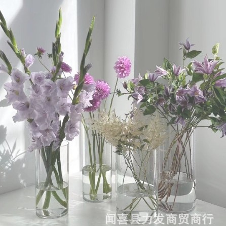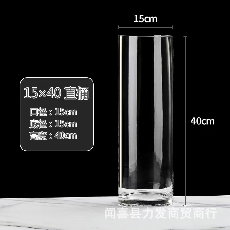 공장 직배송 대형 고급 백색 소재 직선 유리 꽃병 바닥 두꺼운 말마초 꽃꽂이 수경 식물 장식품스토어 가기