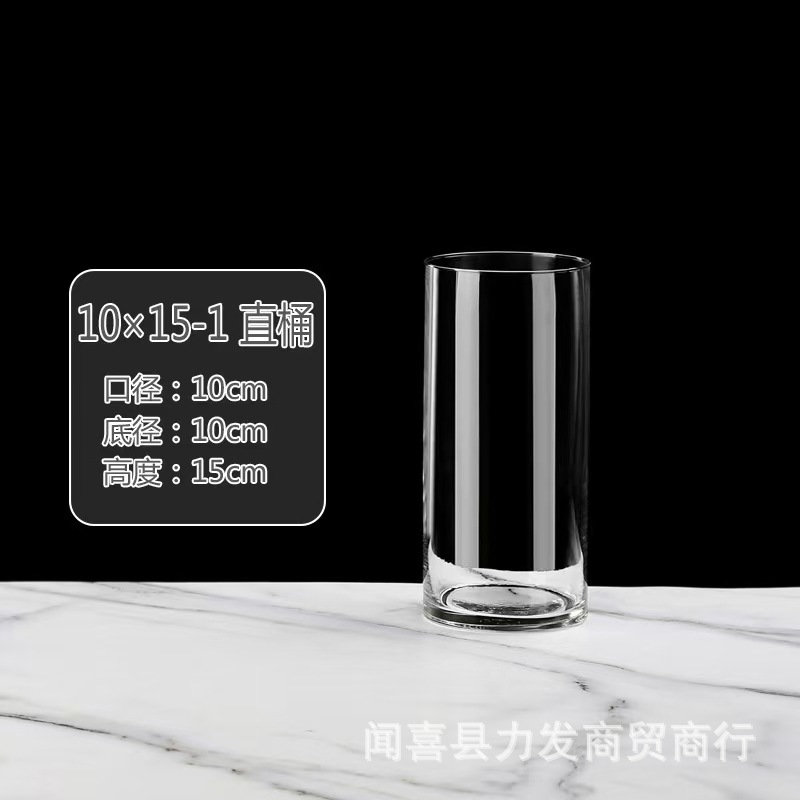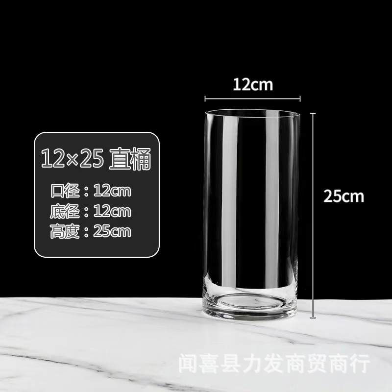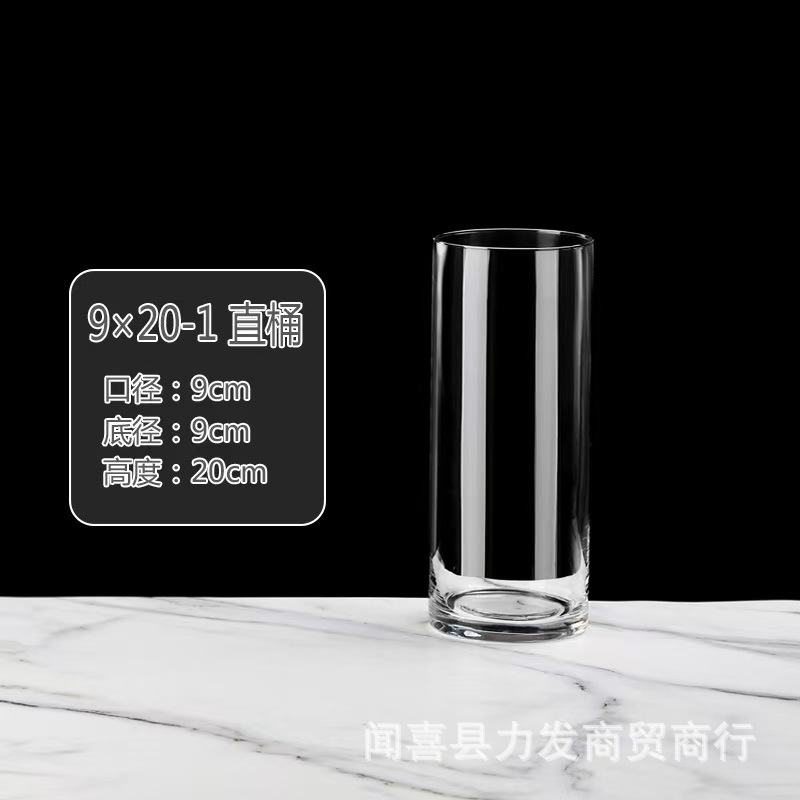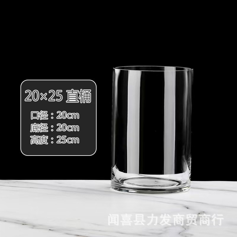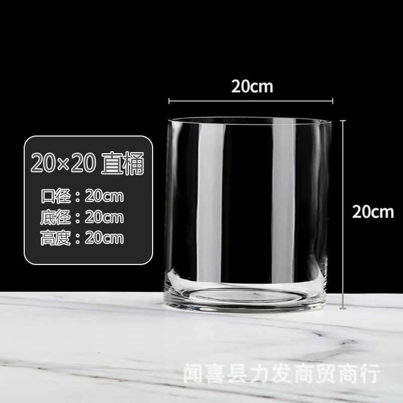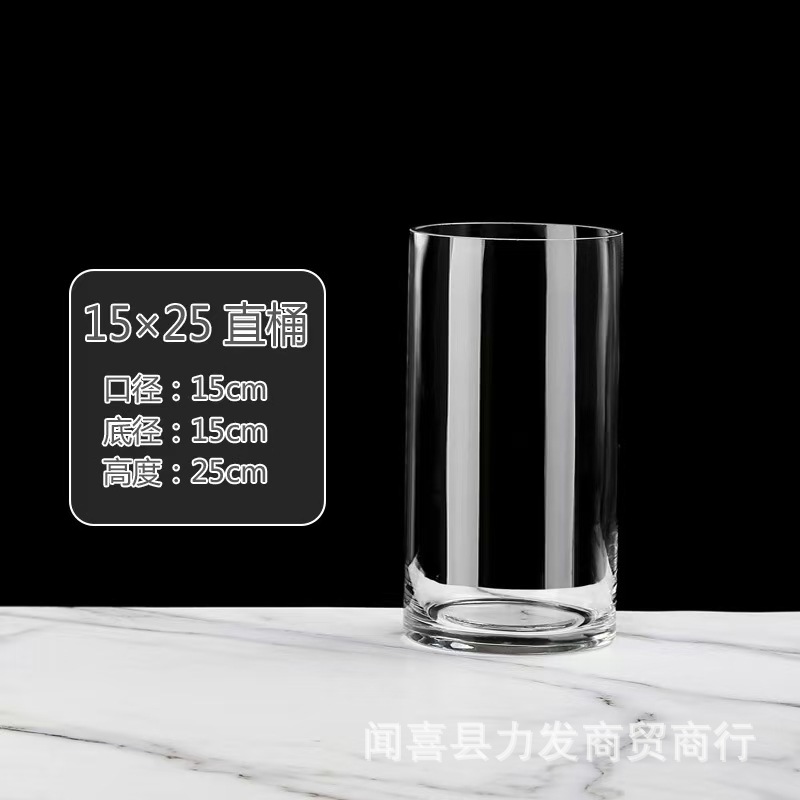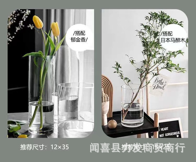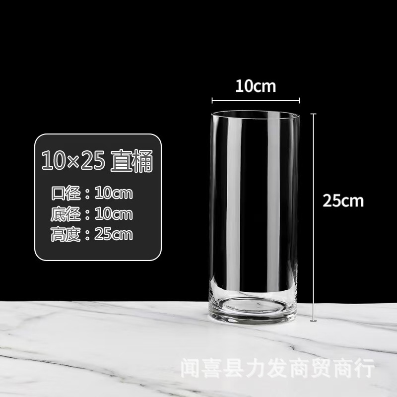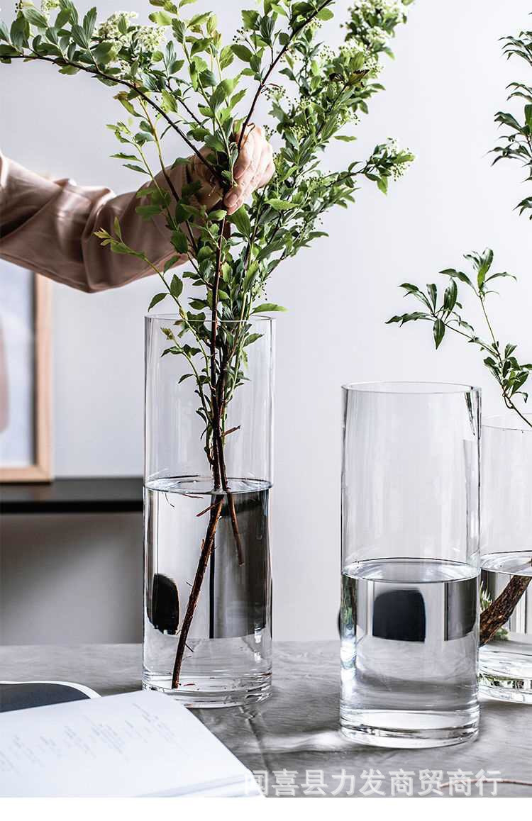 공장 직배송 대형 고급 백색 소재 직선 유리 꽃병 바닥 두꺼운 말마초 꽃꽂이 수경 식물 장식품스토어 가기