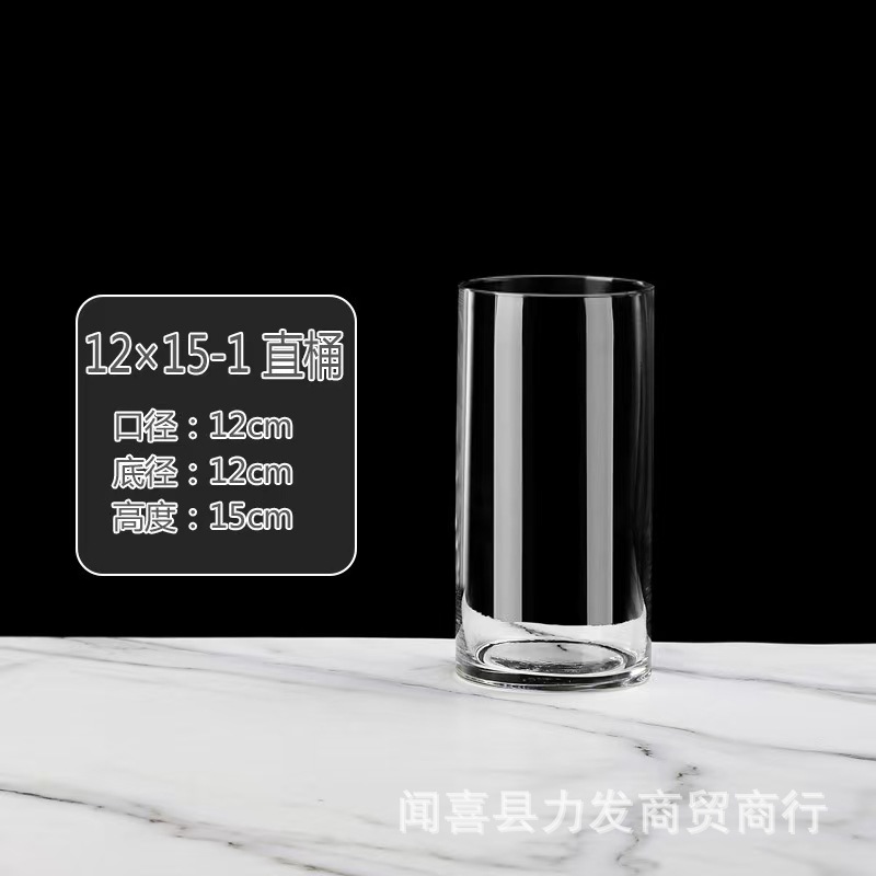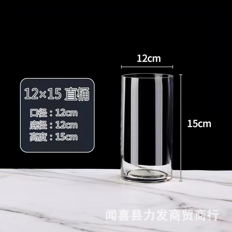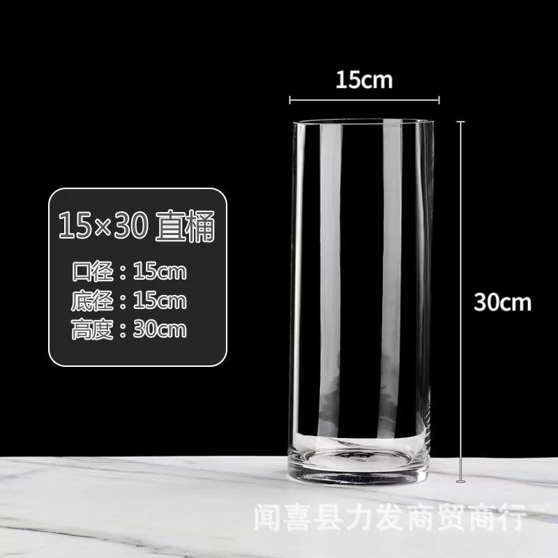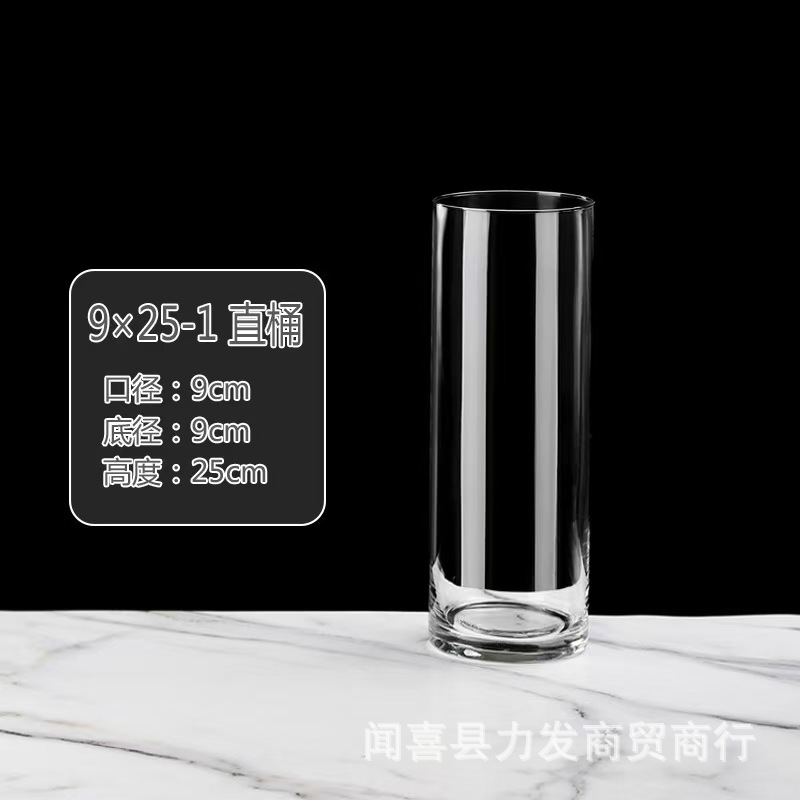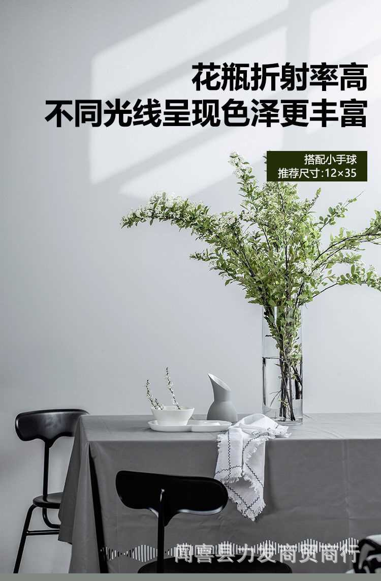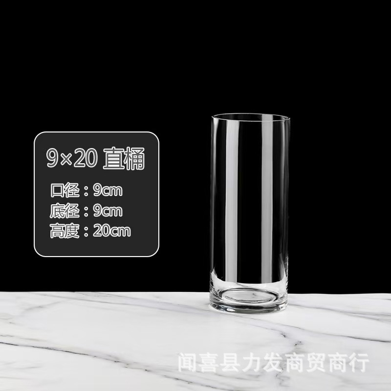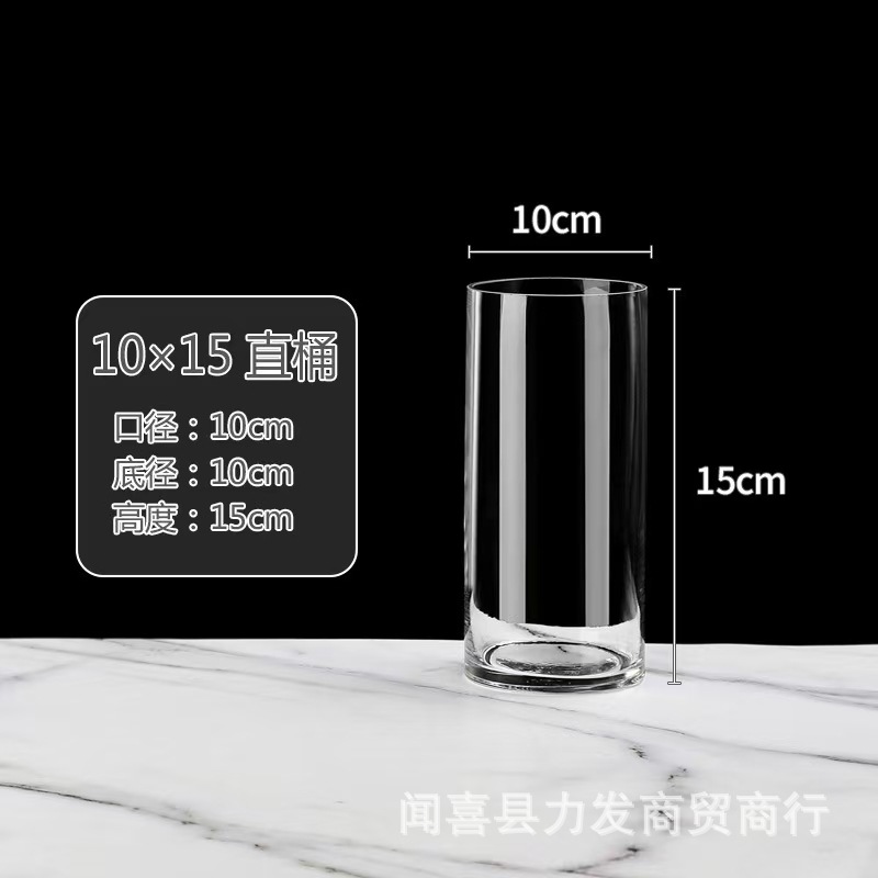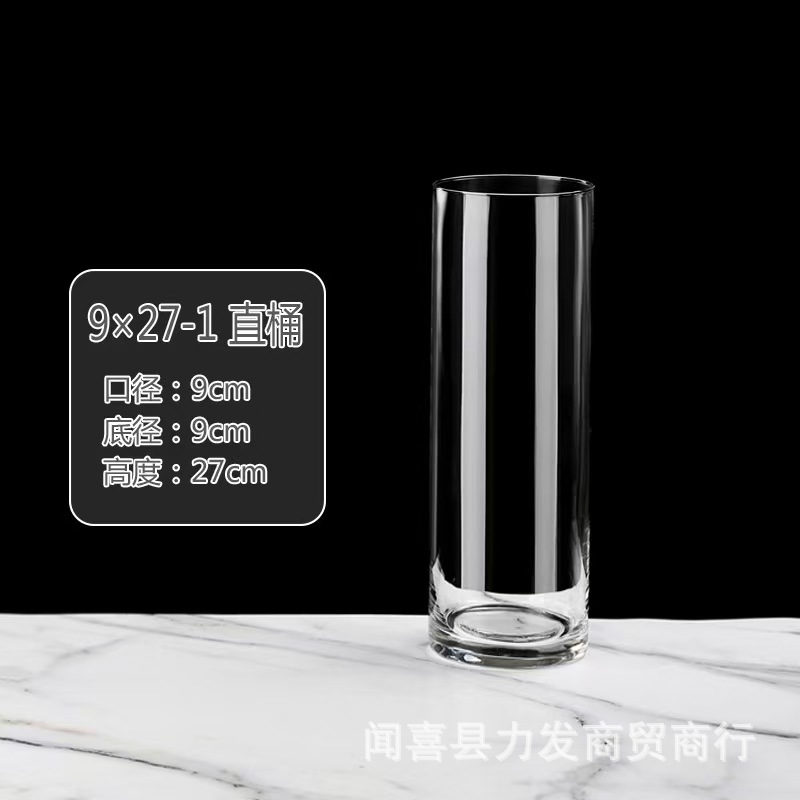 공장 직배송 대형 고급 백색 소재 직선 유리 꽃병 바닥 두꺼운 말마초 꽃꽂이 수경 식물 장식품스토어 가기