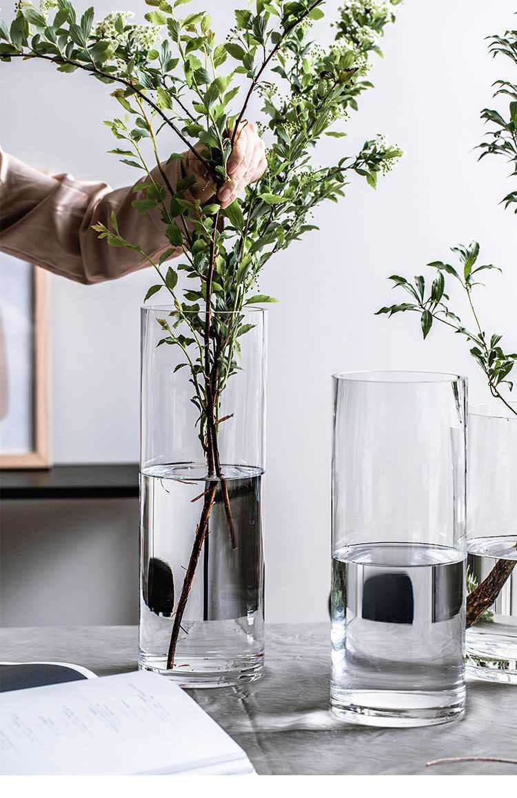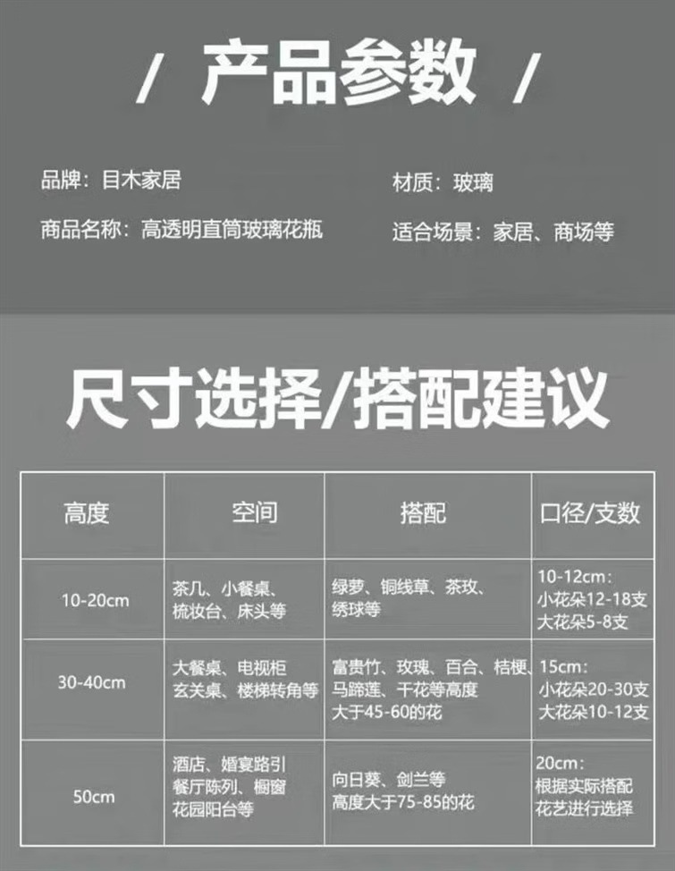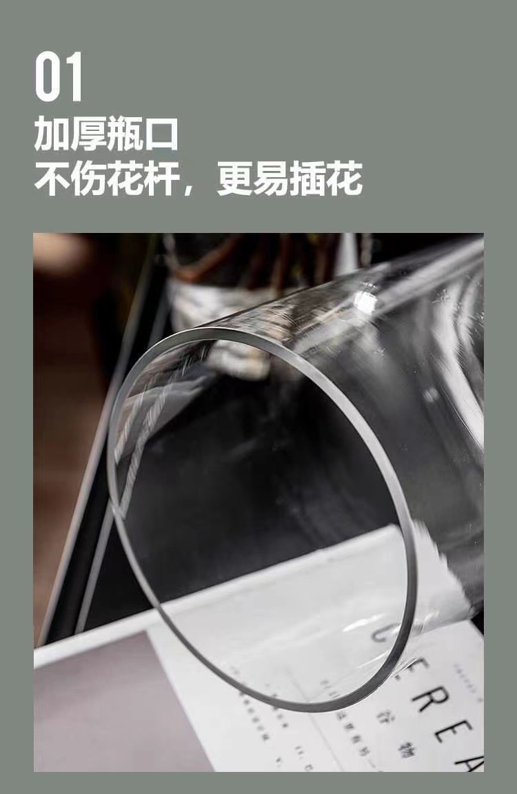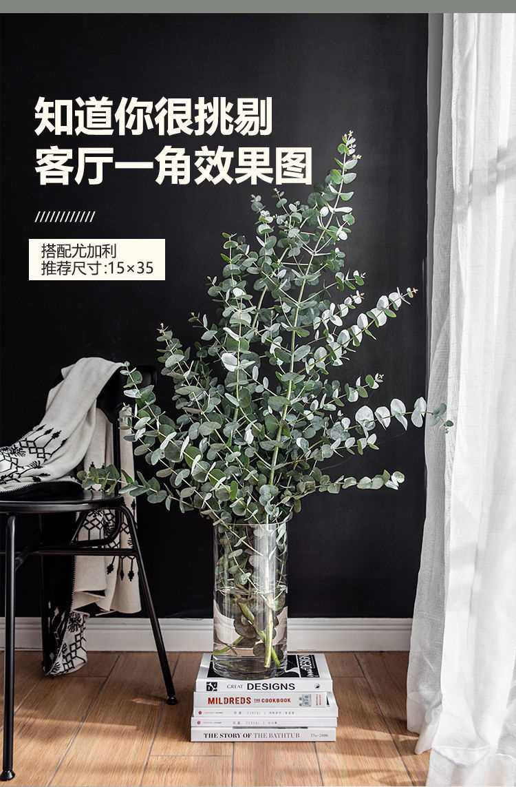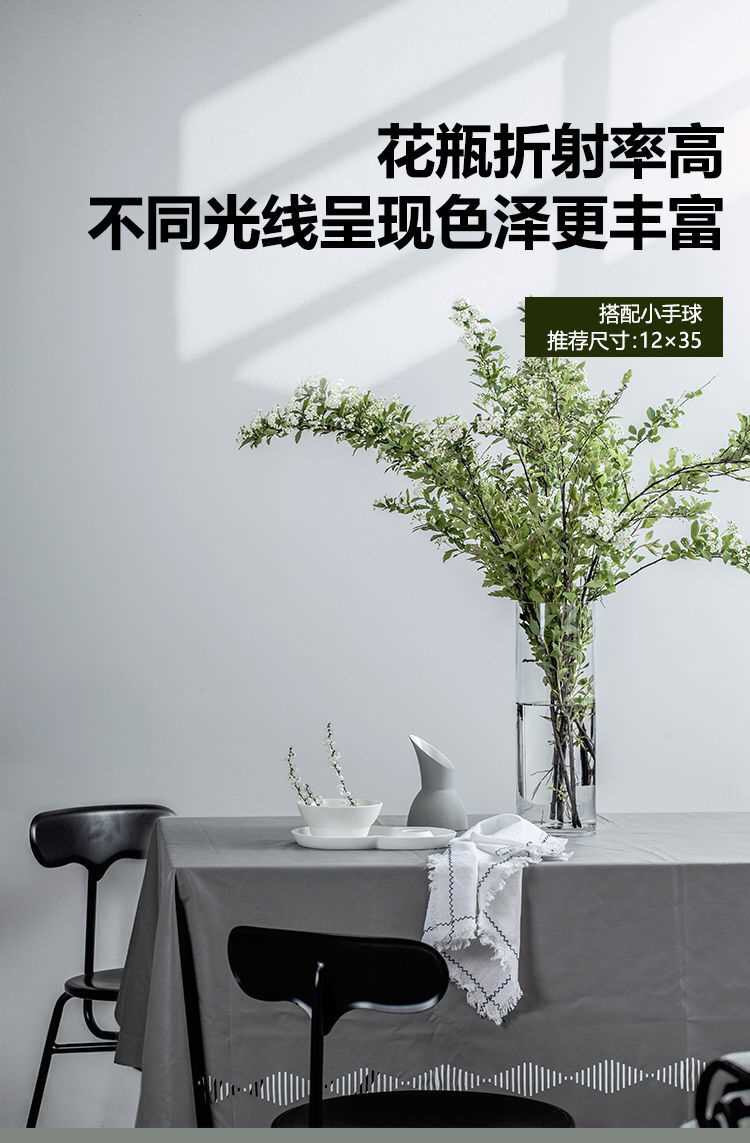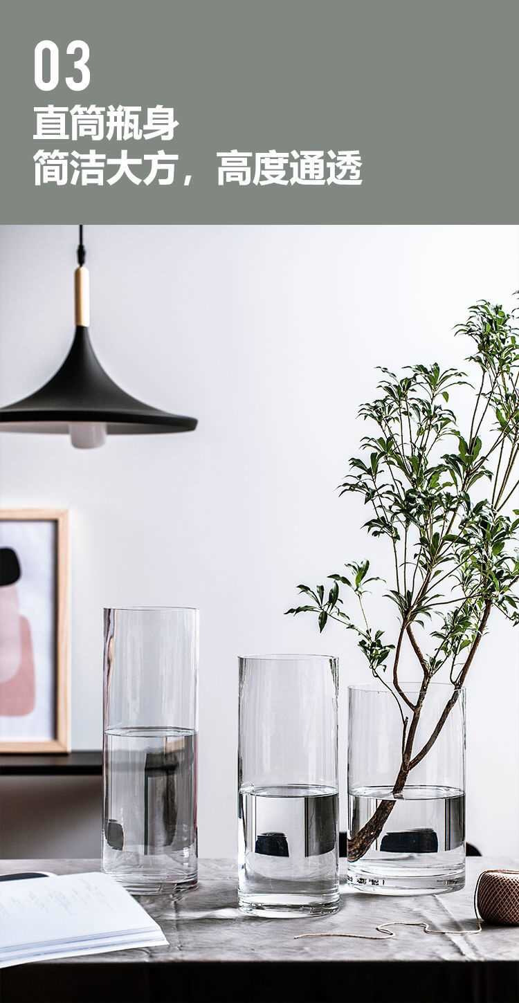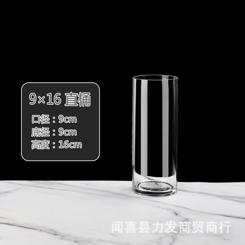 공장 직배송 대형 고급 백색 소재 직선 유리 꽃병 바닥 두꺼운 말마초 꽃꽂이 수경 식물 장식품스토어 가기