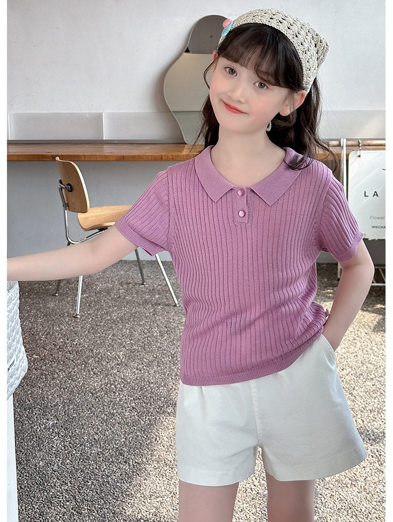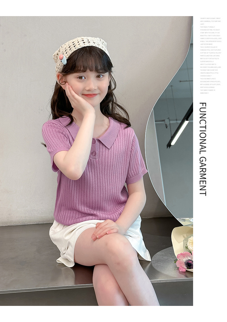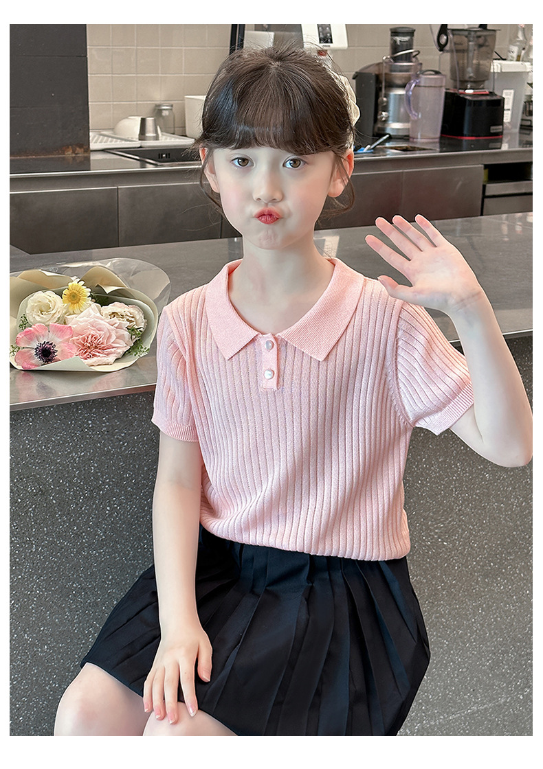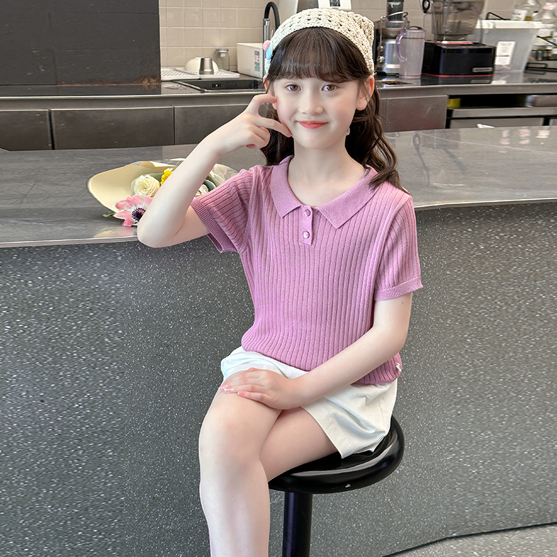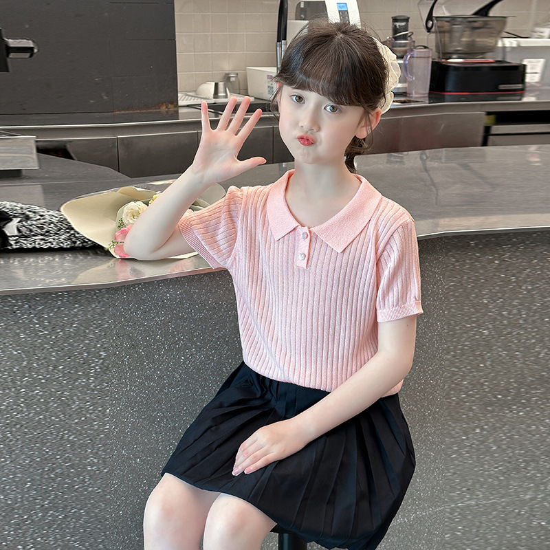 새로운 폴로 셔츠 니트 아이스 실크 슬림 피트 틈새 독특한 오른쪽 어깨 반팔 티셔츠 소녀 여름 짧은 탑스토어 가기