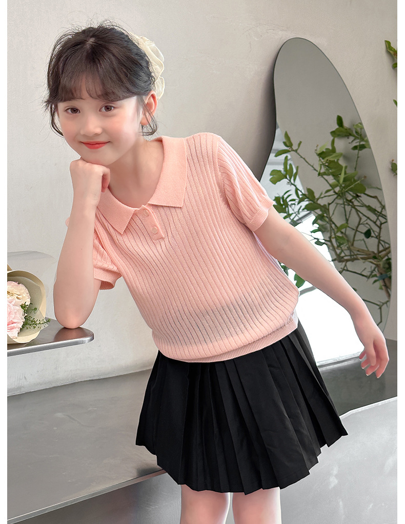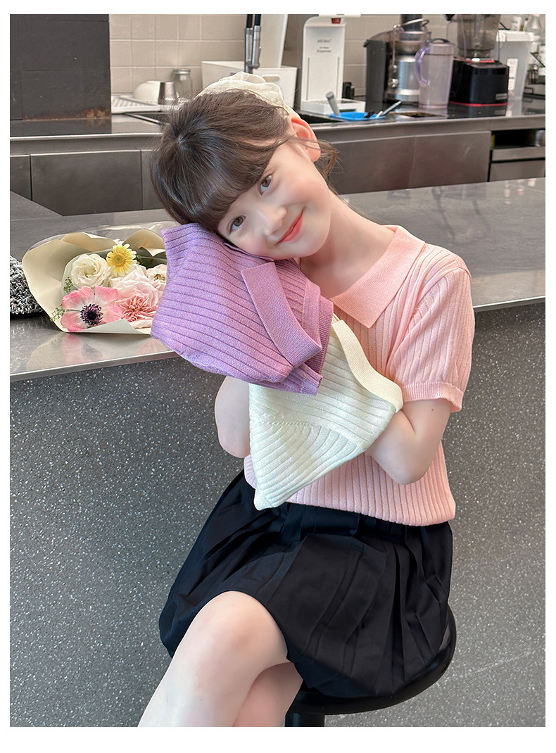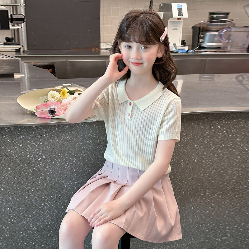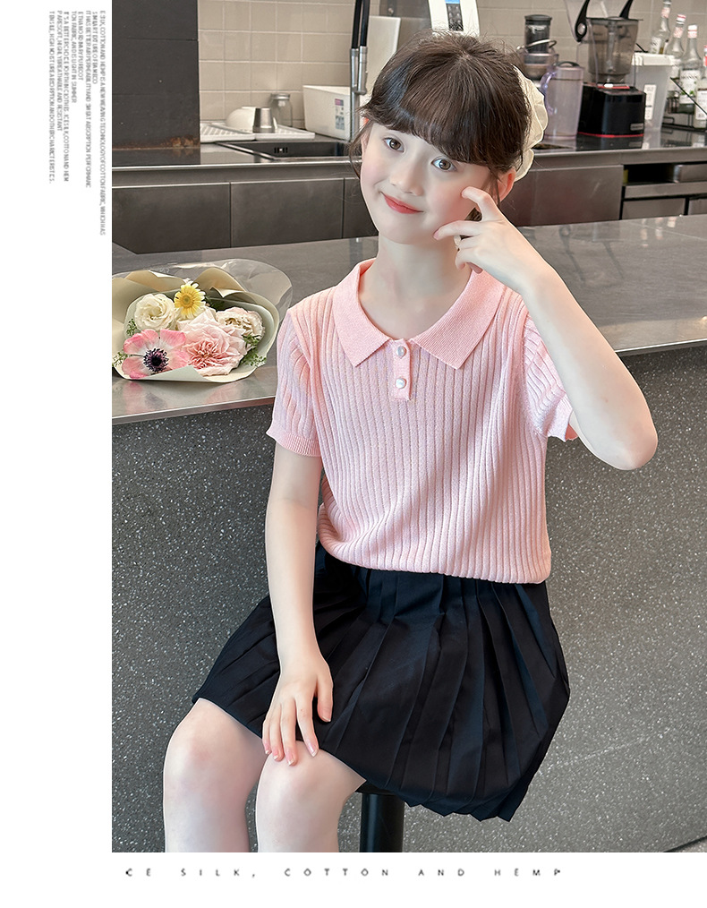 새로운 폴로 셔츠 니트 아이스 실크 슬림 피트 틈새 독특한 오른쪽 어깨 반팔 티셔츠 소녀 여름 짧은 탑스토어 가기