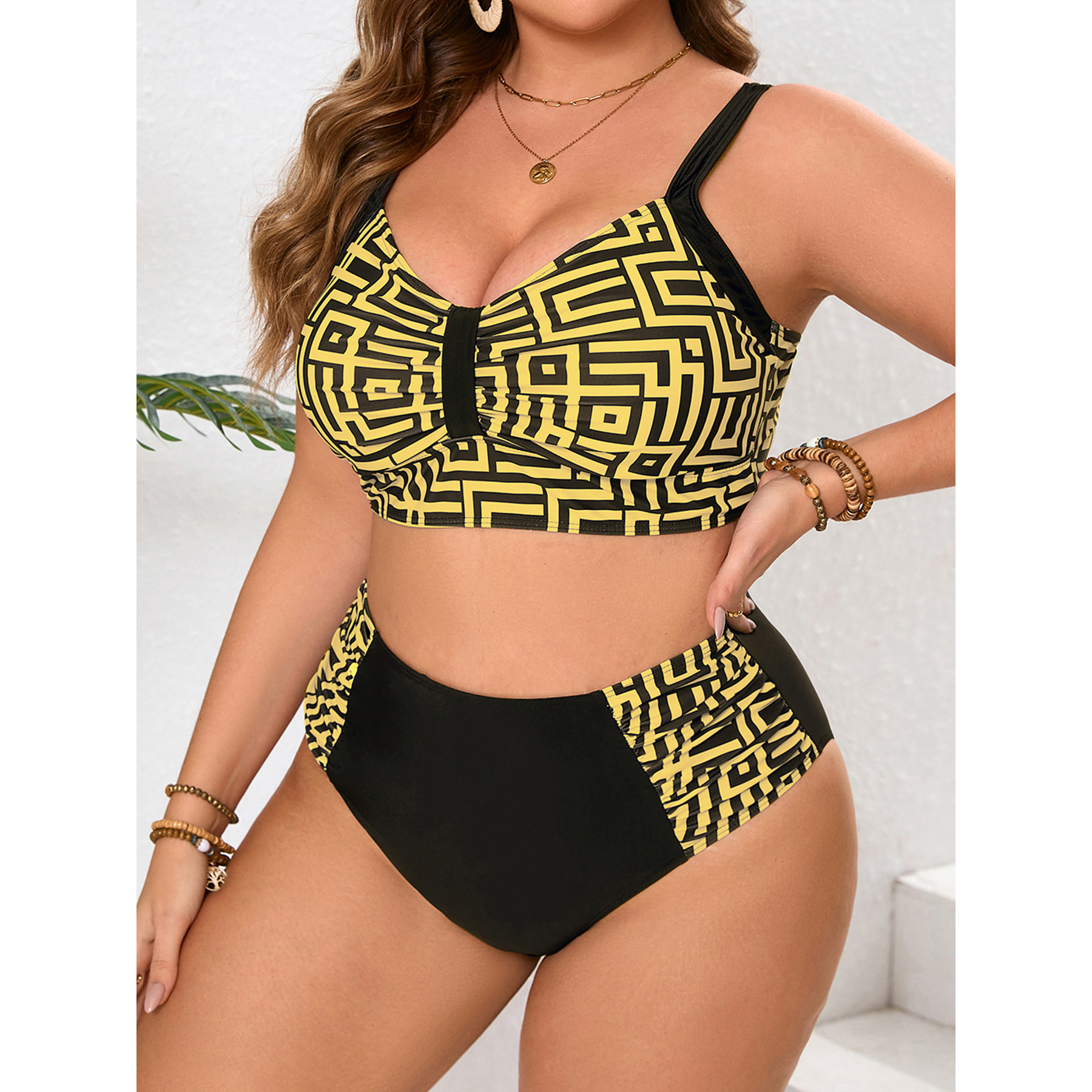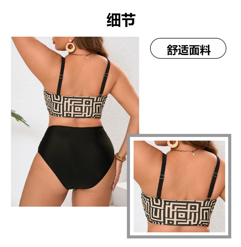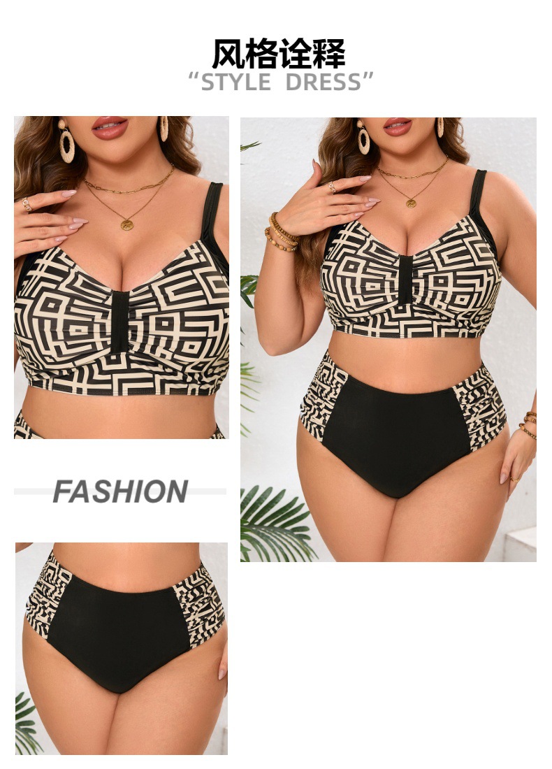 유럽 및 미국 크로스보더 플러스 사이즈 여성용 수영복, 하이웨이스트 비키니, 스틸 브라, 푸쉬업, 분리형 수영복, 뚱뚱한 여성용 배 가리기, 슬림 효과 수영복
