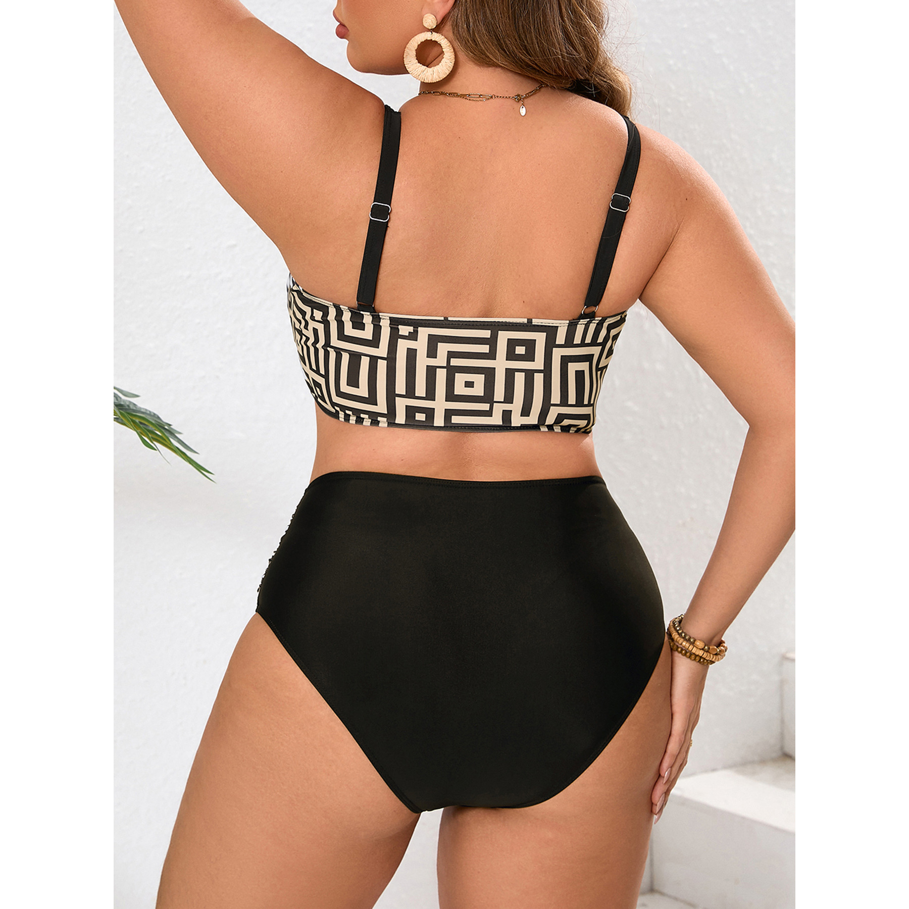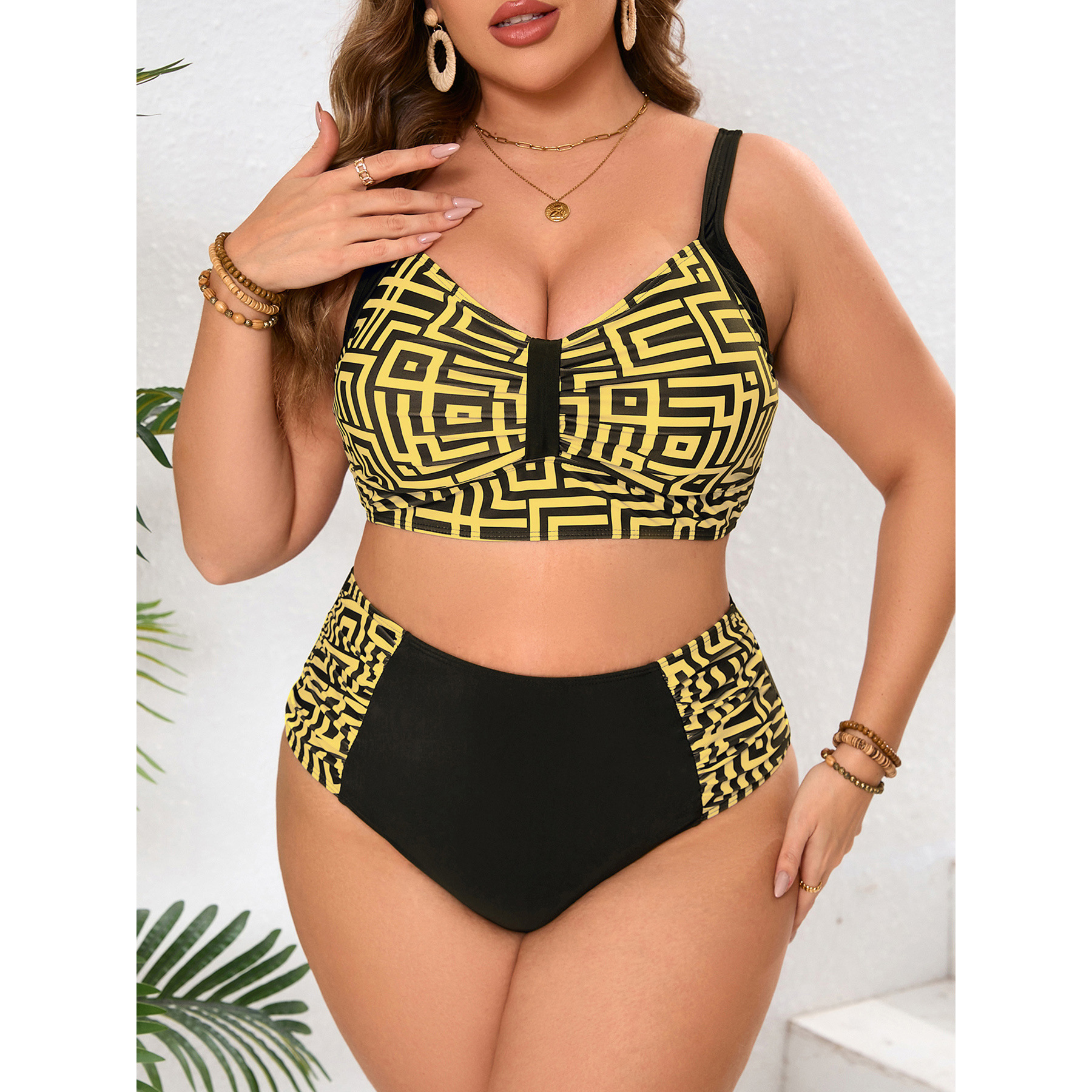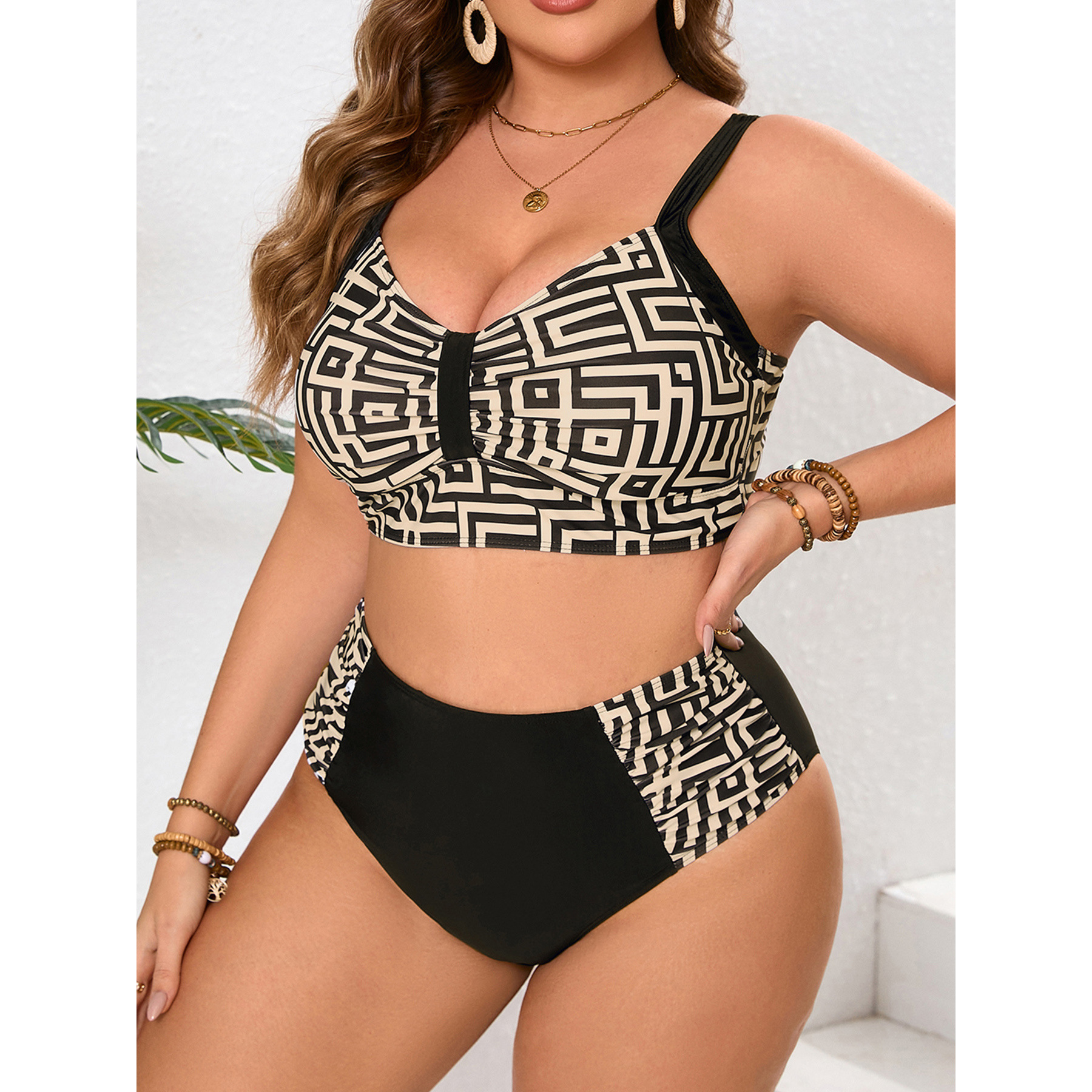 유럽 및 미국 크로스보더 플러스 사이즈 여성용 수영복, 하이웨이스트 비키니, 스틸 브라, 푸쉬업, 분리형 수영복, 뚱뚱한 여성용 배 가리기, 슬림 효과 수영복