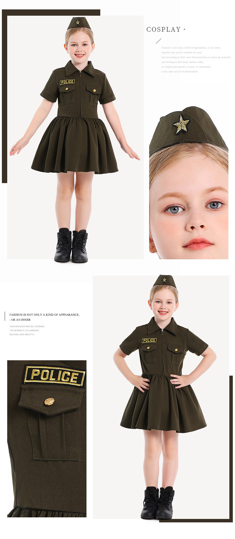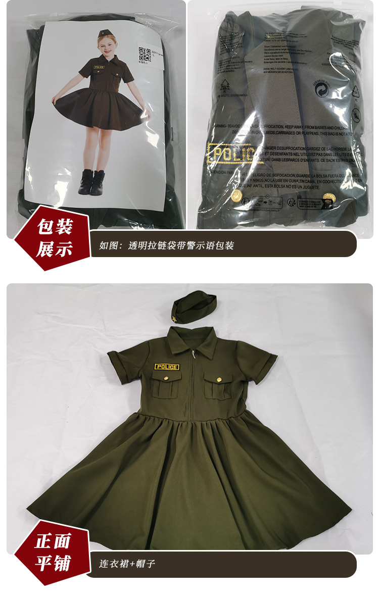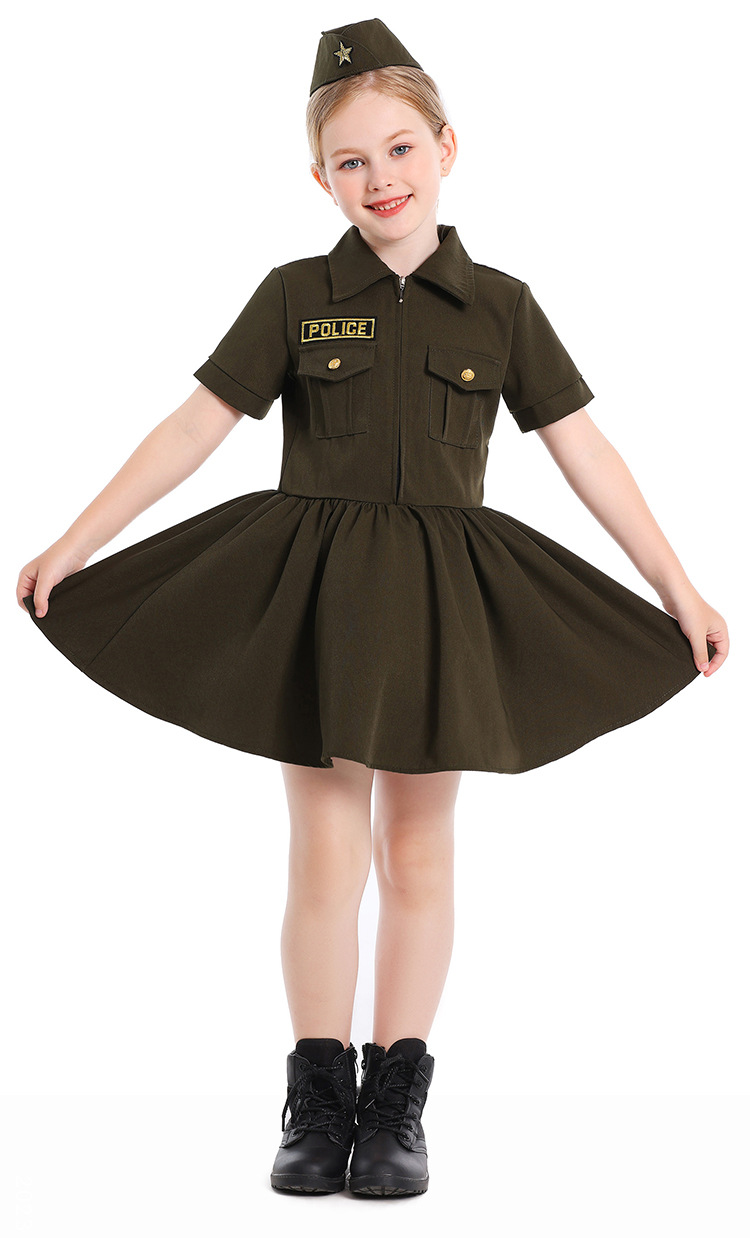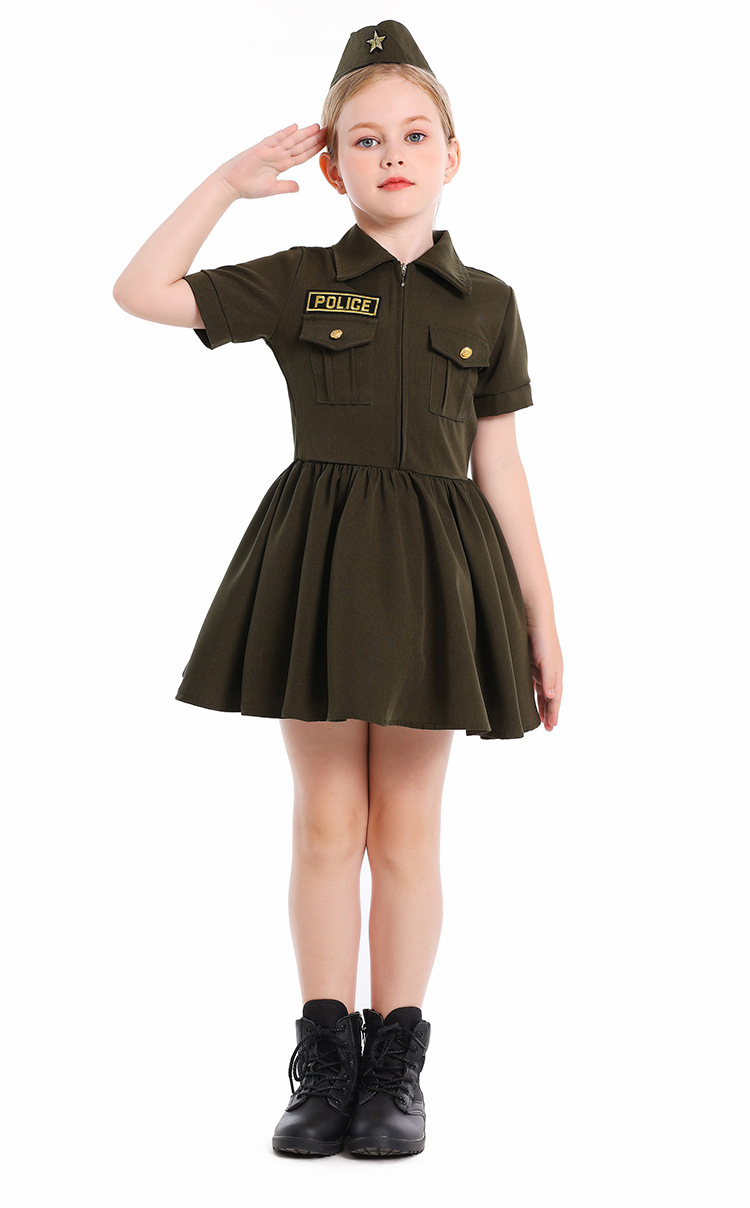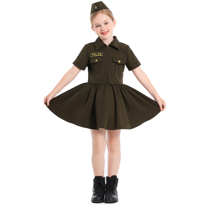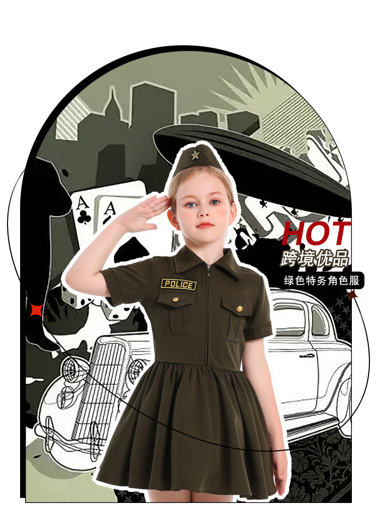 컬러 대외 무역 어린이 새로운 할로윈 코스프레 전문 경험 의상 카키 지퍼 비밀 서비스 원피스
