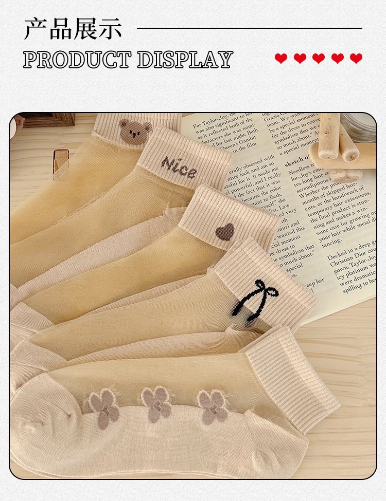 양말 여성의 봄과 여름 크리스탈 스타킹 짧은 보트 양말 면화 바닥 땀 흡수성 통기성 만화에 투명 여성 스타킹스토어 가기
