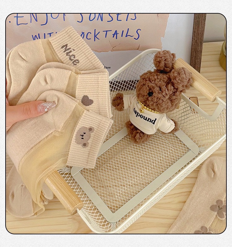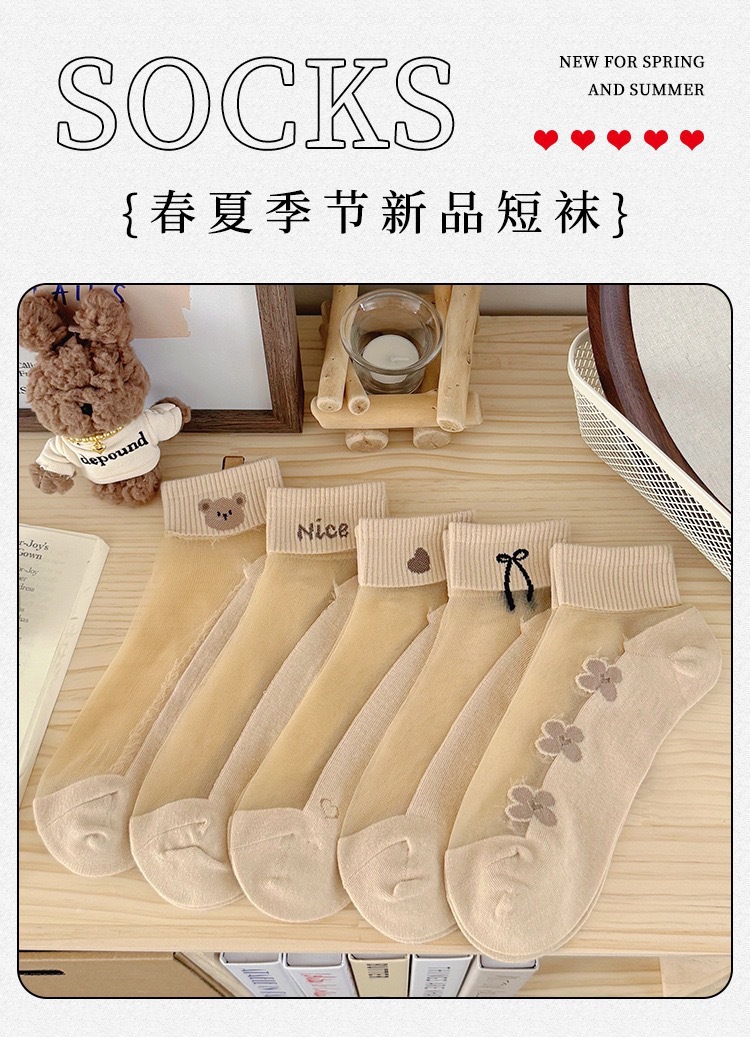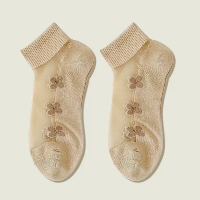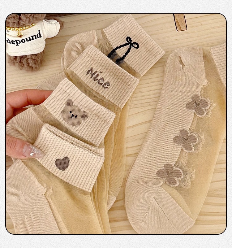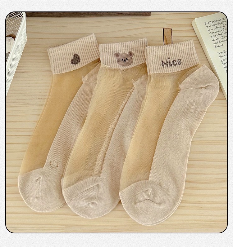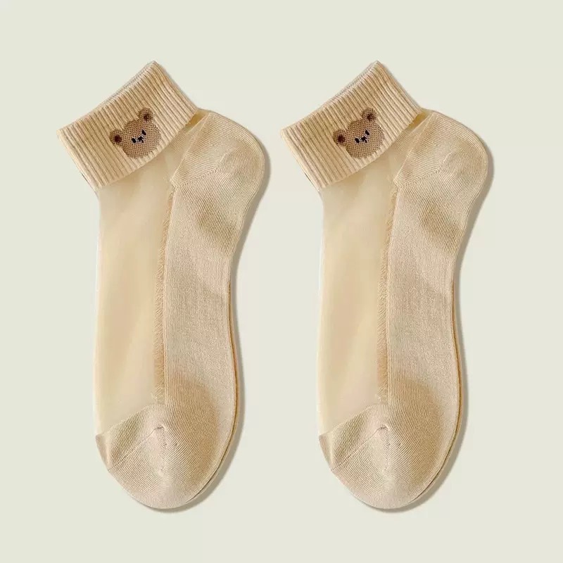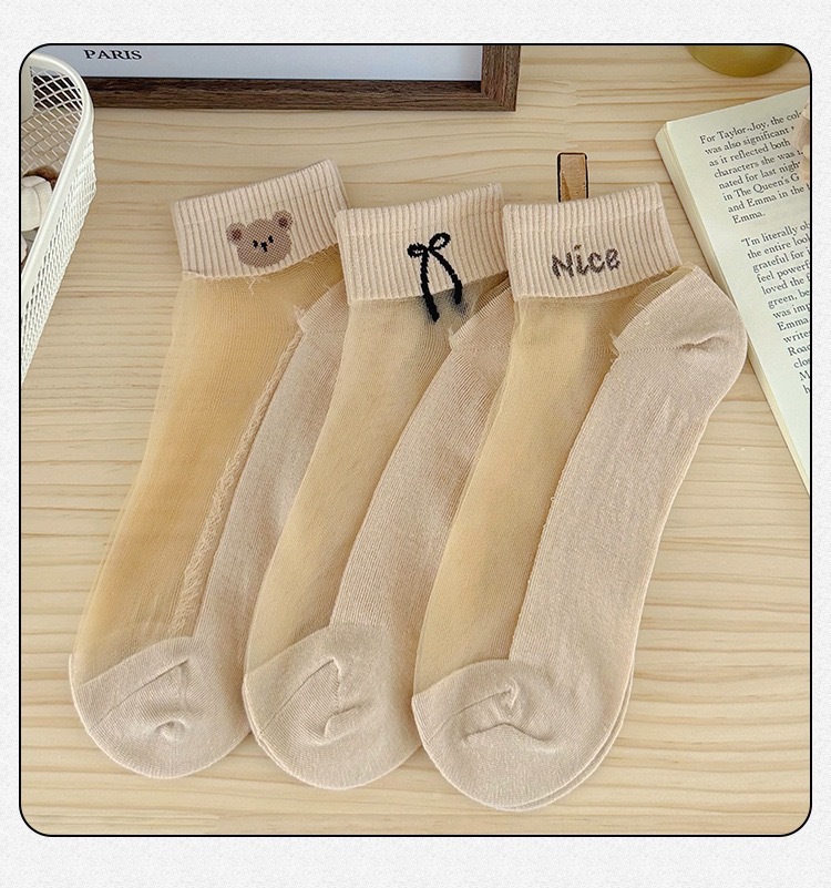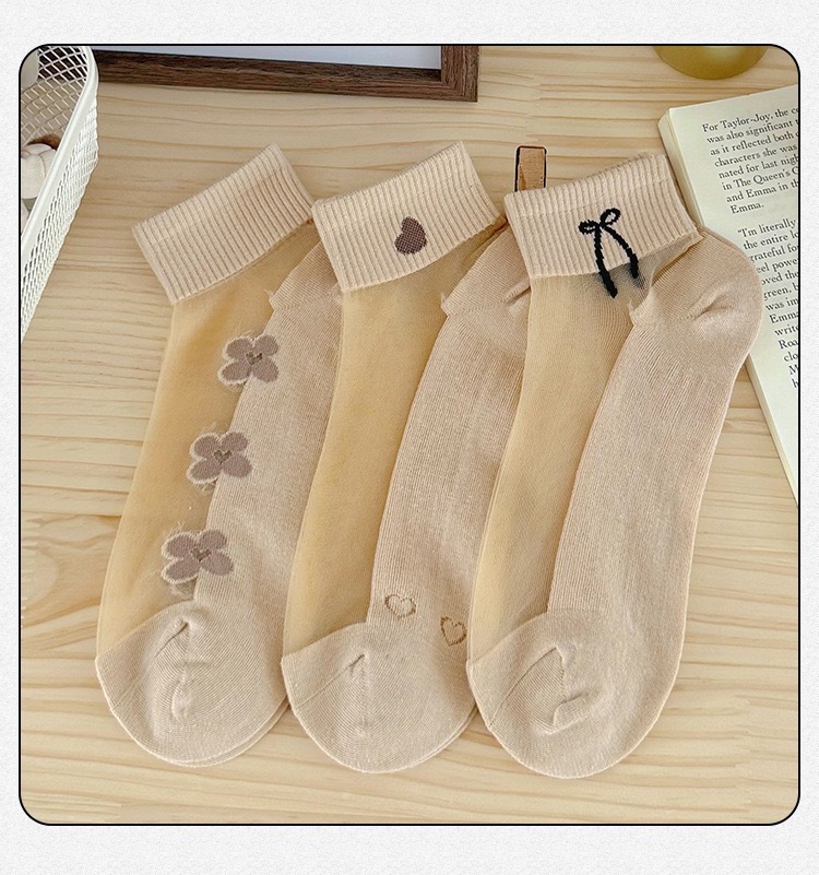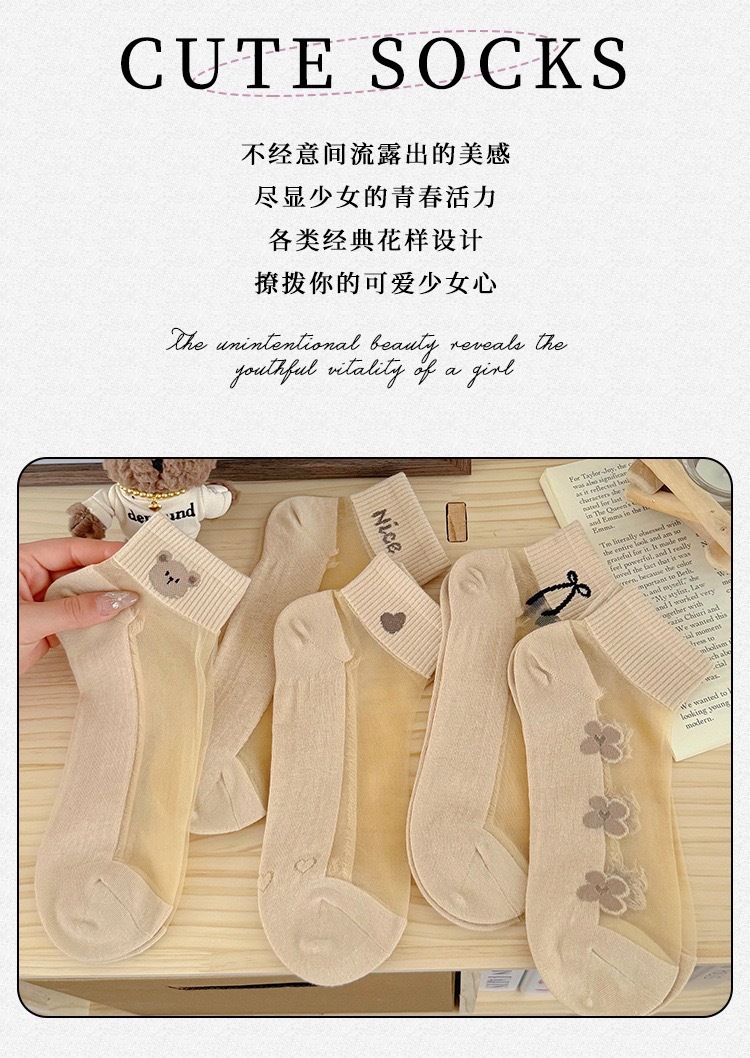 양말 여성의 봄과 여름 크리스탈 스타킹 짧은 보트 양말 면화 바닥 땀 흡수성 통기성 만화에 투명 여성 스타킹