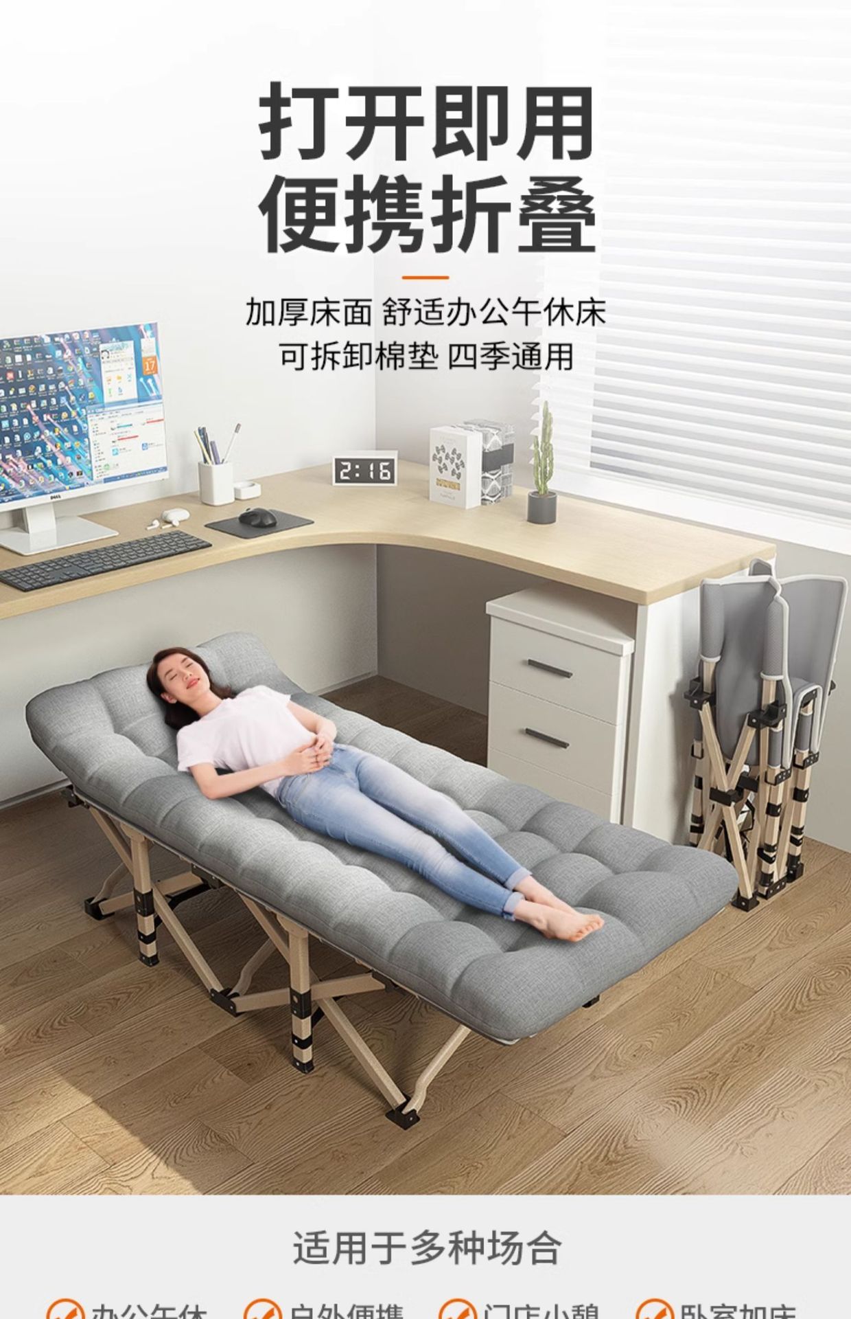 접이식 침대 싱글 침대 낮잠 가정용 간단한 낮잠 침대 동반자 휴대용 다기능 캠프 침대 사무실 안락 의자스토어 가기