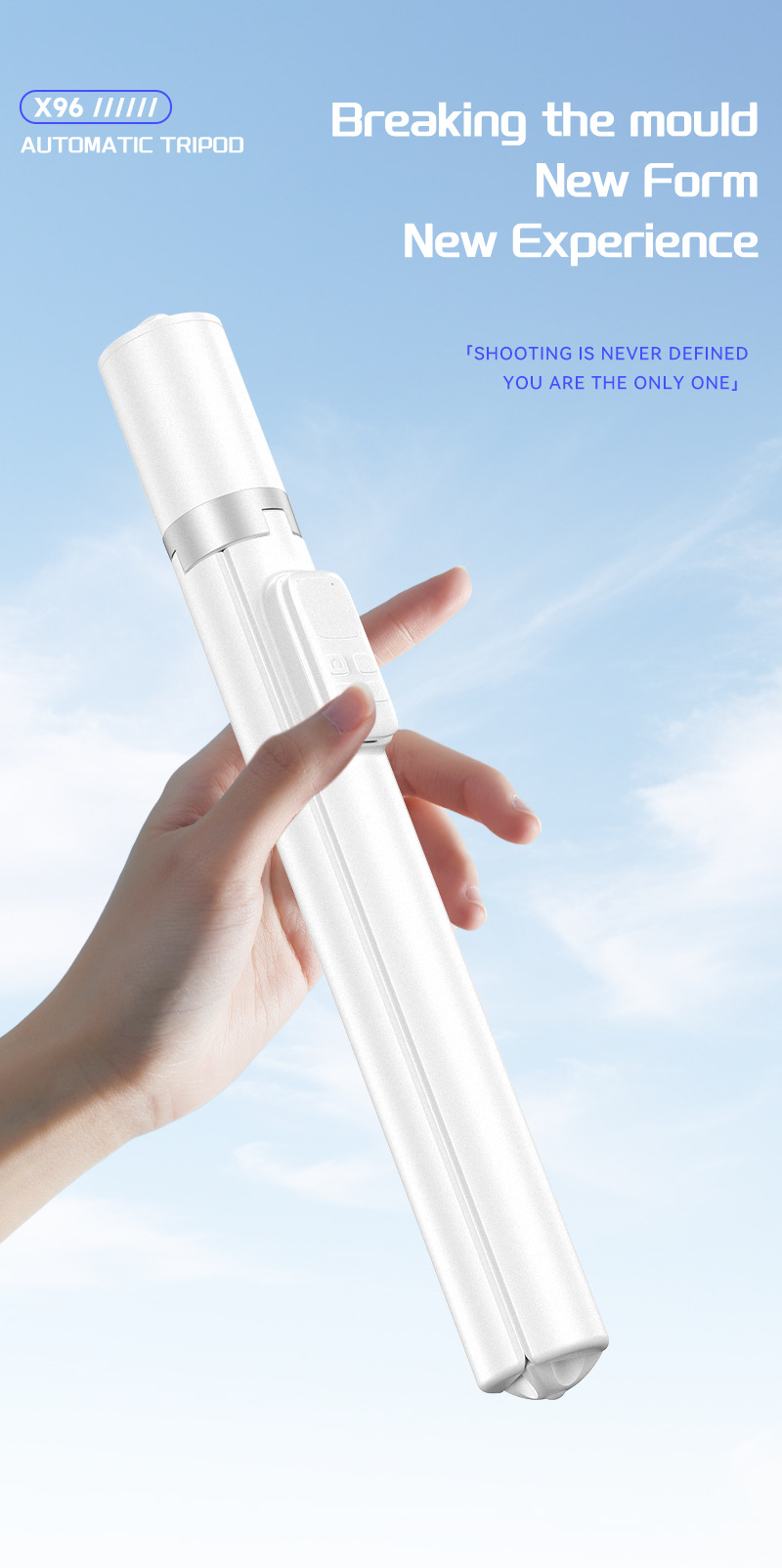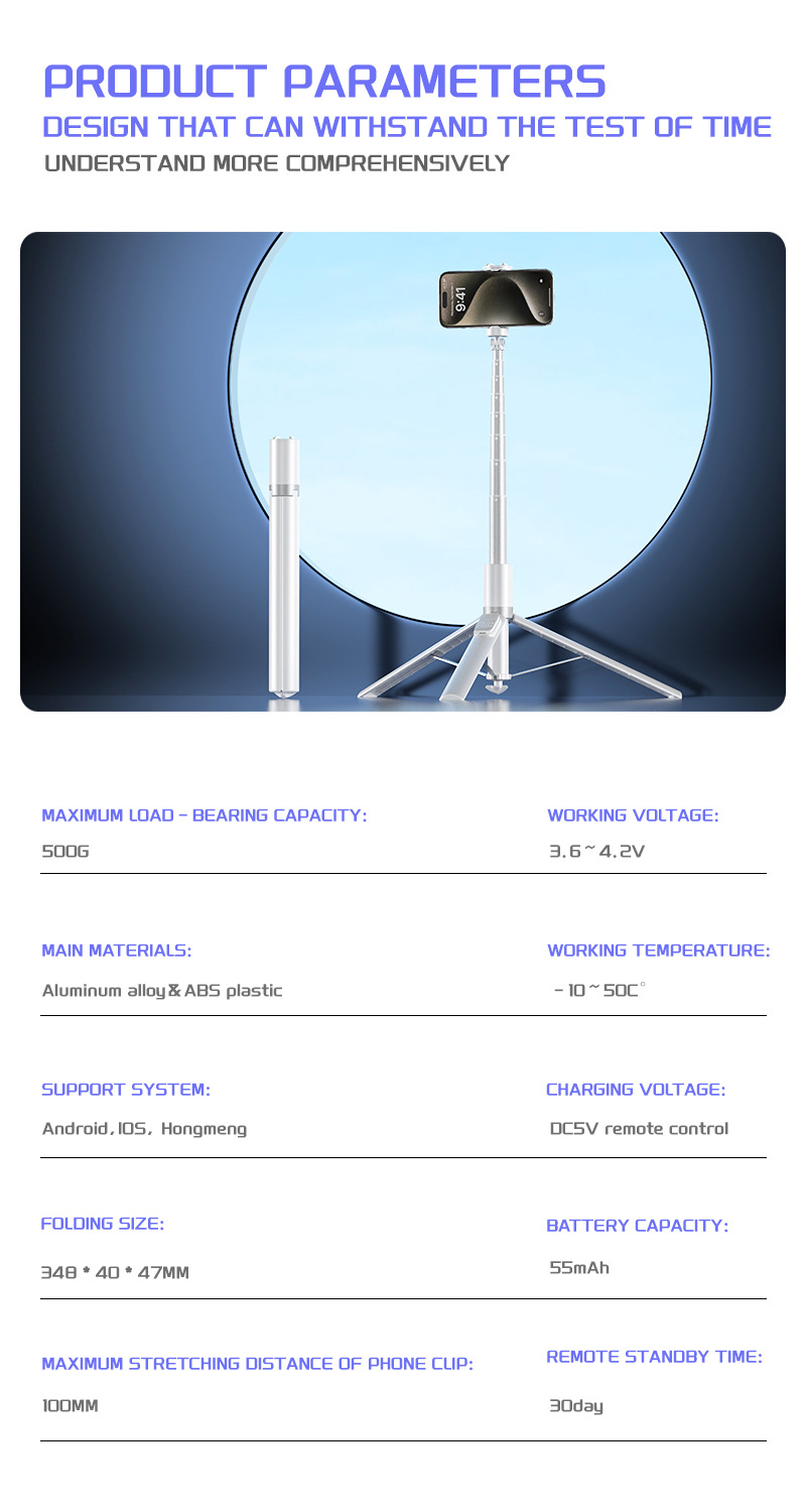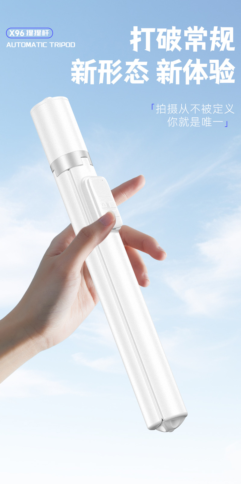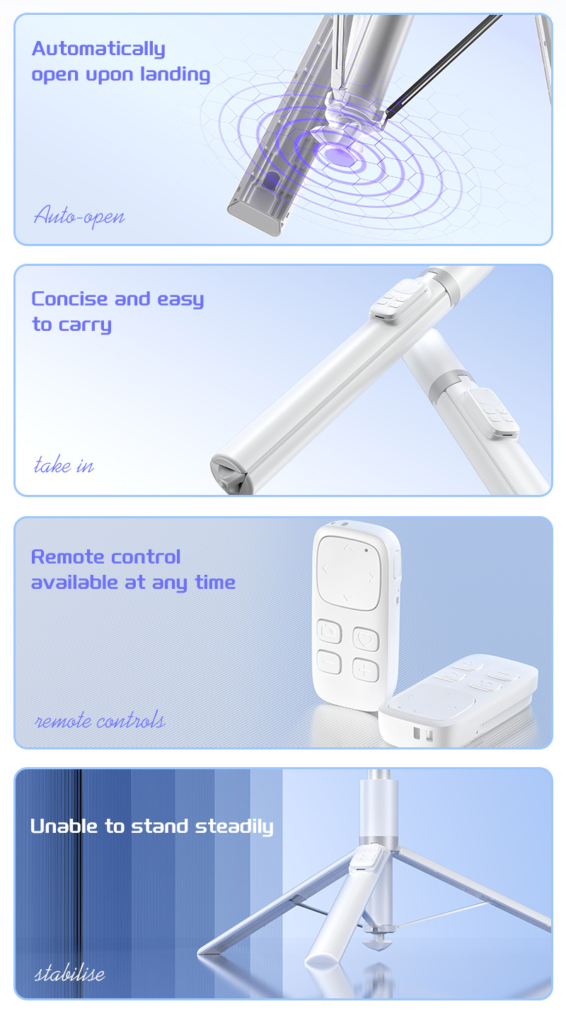 X96 삼각대 일체형 블루투스 광각 셀카봉, 세로촬영 가능
