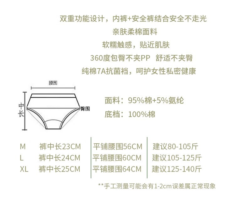 7A 항균 코튼 가랑이 복서 팬티 여성용 순면 무봉제 노출 방지 여성용 레깅스 안전 바지스토어 가기