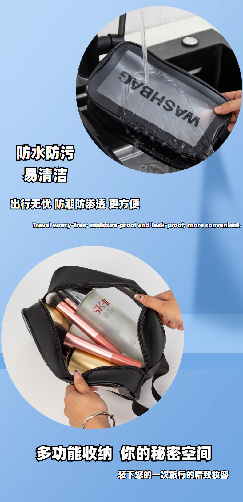 새로운 편리한 건식 및 습식 분리 여성용 화장품 가방, 방수 가방, 대용량 여행용 수영용품 보관 가방, 휴대용스토어 가기
