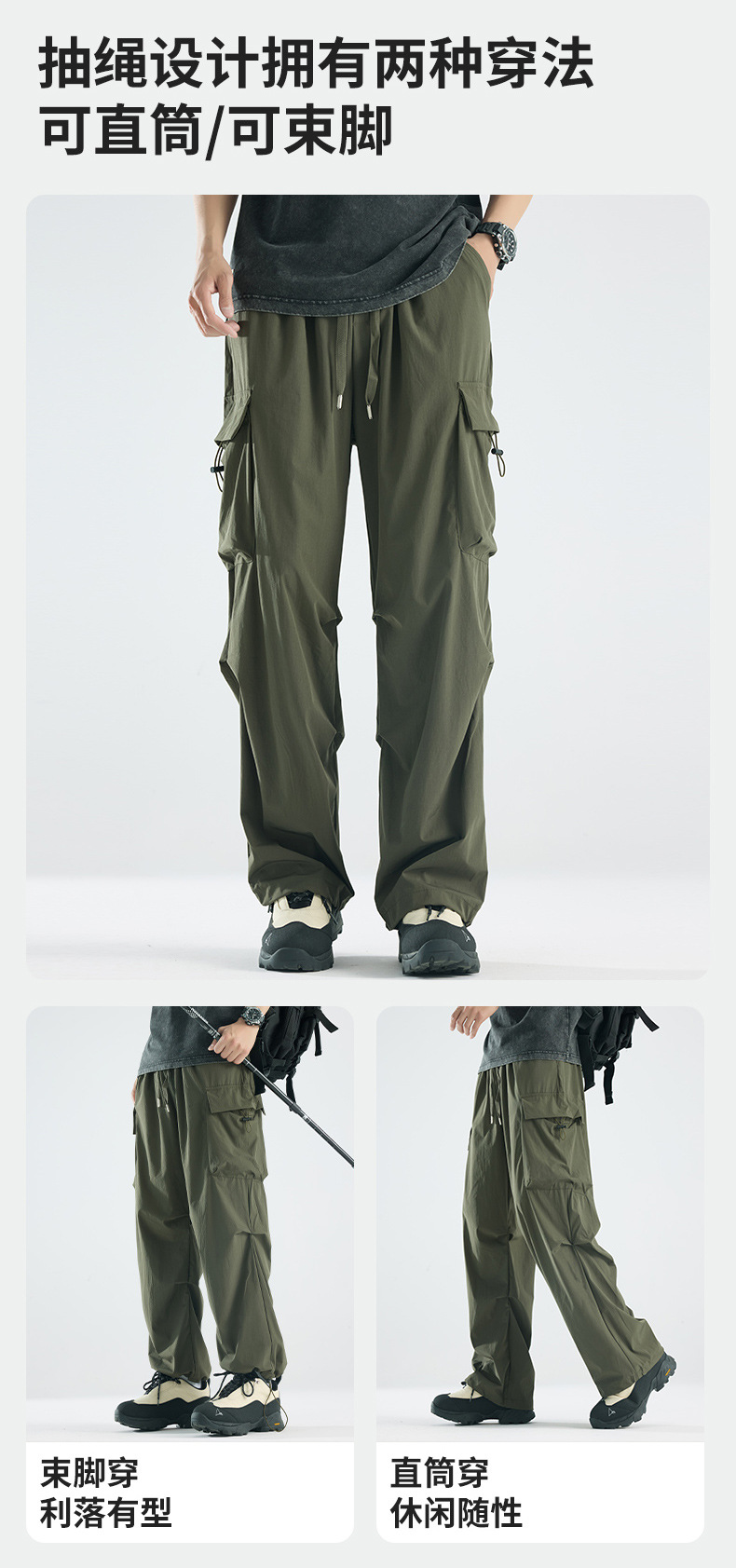남성과 청소년을 위한 여름 아이스 실크 밀리터리 그린 오버올, 방수 캐주얼 대형 아메리칸 레깅스 아웃도어