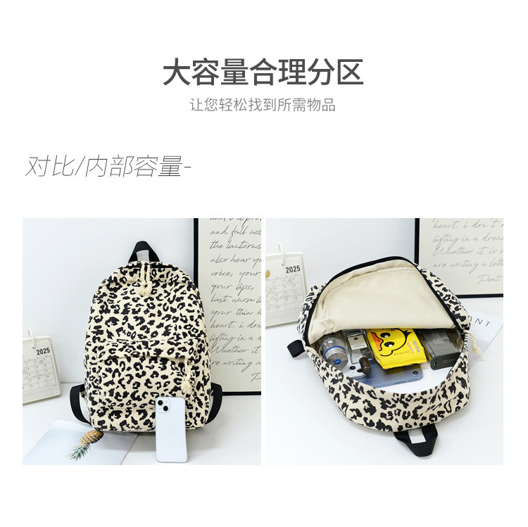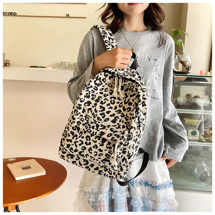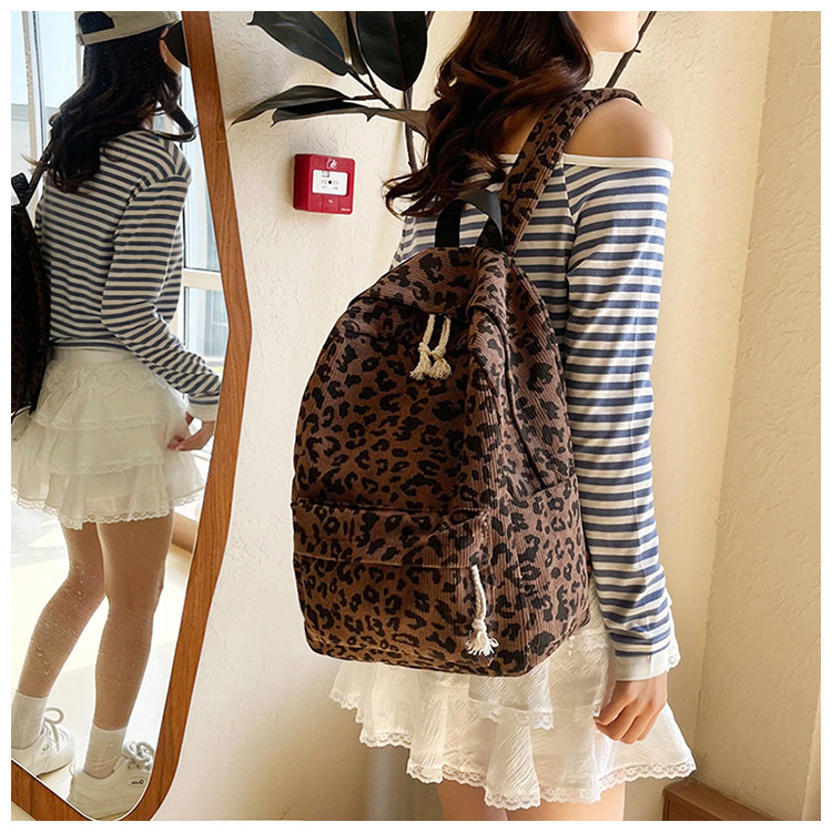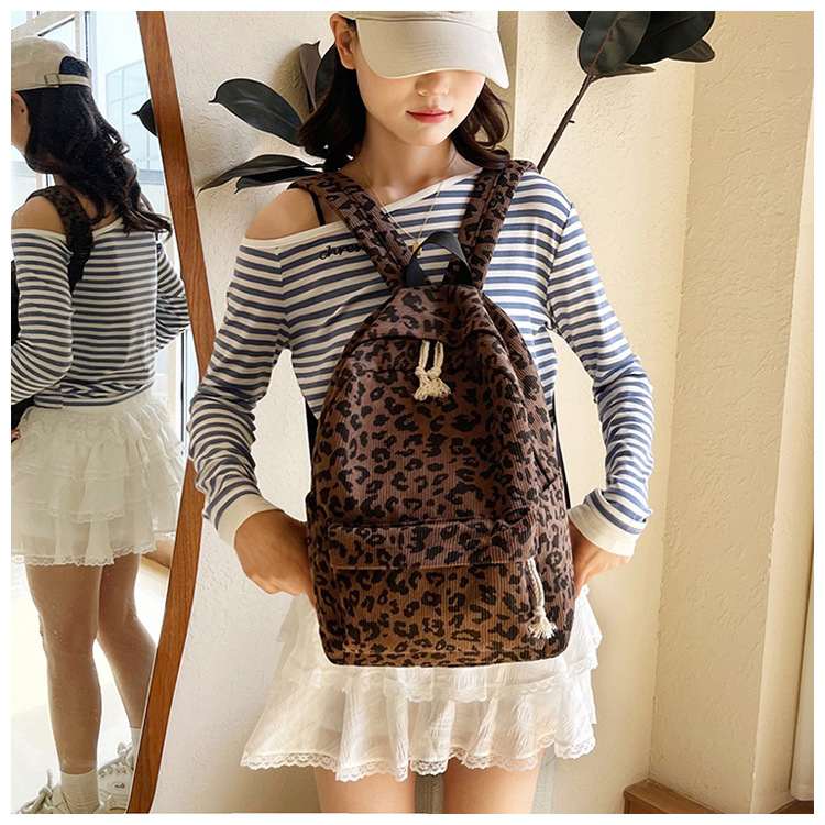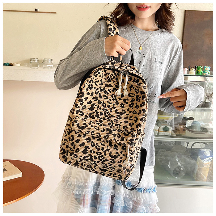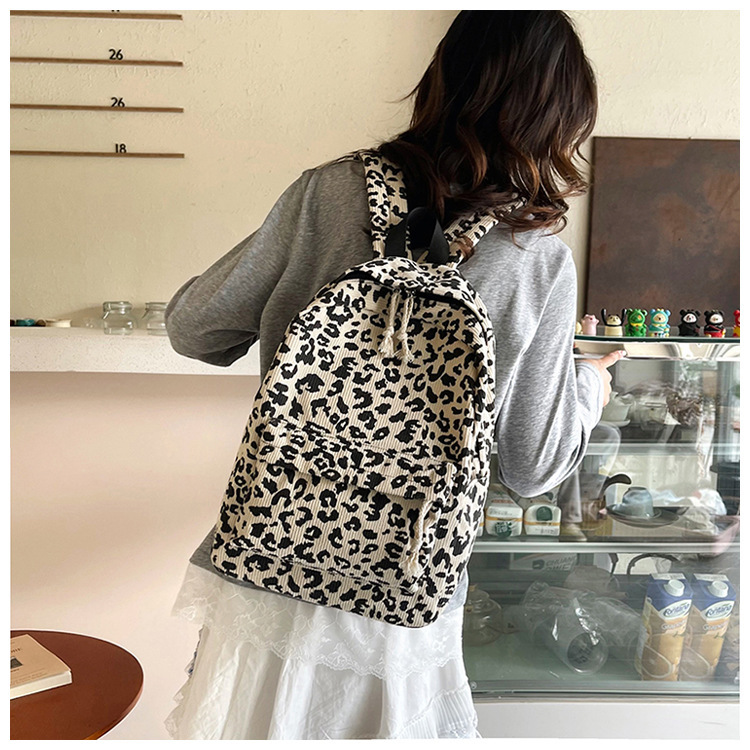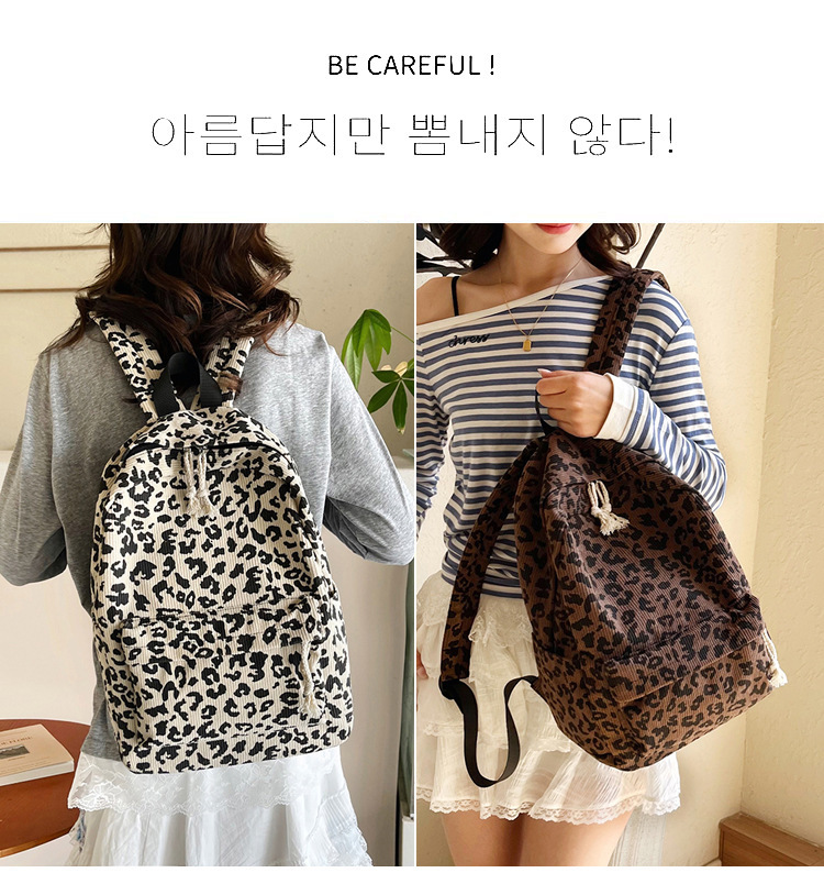 귀여운 복고풍 트렌디 한 한국식 표범 무늬 배낭 대용량 학생 학교 가방 세련되고 다재다능한 경량 캐주얼 배낭스토어 가기