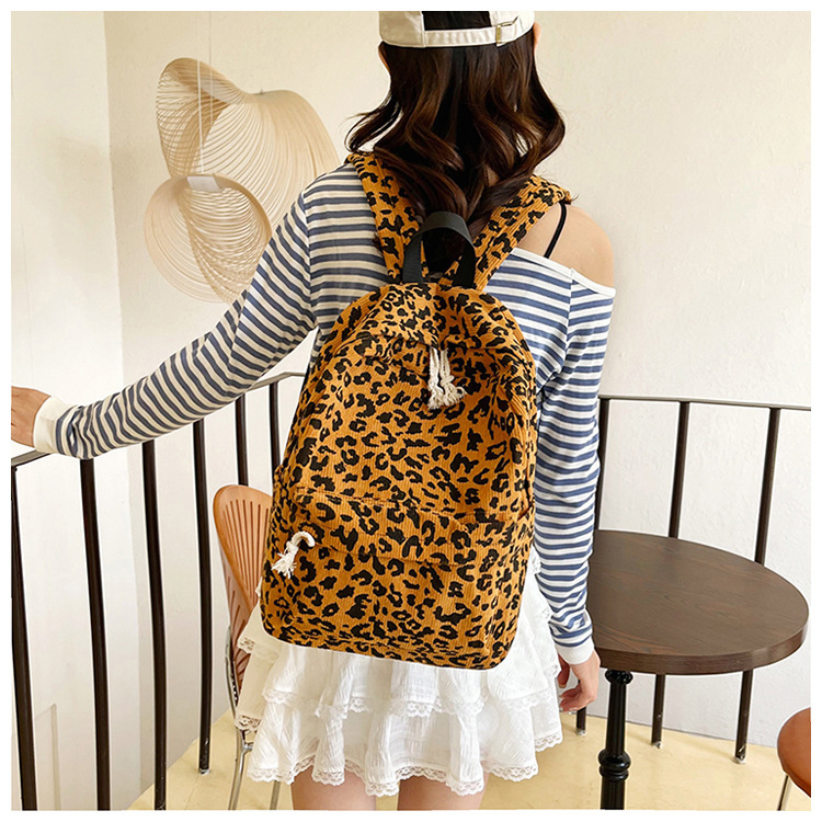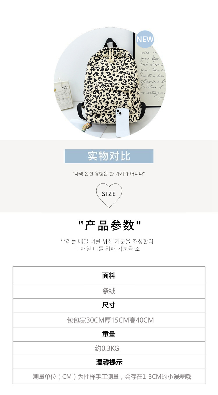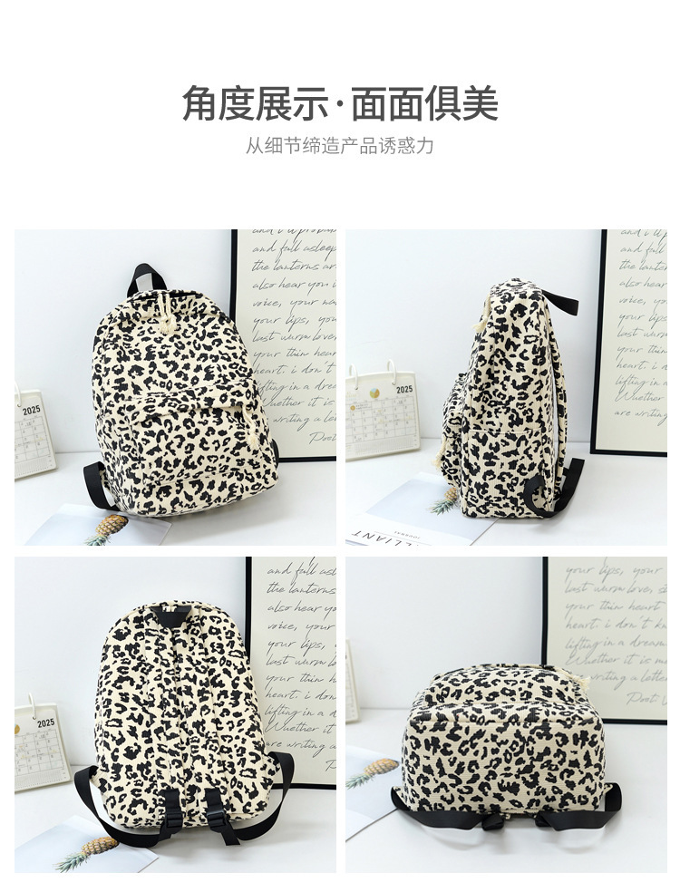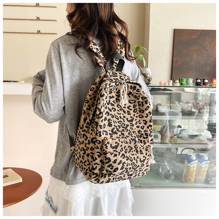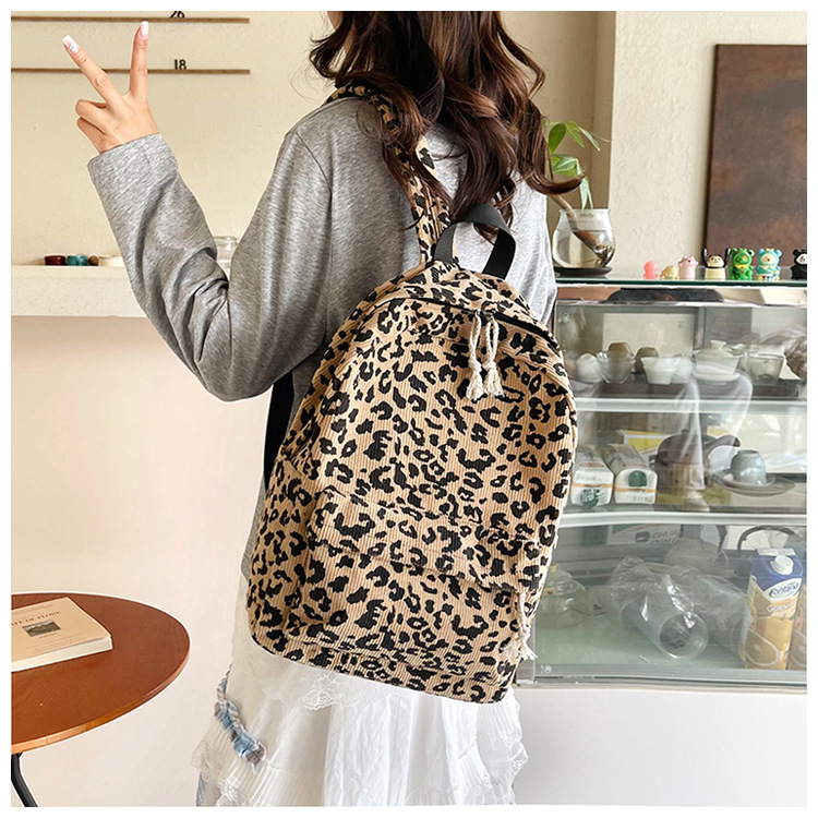 귀여운 복고풍 트렌디 한 한국식 표범 무늬 배낭 대용량 학생 학교 가방 세련되고 다재다능한 경량 캐주얼 배낭스토어 가기