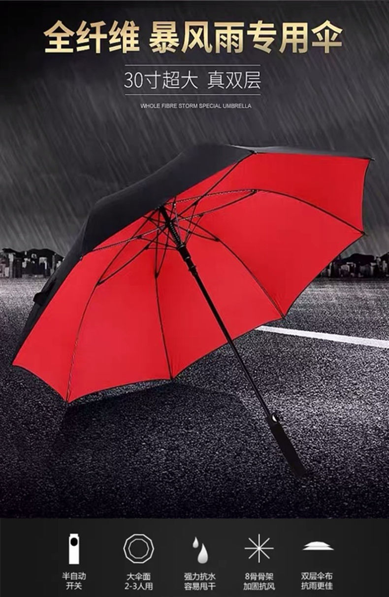 긴 손잡이가 있는 자동 대형 우산, 3~4인용 초대형, 여성용 비닐 자외선 차단제, 남성용 이중층 방풍, 확대, 두껍고 강화됨