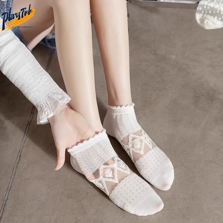 공장 양말 여성의 여름 초박형 레이스 아이스 스타킹 여성의 귀여운 일본 보트 양말 흰색 한국 유리 실크 짧은스토어 가기