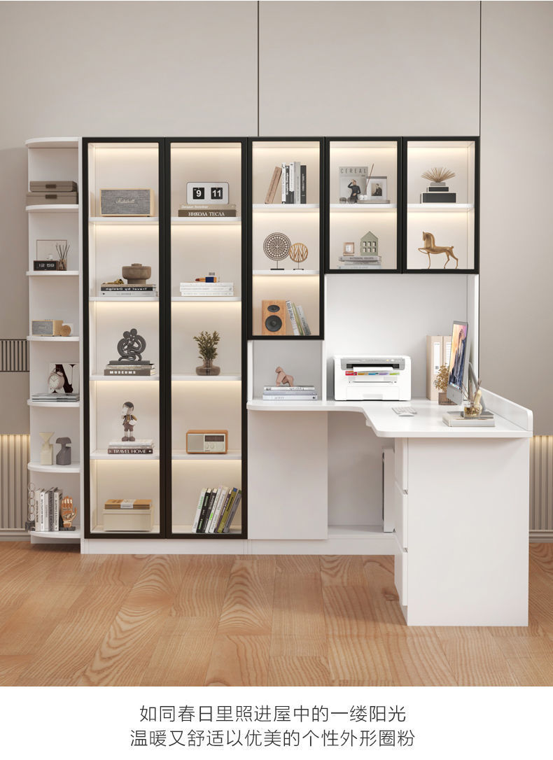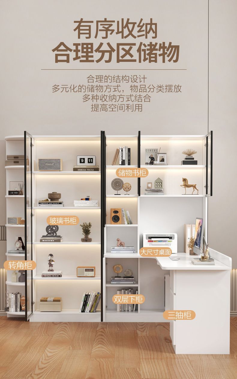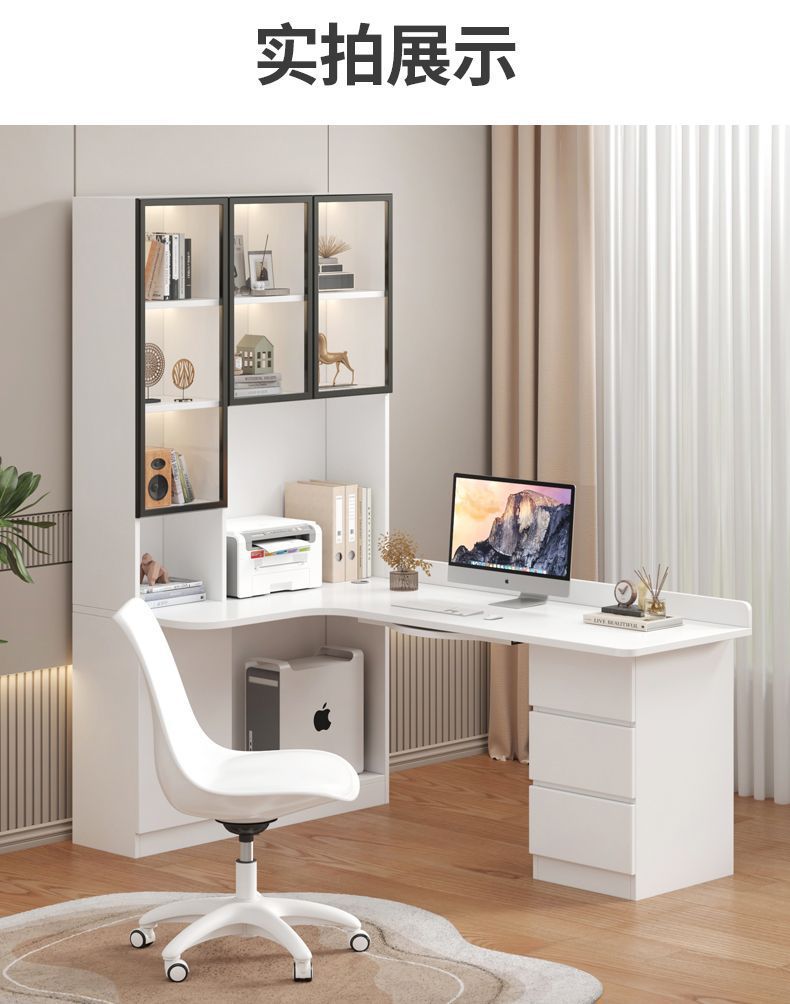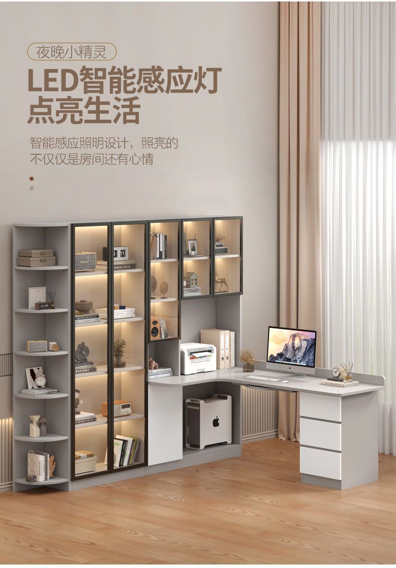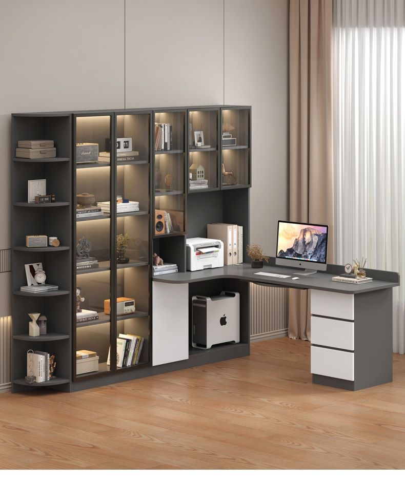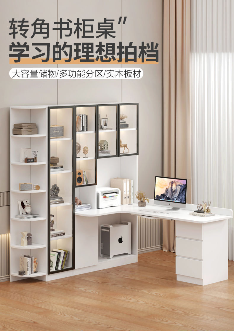 단단한 나무 가벼운 고급 코너 책상 책장 통합 컴퓨터 책상 책장 조합 침실 홈 학생 학습 테이블 쓰기스토어 가기