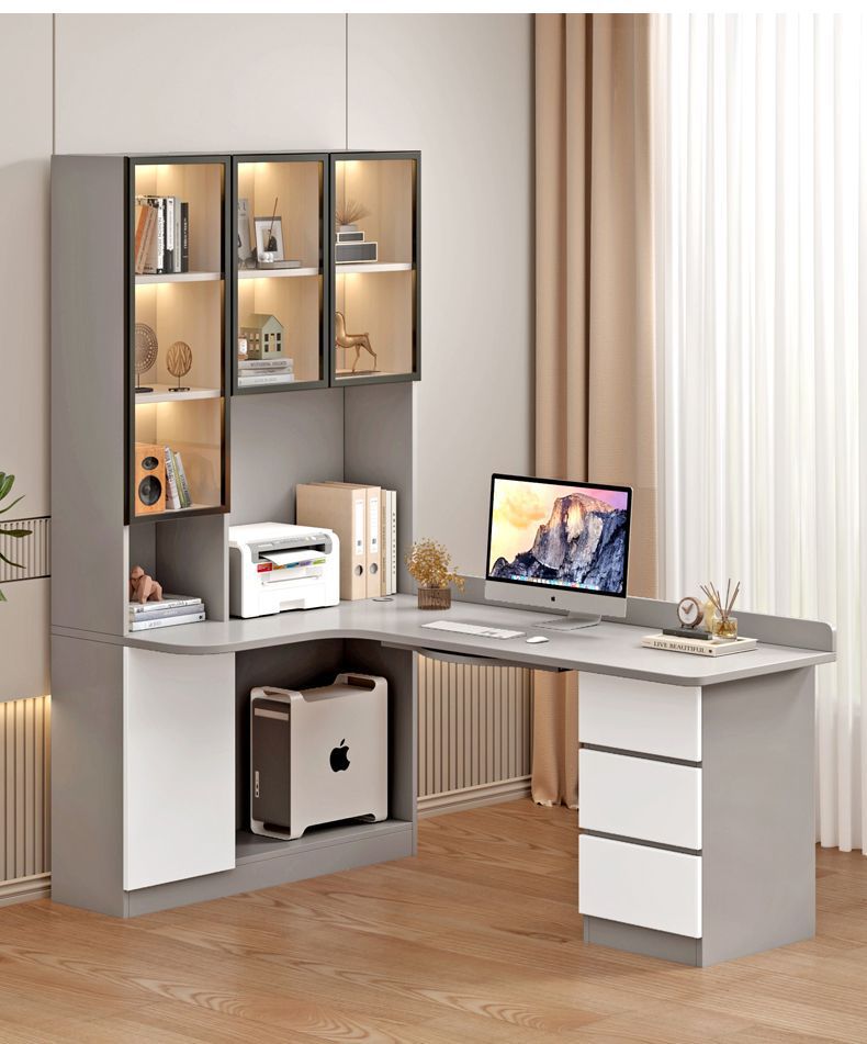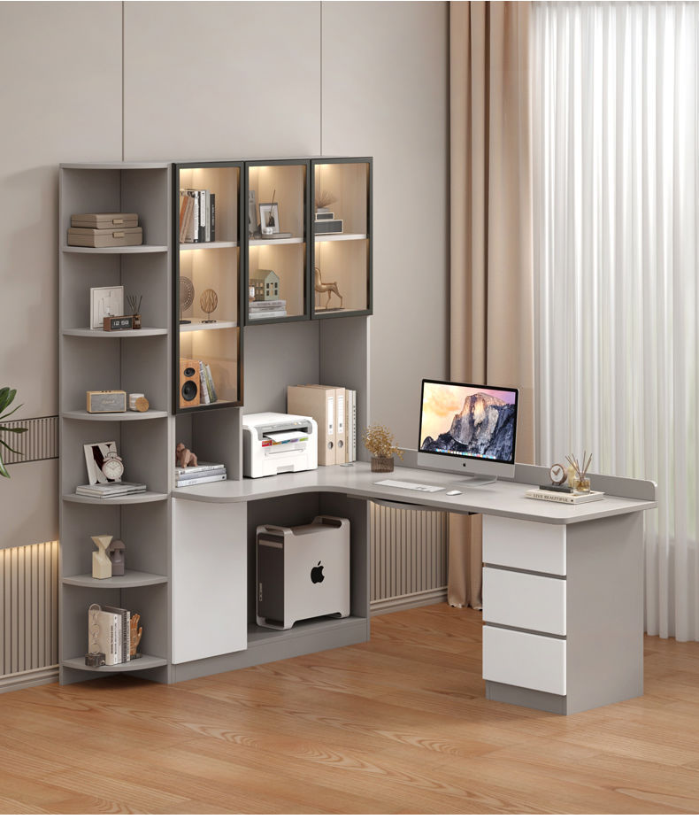단단한 나무 가벼운 고급 코너 책상 책장 통합 컴퓨터 책상 책장 조합 침실 홈 학생 학습 테이블 쓰기