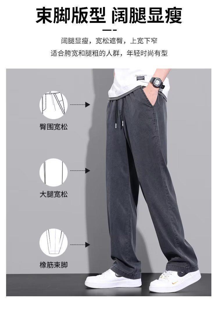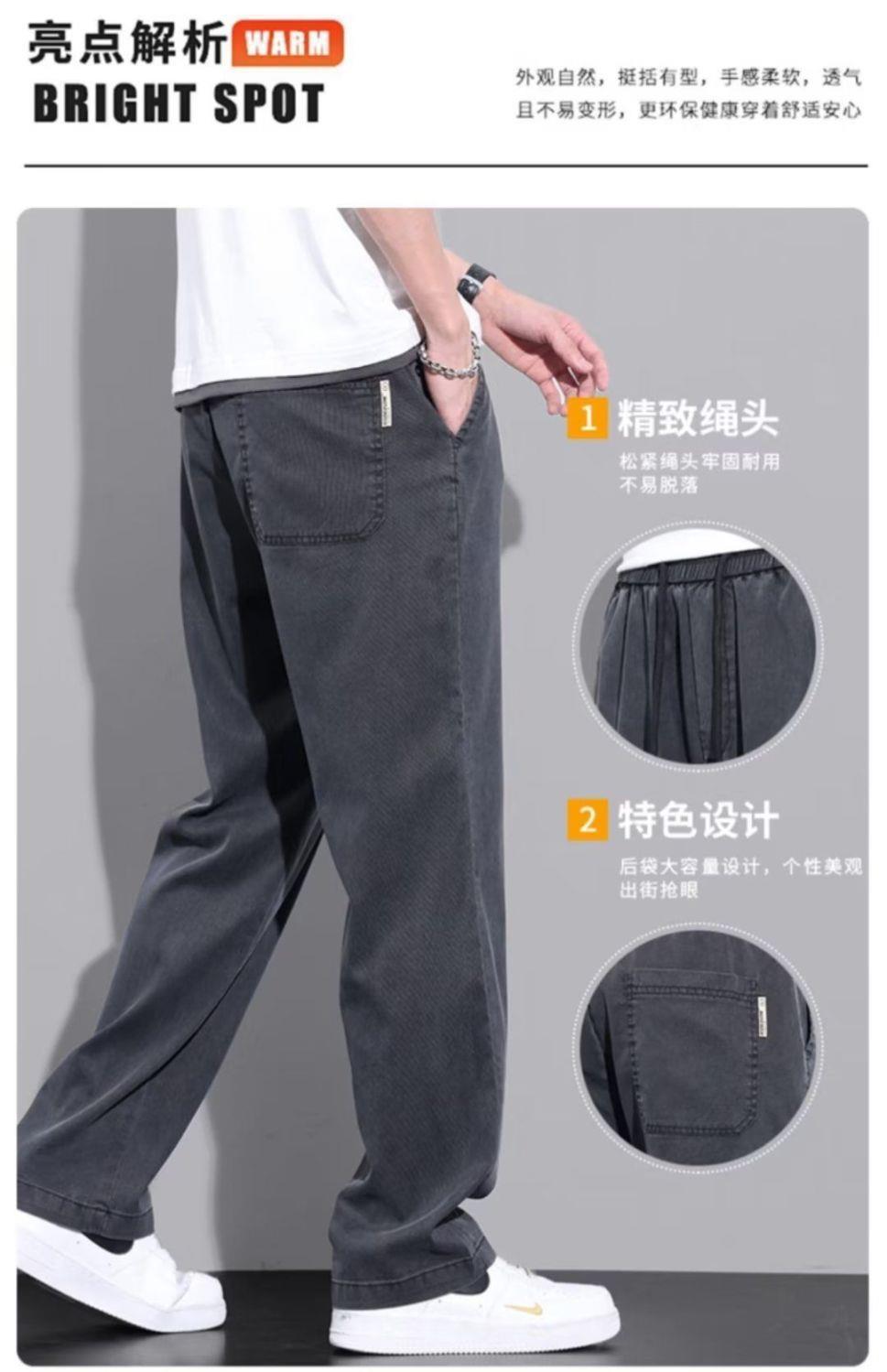 텐셀 청바지 남성 여름 얇은 트렌디 브랜드 스트레이트 루즈 남성 아이스 실크 와이드 레그 여름 캐주얼 롱 팬츠스토어 가기