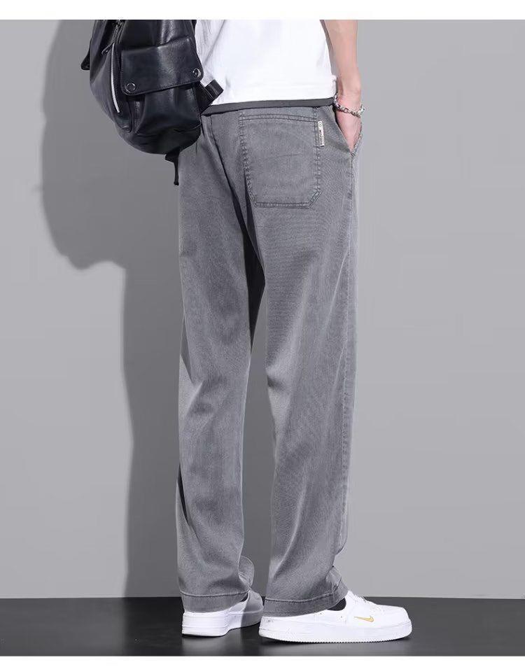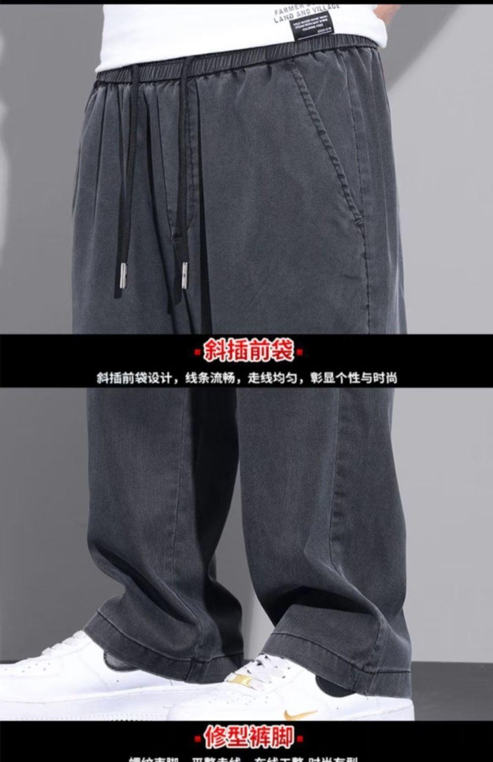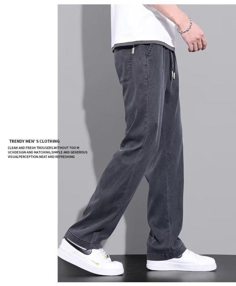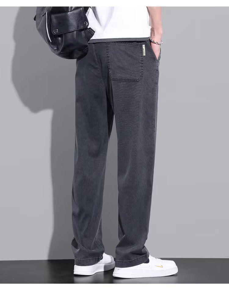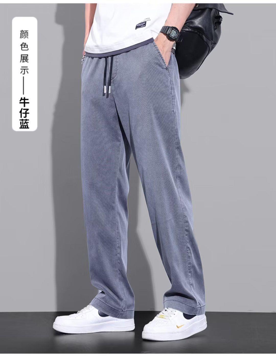 텐셀 청바지 남성 여름 얇은 트렌디 브랜드 스트레이트 루즈 남성 아이스 실크 와이드 레그 여름 캐주얼 롱 팬츠
