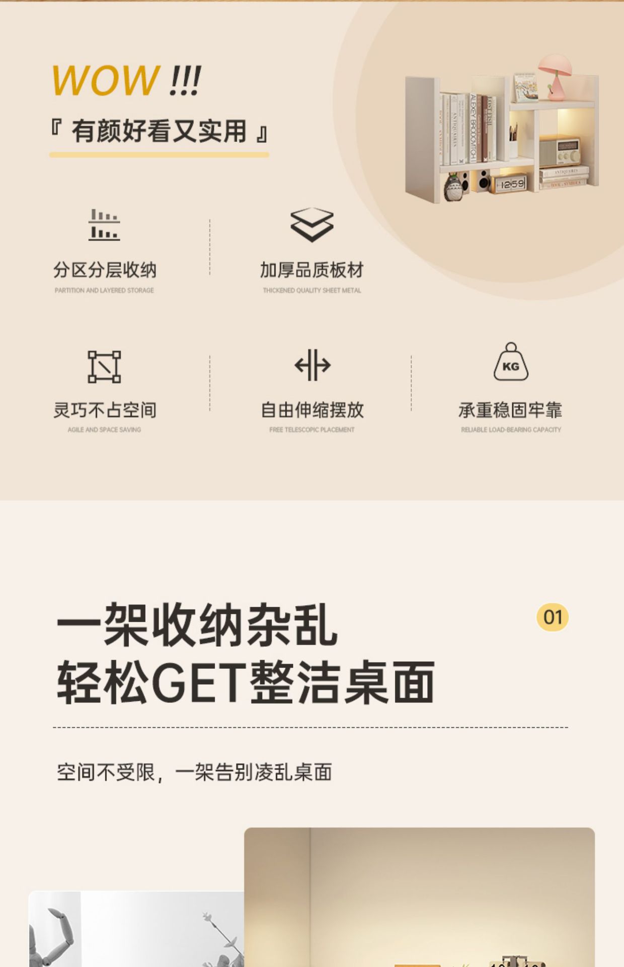데스크탑 책장 테이블 수납 선반 사무실 책상 정리 선반 학생 기숙사 책상 정리 선반 확장형 수납 선반