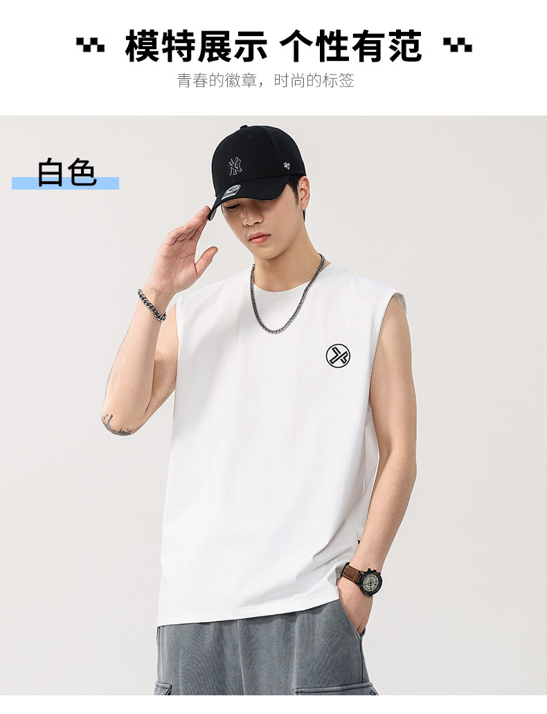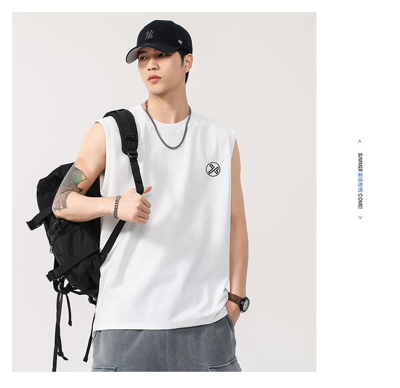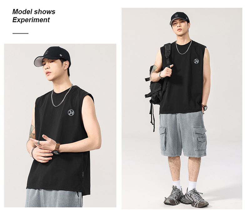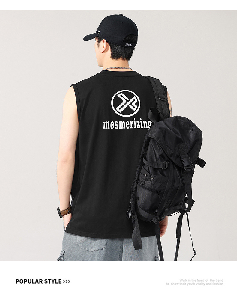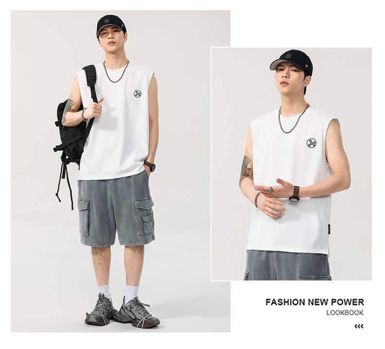 T2922 | 플러스 사이즈 남성 여름 새로운 260G 헤비급 민소매 양복 조끼 느슨한 조수 브랜드 프린트 티셔츠 남성스토어 가기